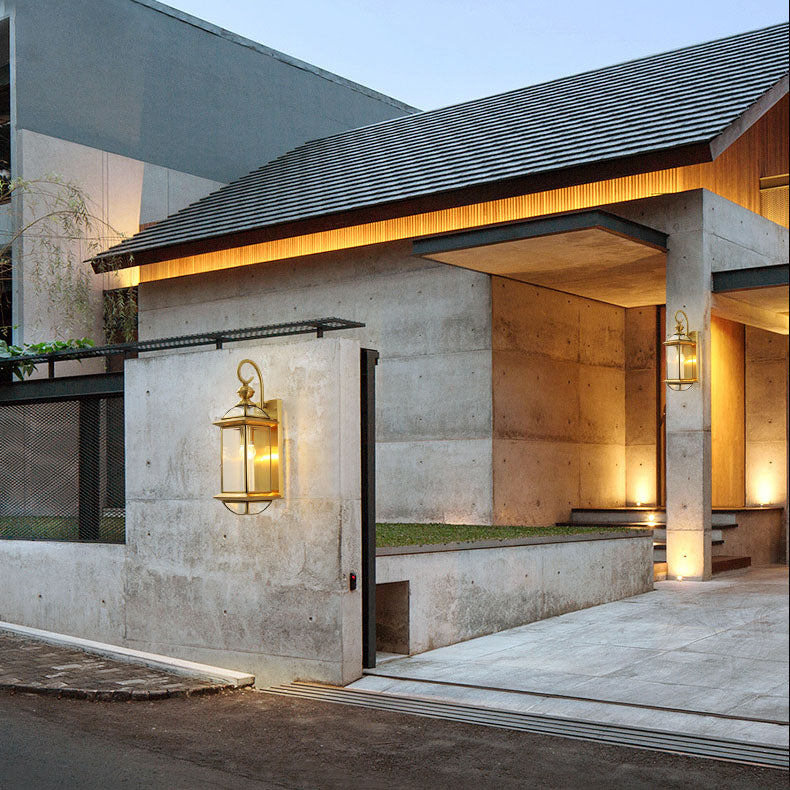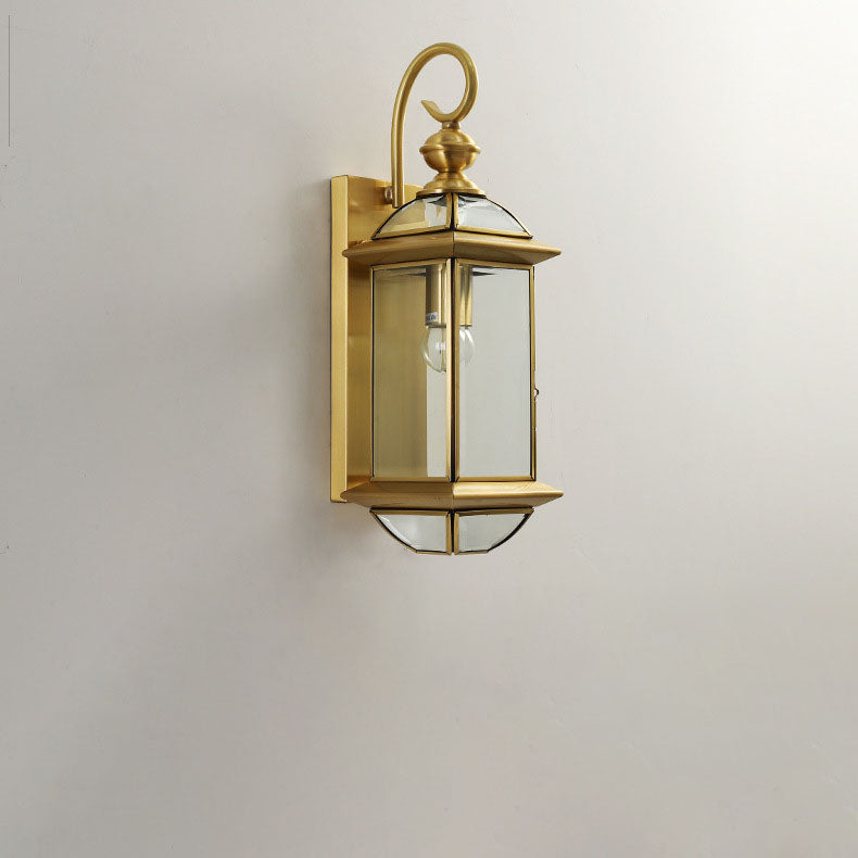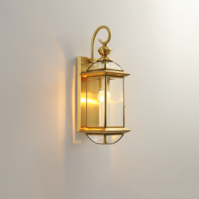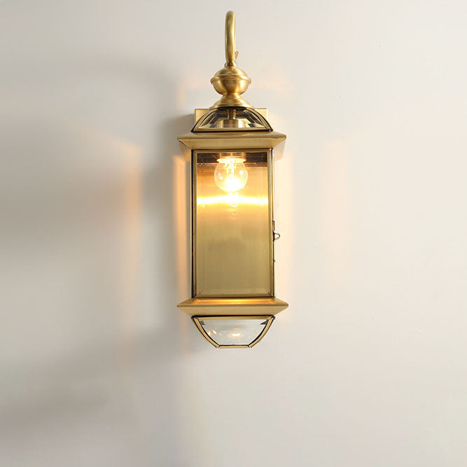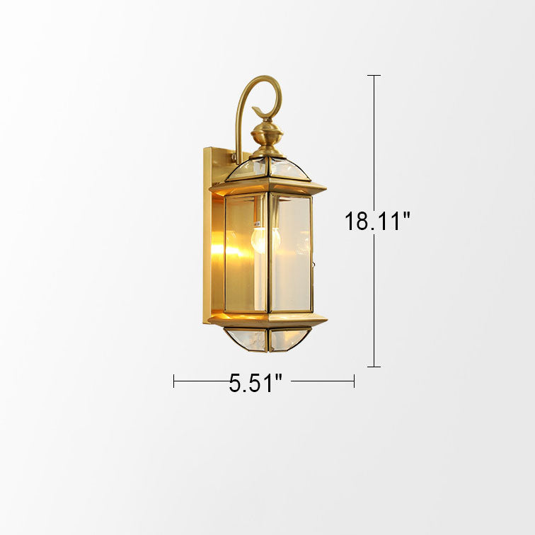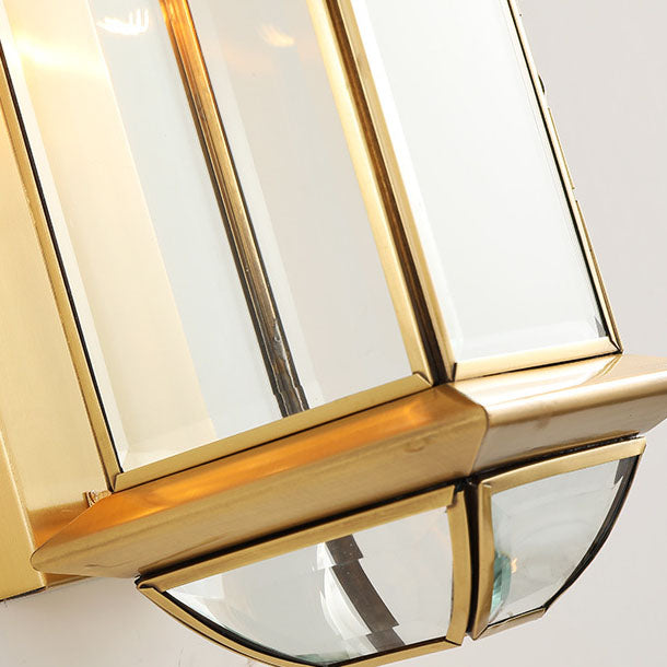 European Simple Copper Glass Square Lantern 1-Light Outdoor Waterproof Wall Sconce Lamp