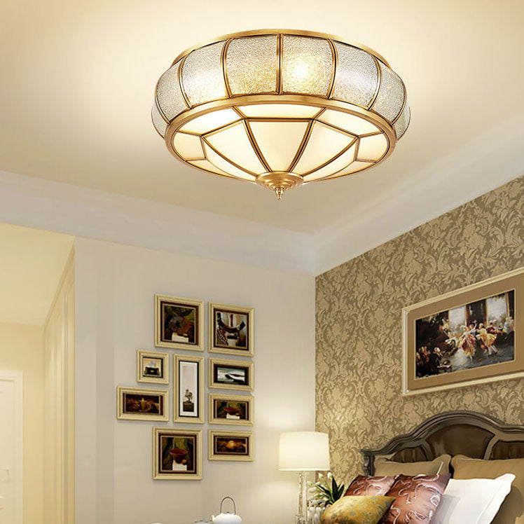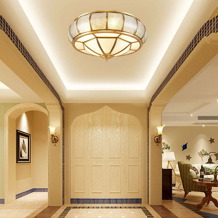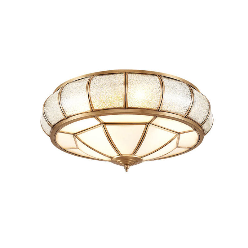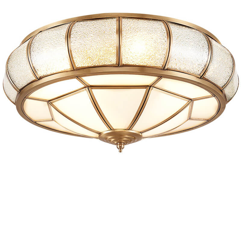 European Style Luxury Brass Glass Drum Cage 3/4/6 Light Flush Mount Ceiling Light