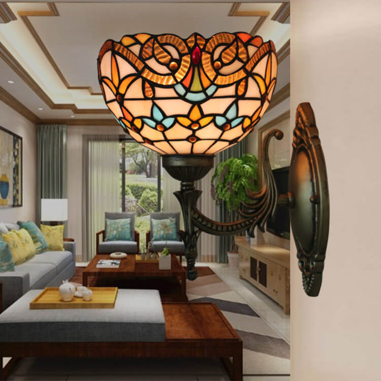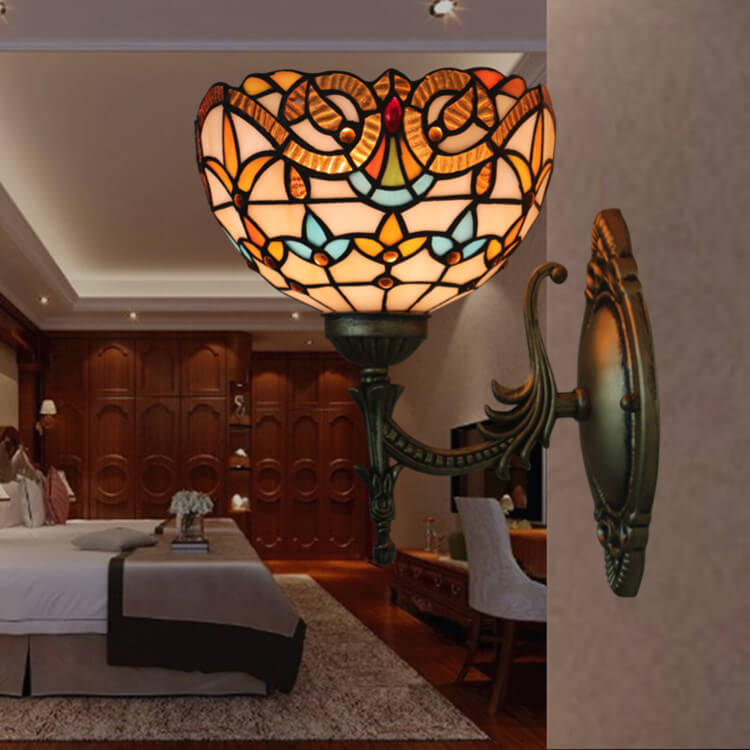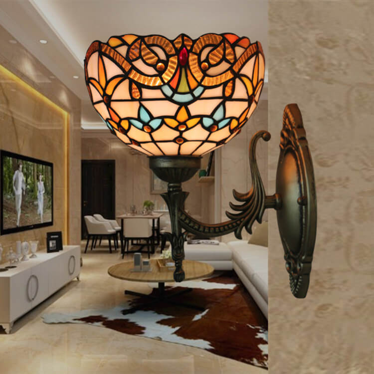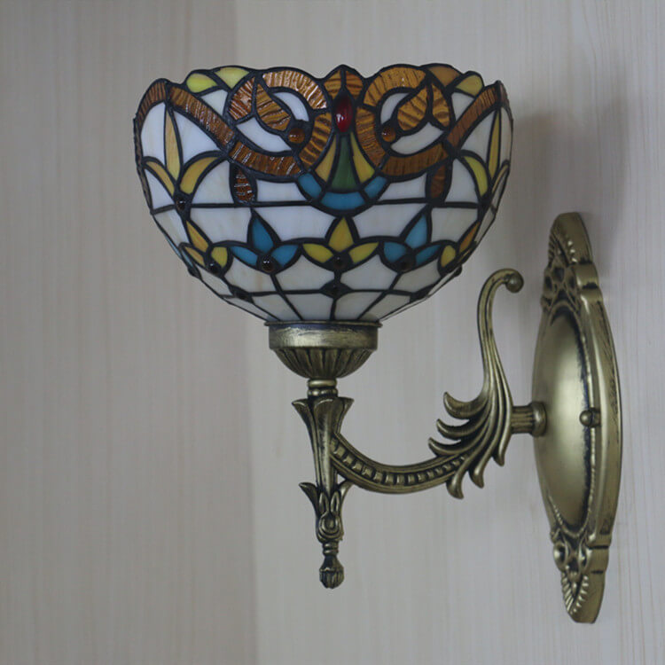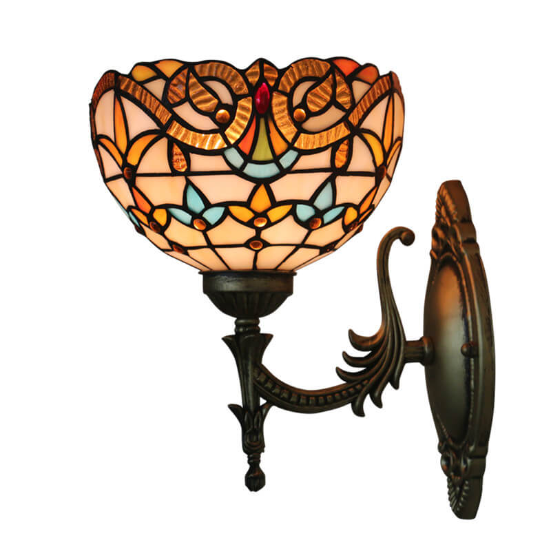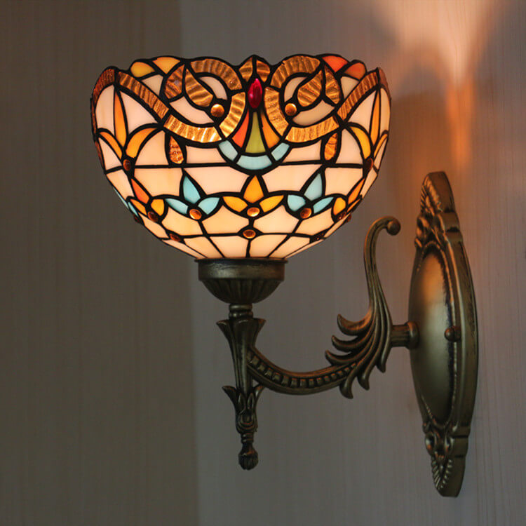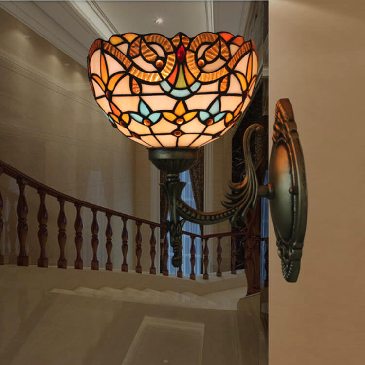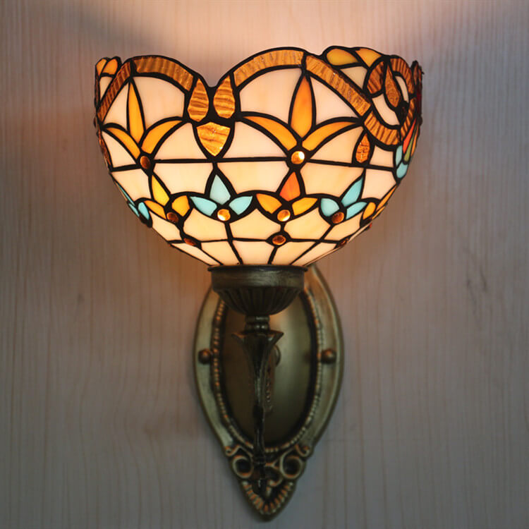 European Tiffany Flora Stained Glass 1-Light Wall Sconce Lamp
