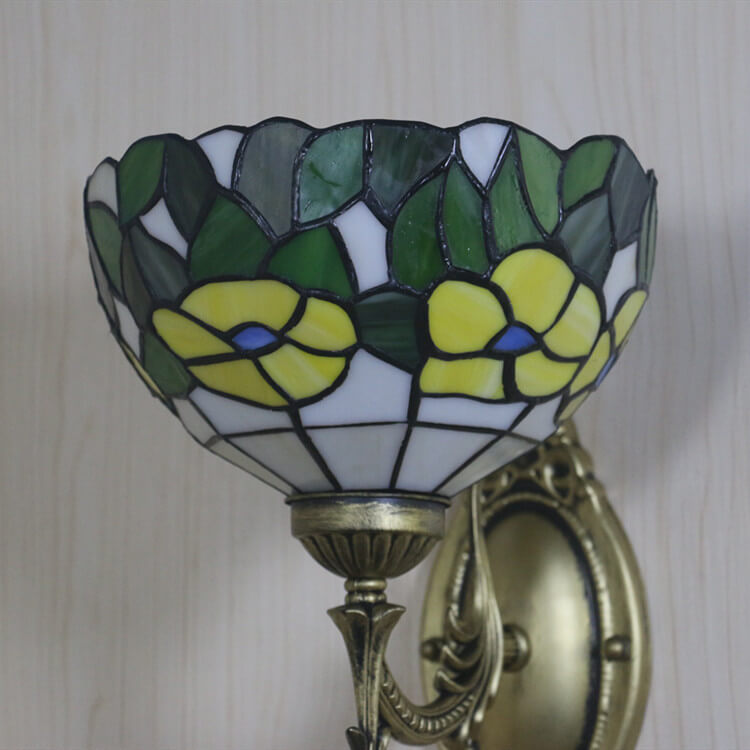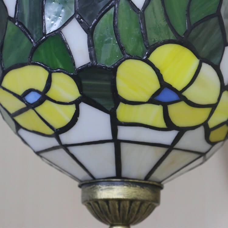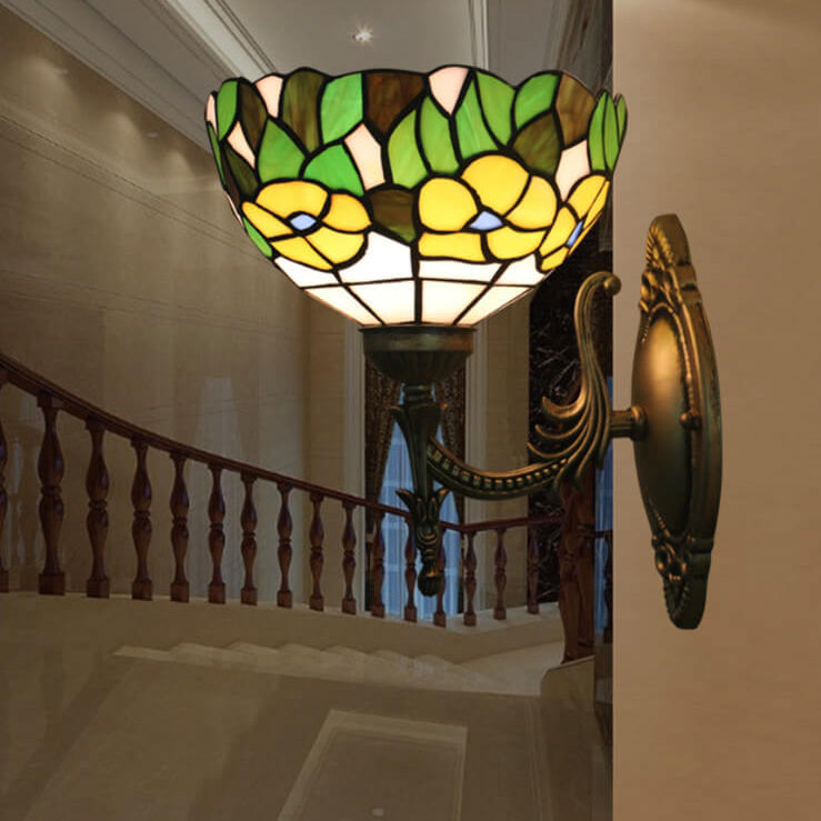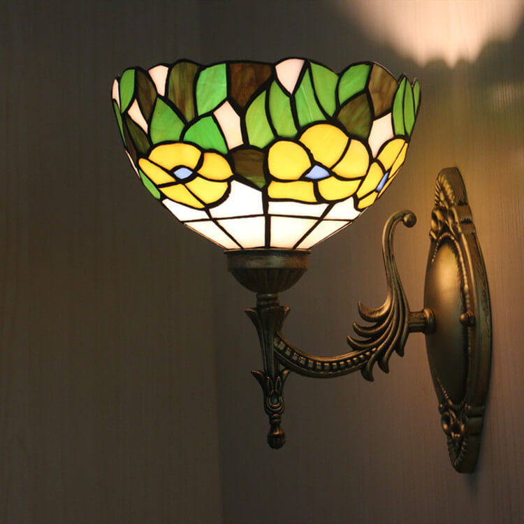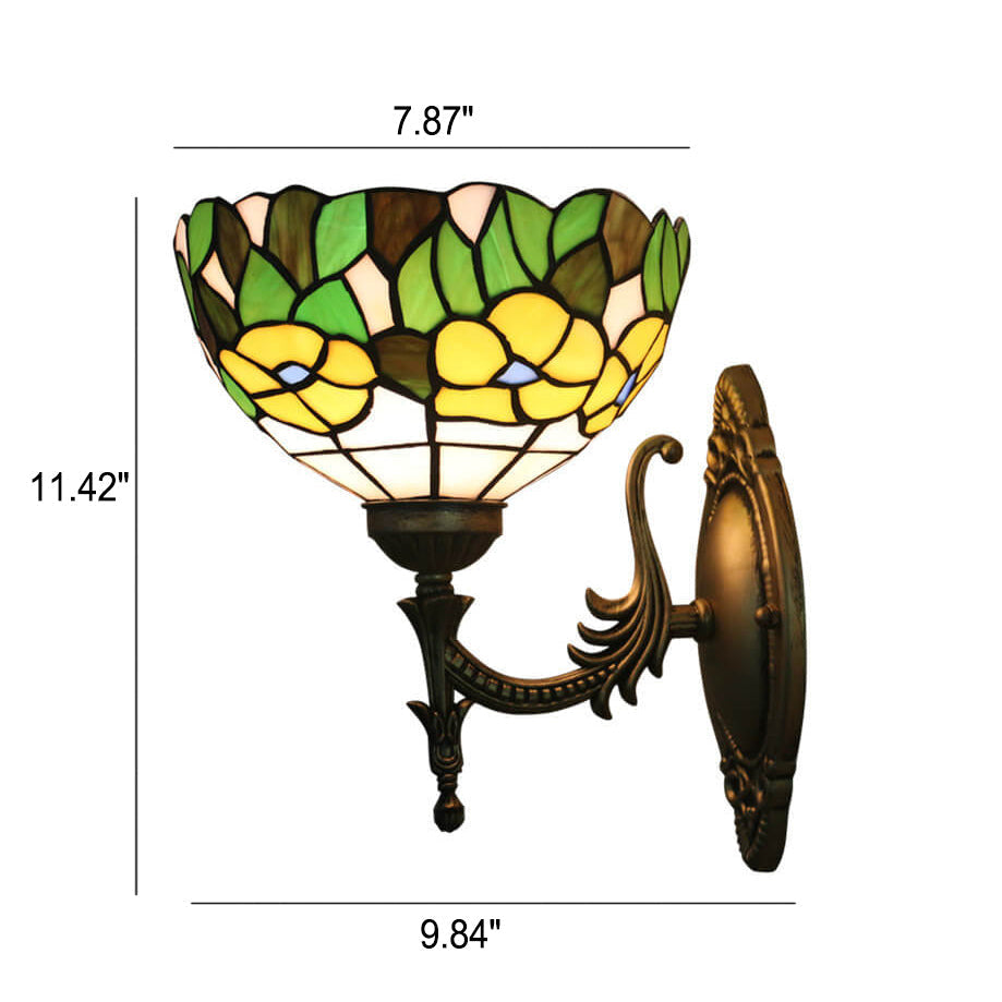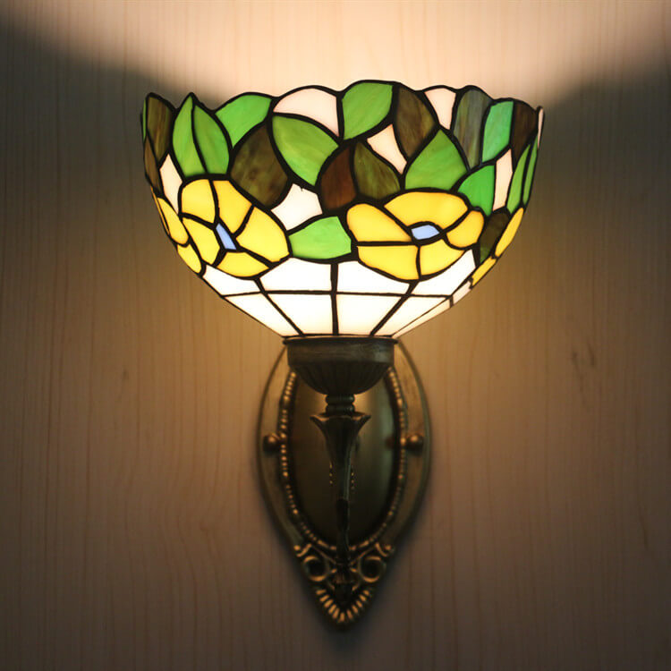 European Tiffany Floral Green Leaf Stained Glass 1-Light Wall Sconce Lamp
