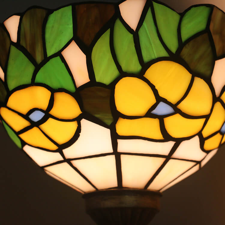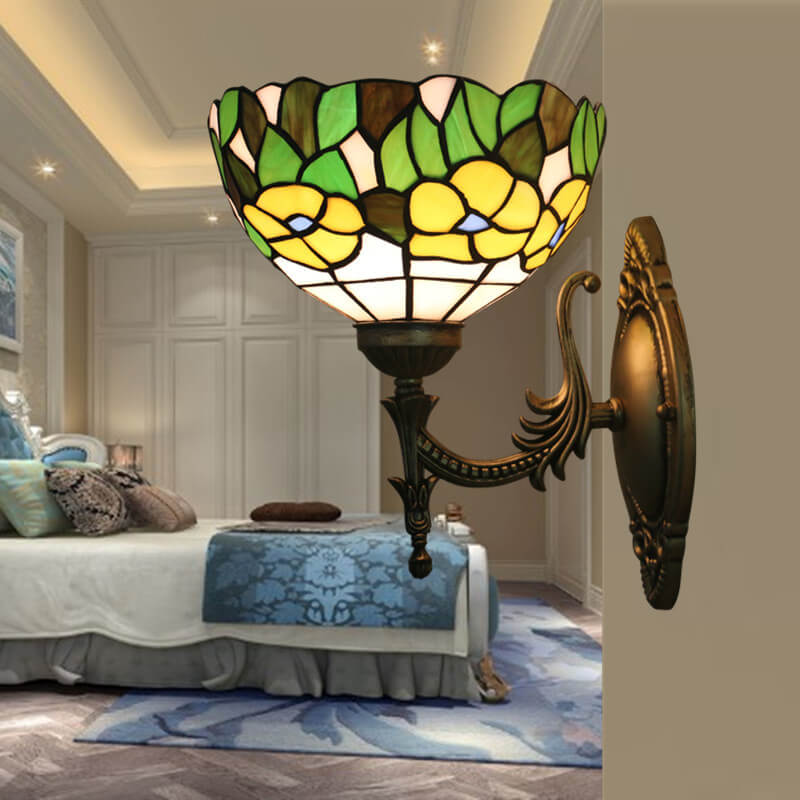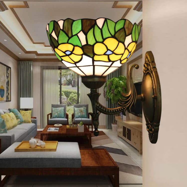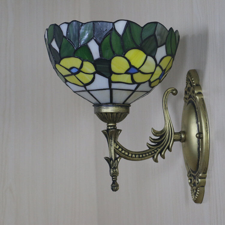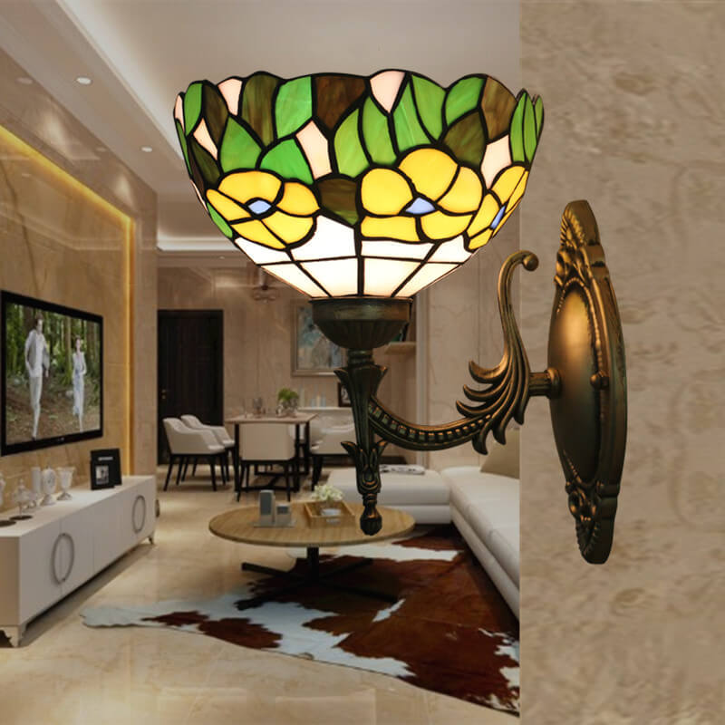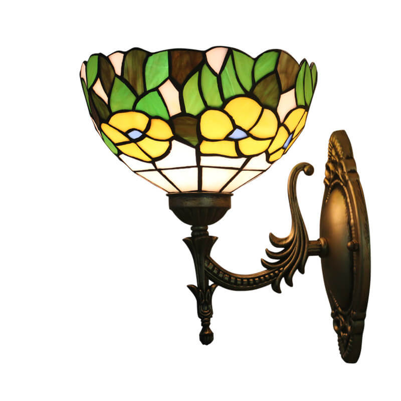 European Tiffany Floral Green Leaf Stained Glass 1-Light Wall Sconce Lamp