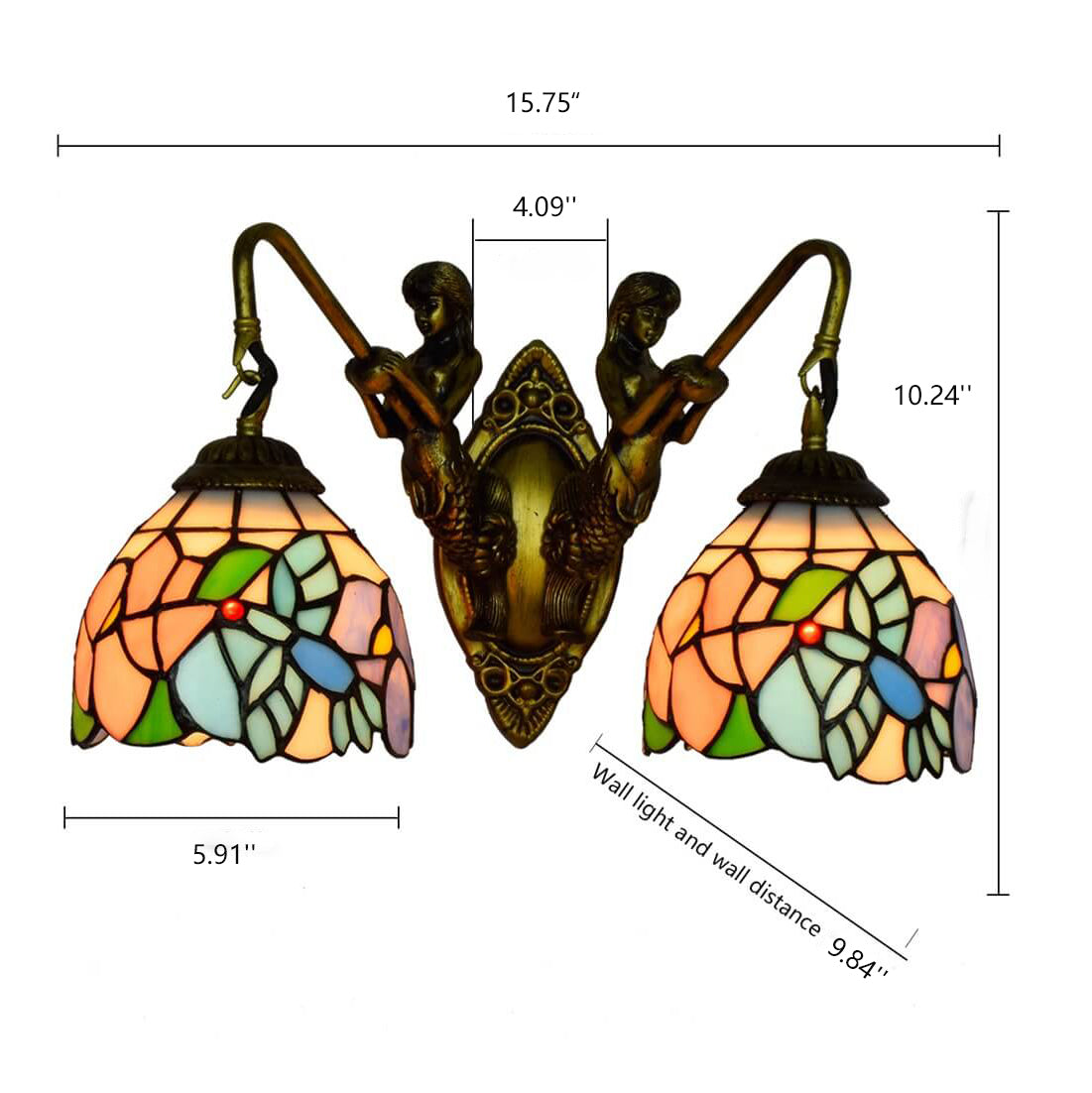 European Tiffany Mermaid Stained Glass 2-Light Wall Sconce Lamp