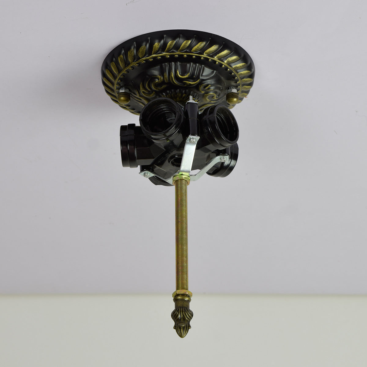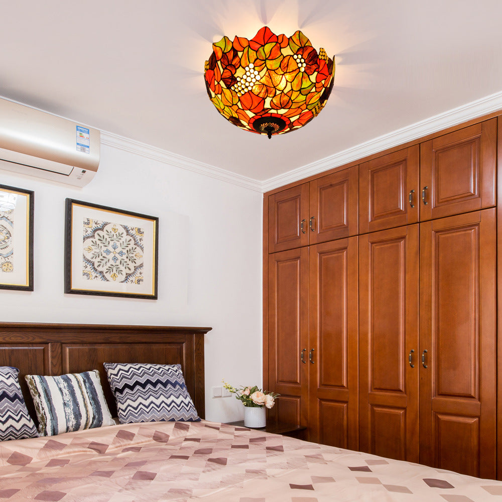 European Vintage Rustic Tiffany Stained Glass Iron 5-Light Flush Mount Lighting