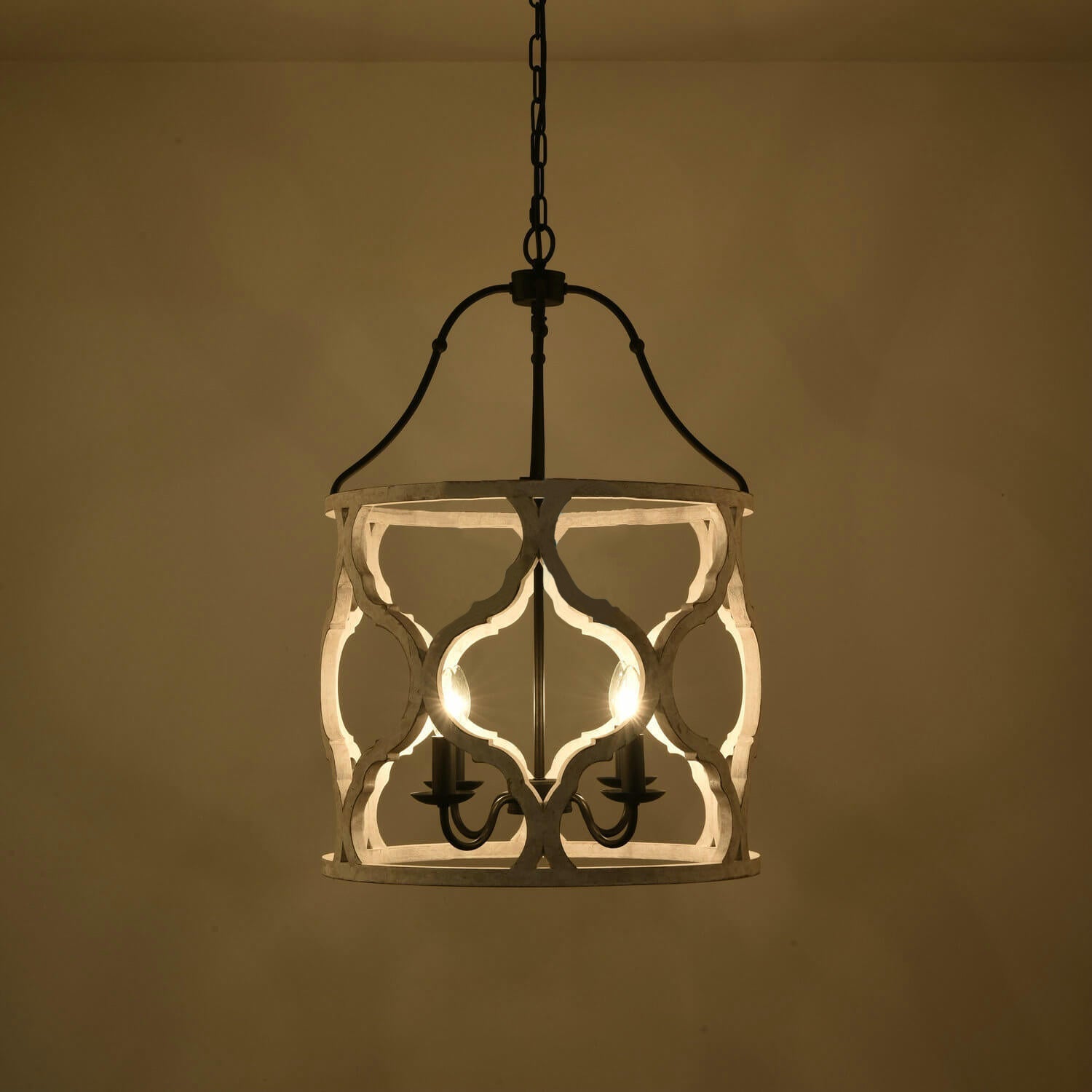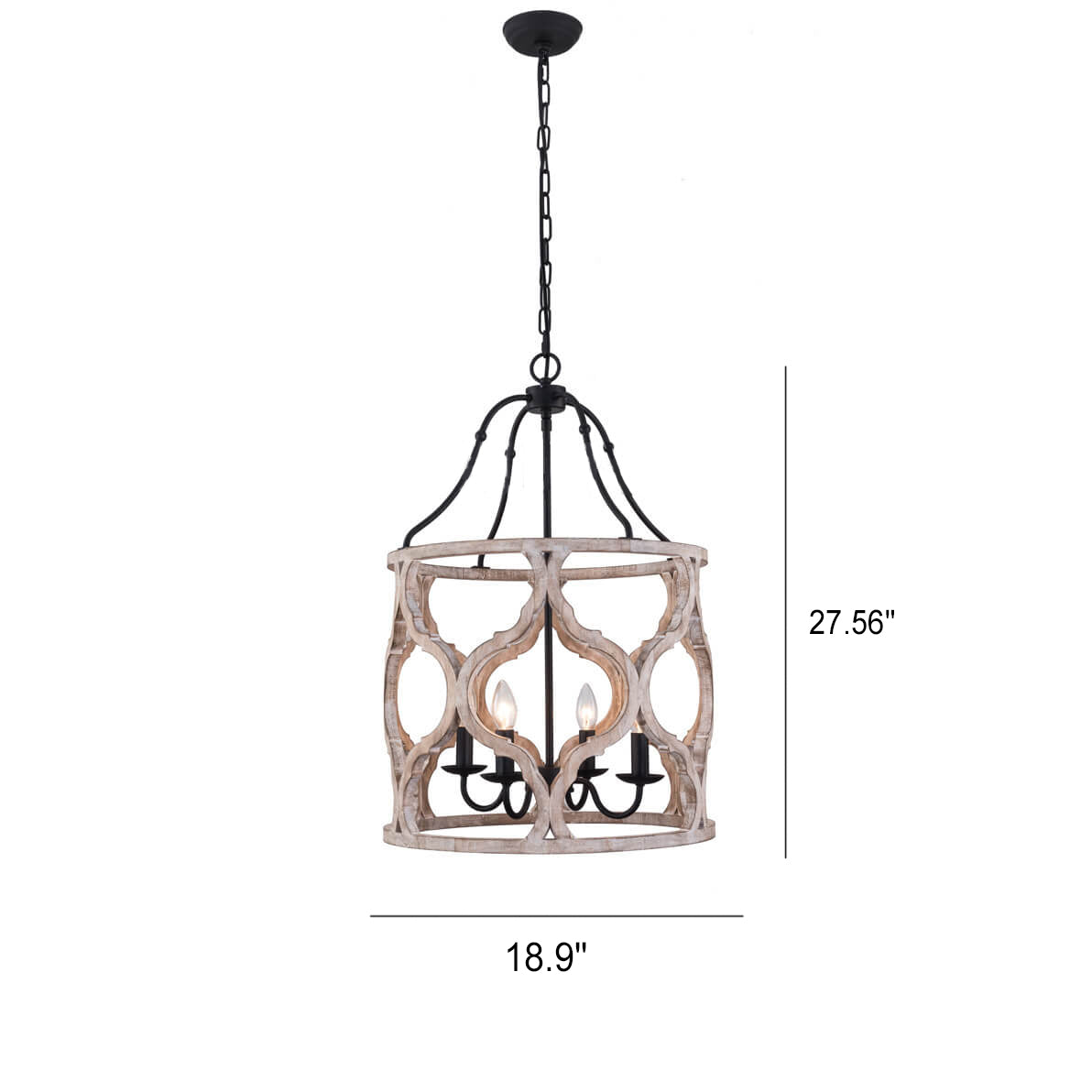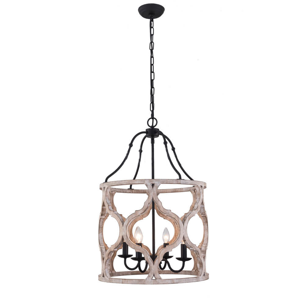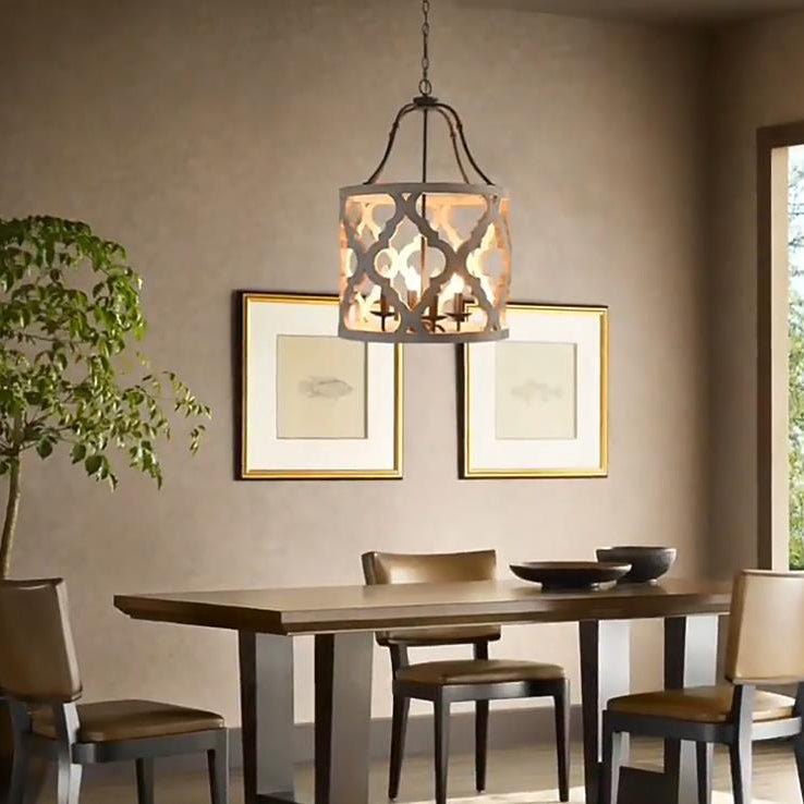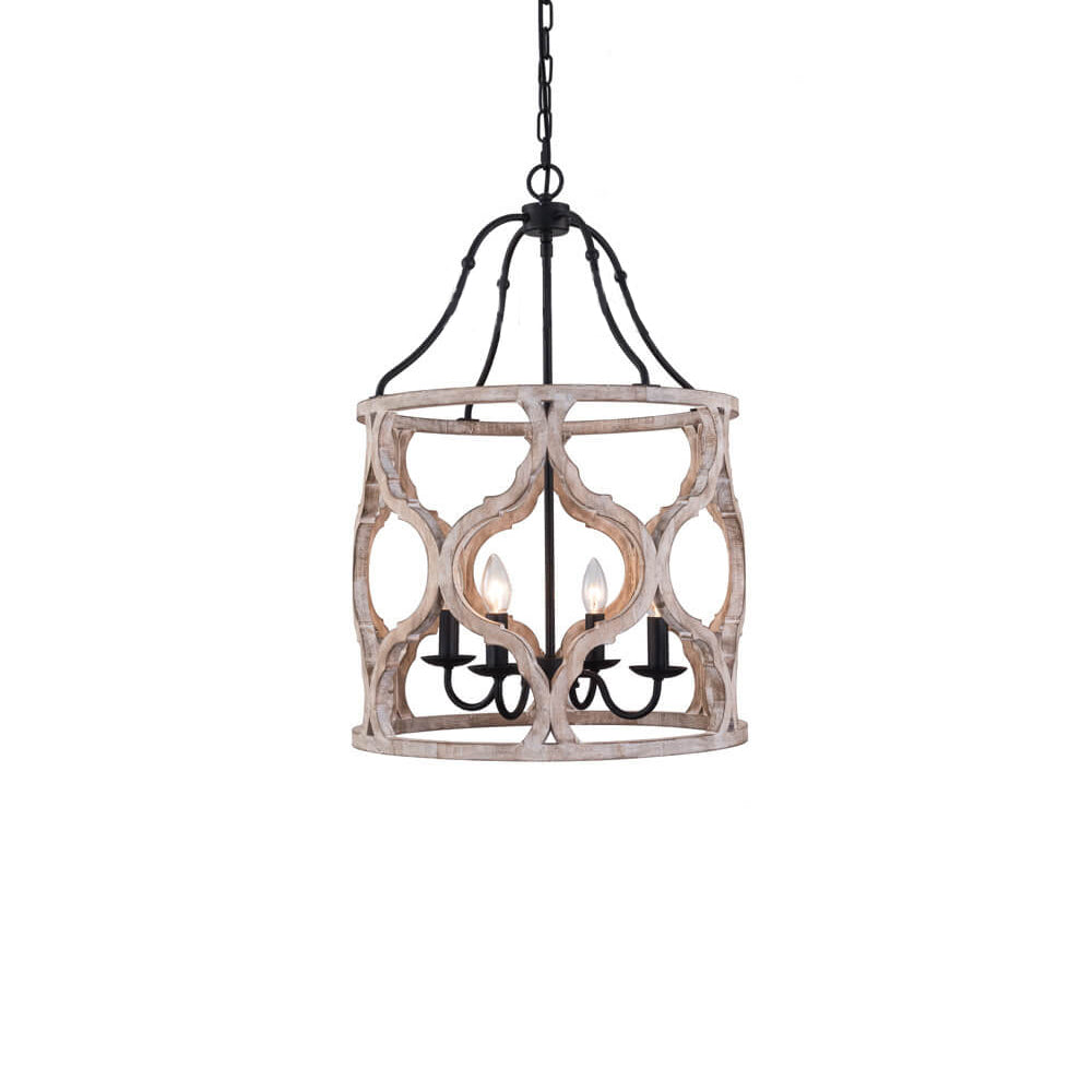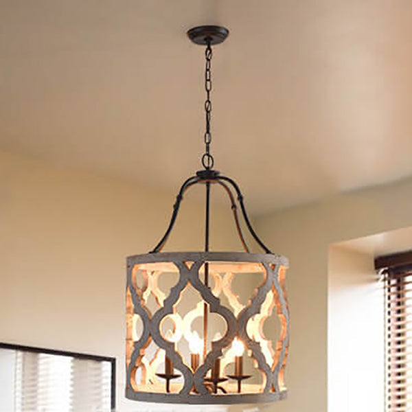 European Vintage Wooden Iron Column 4-Light Chandelier
