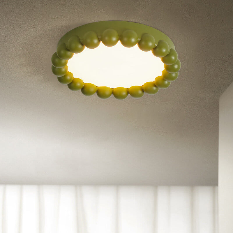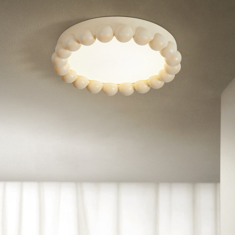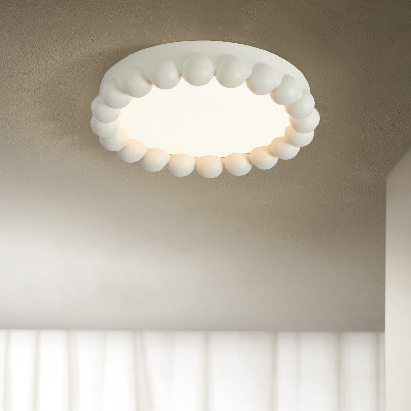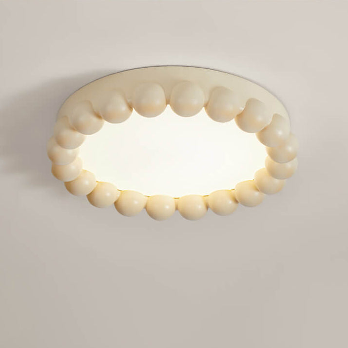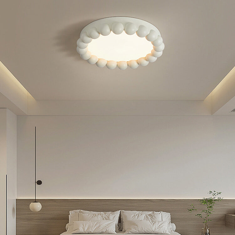 French Modern Cream Disc Glass Steel Acrylic LED Flush Mount Ceiling Light
