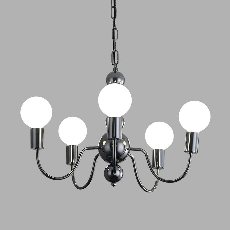 French Modern Minimalist Round Ball Iron Glass 3/5/8 Light Chandelier
