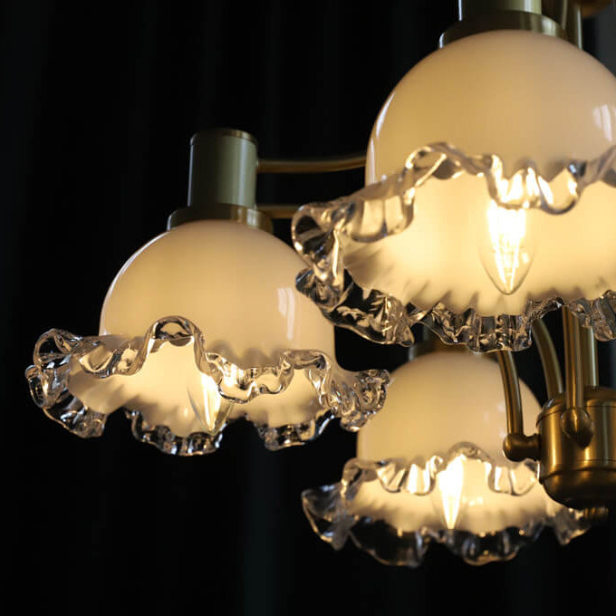 French Vintage Floral Copper Glass 3/5 Light Chandelier