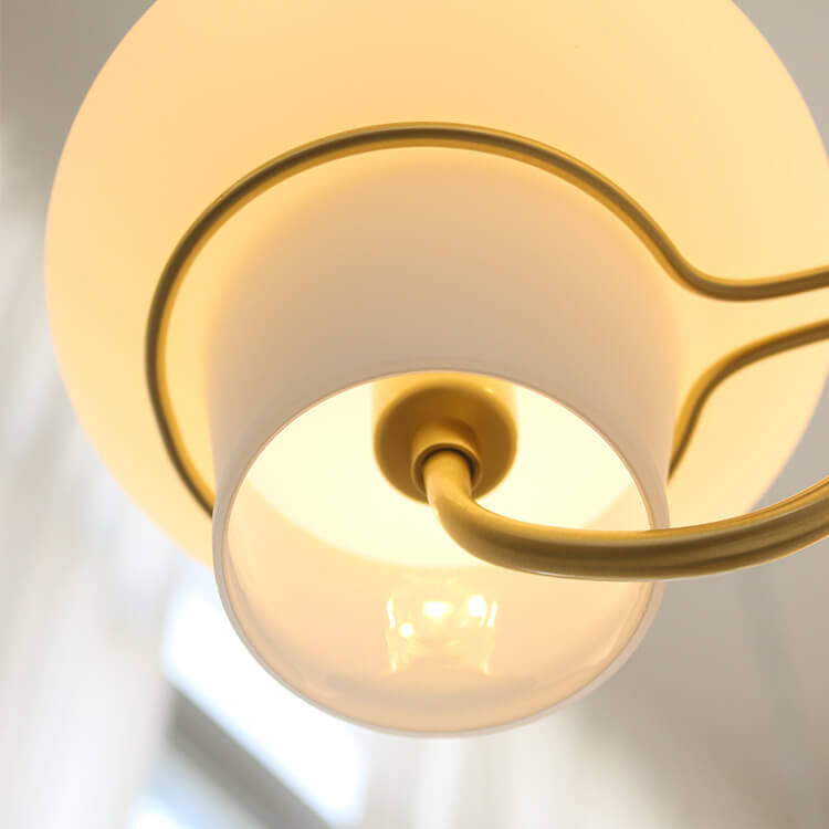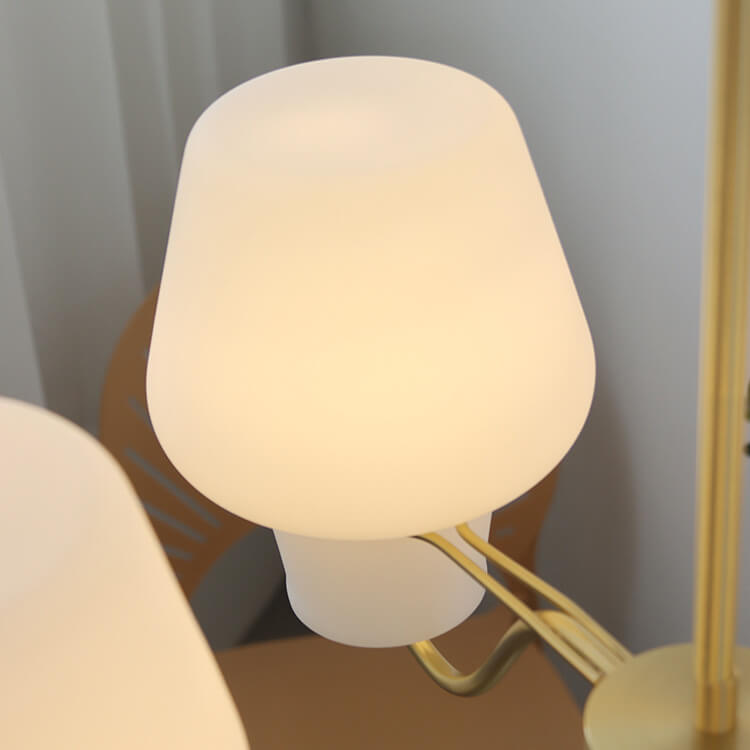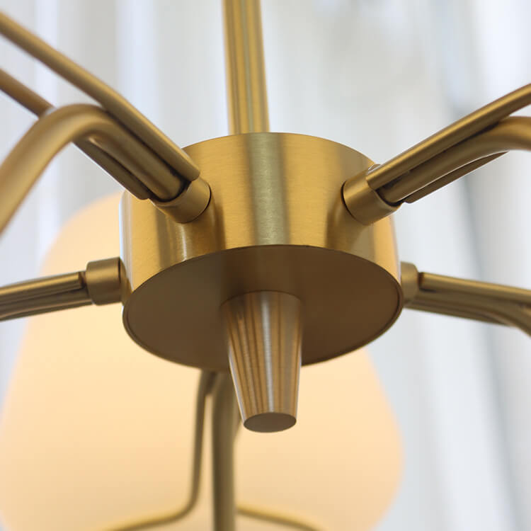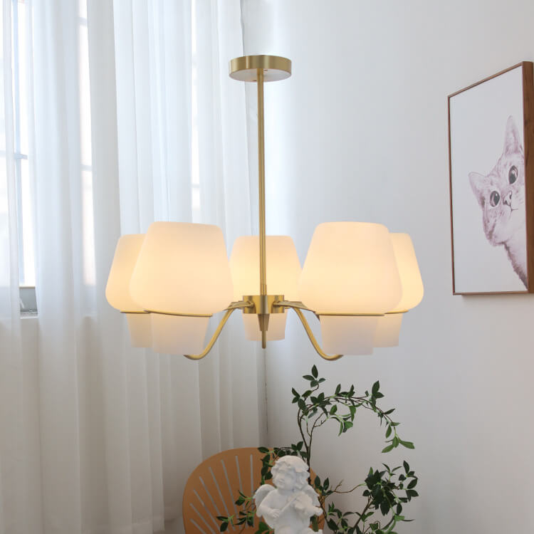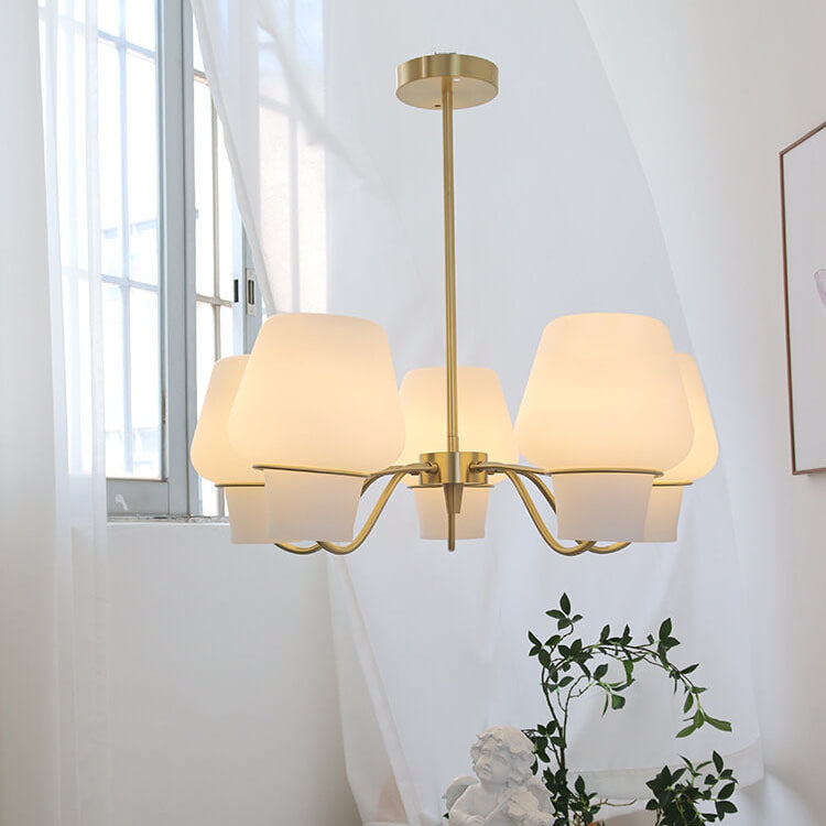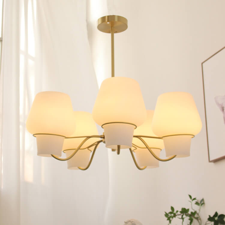 French Vintage Frosted Glass Cone Shade Brass Branch 5/6/8 Light Chandelier
