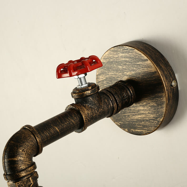 Industrial Iron Vintage Faucet Water Pipe Design 1-Light Wall Sconce Lamp