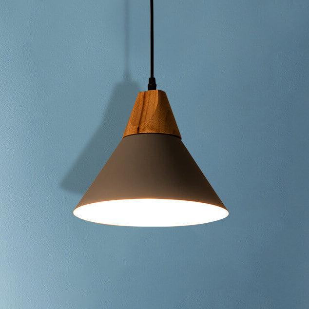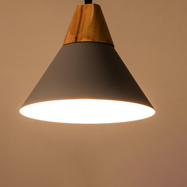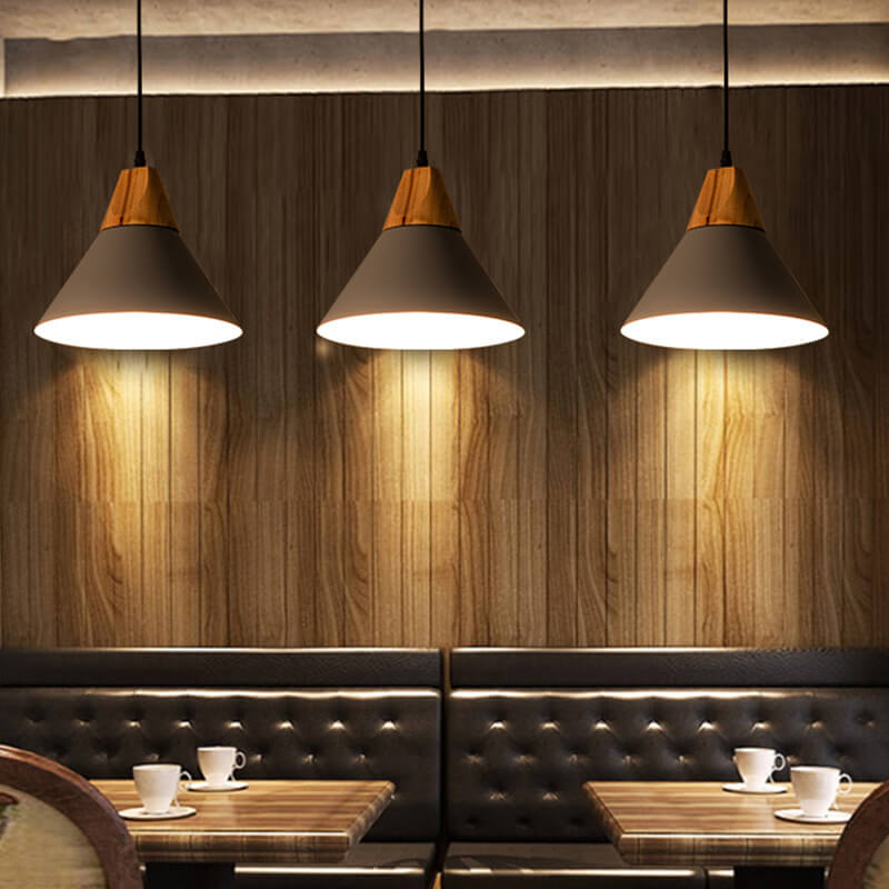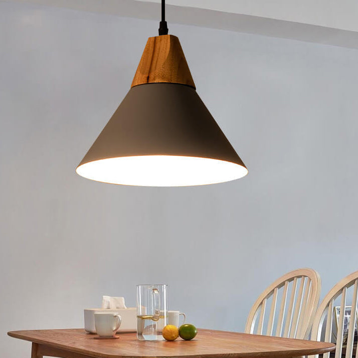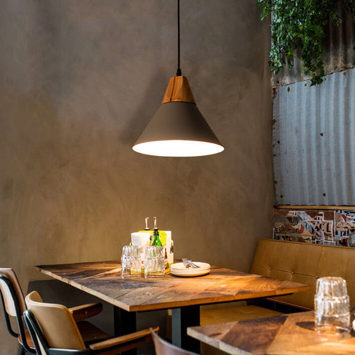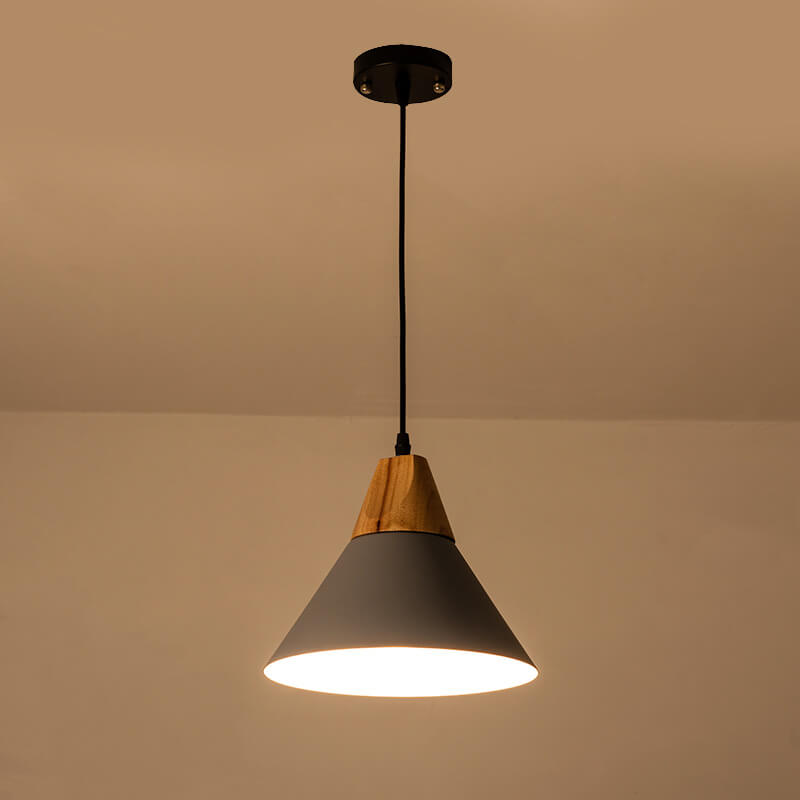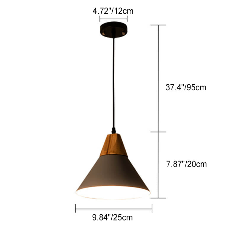Industrial Minimalist Cone Wood Iron 1-Light Pendant Light