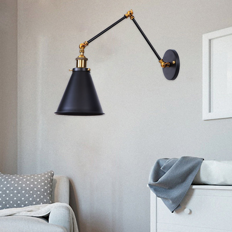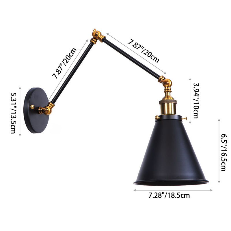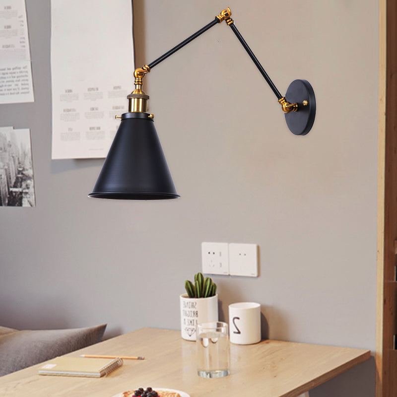 Industrial Vintage Iron Cone Swing Arm 1-Light Wall Sconce Lamp
