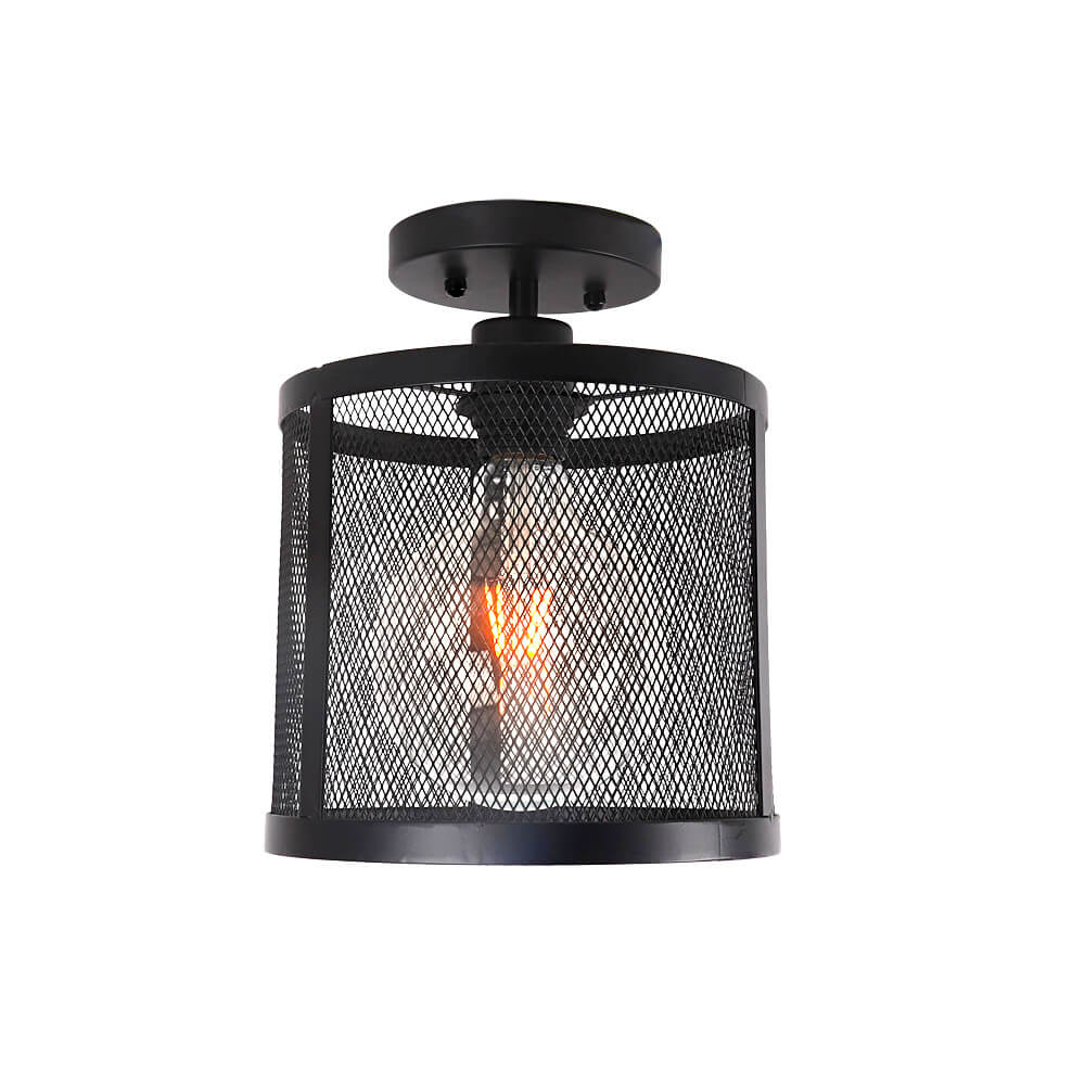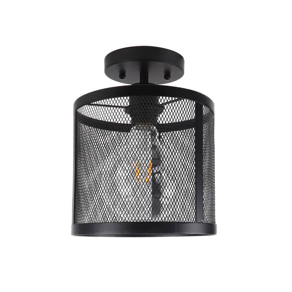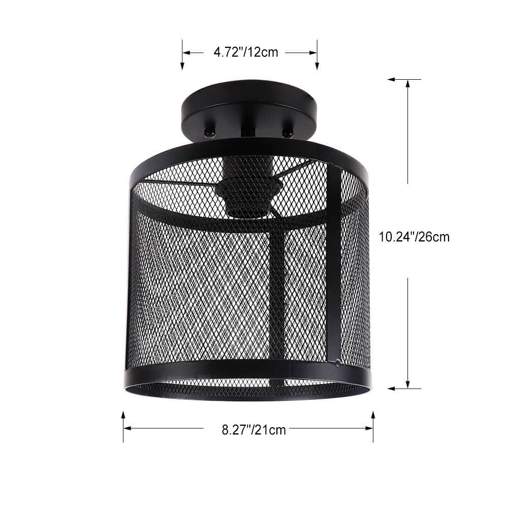 Industrial Vintage Iron Mesh Cylinder 1-Light Semi-Flush Mount Ceiling Light