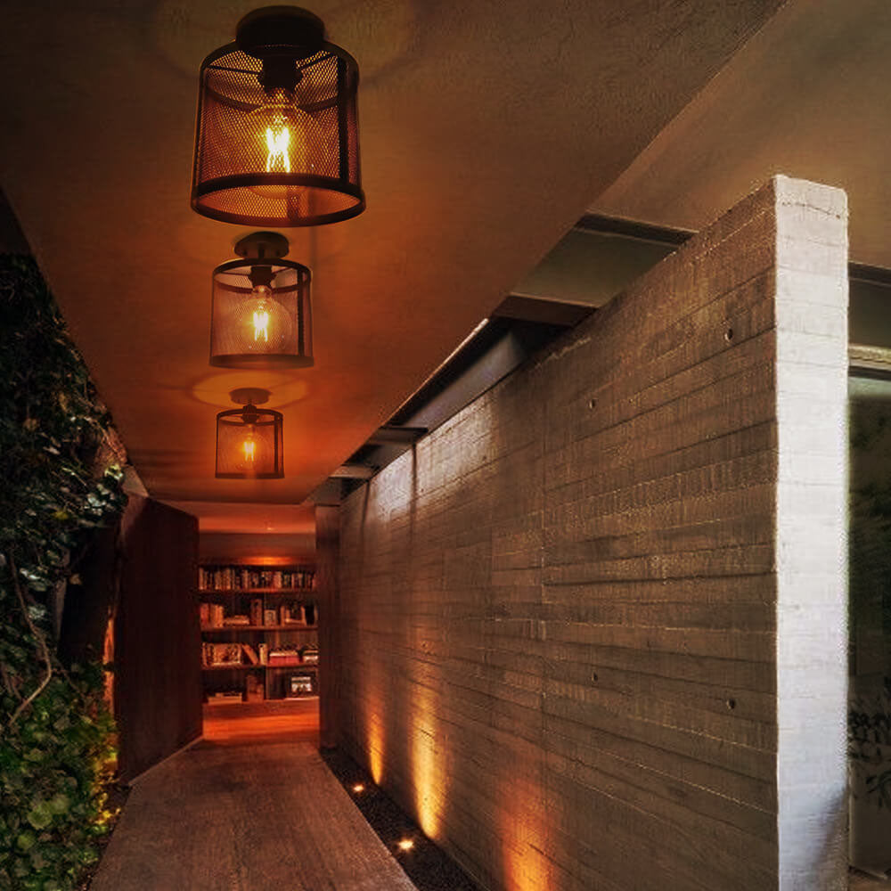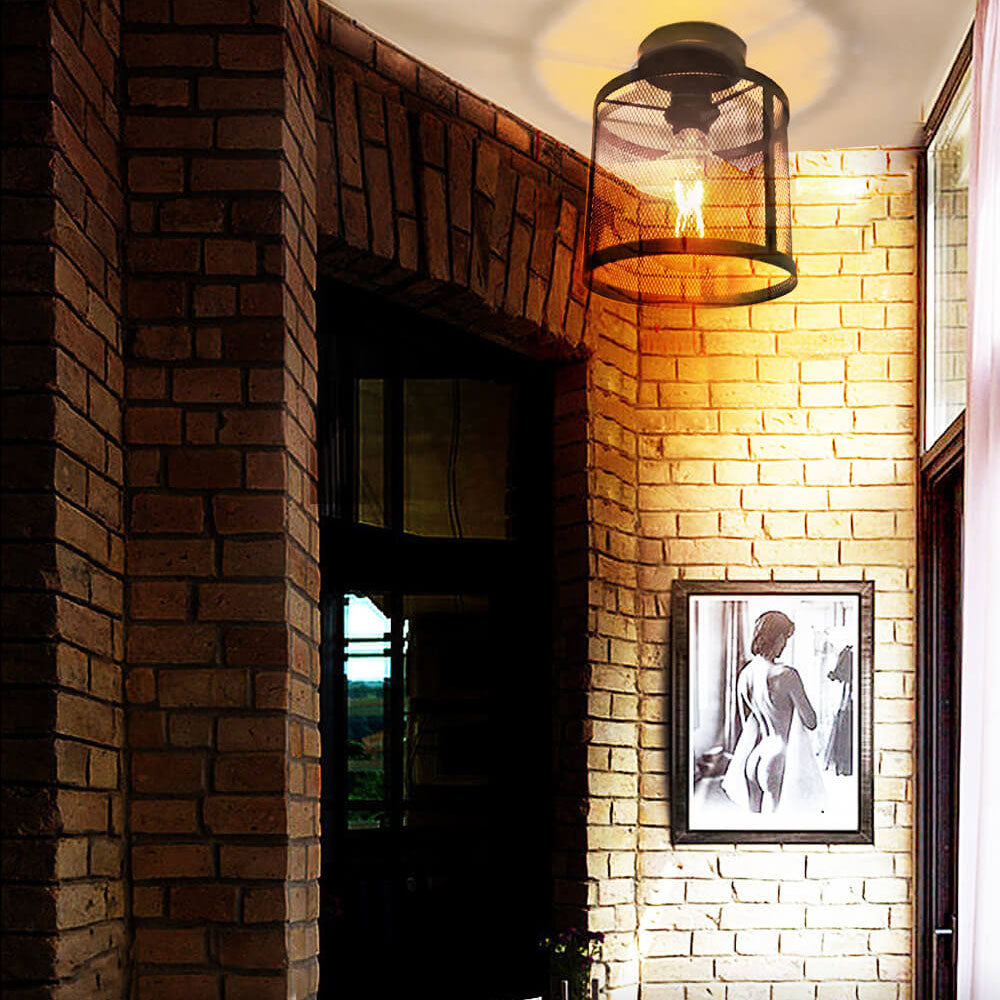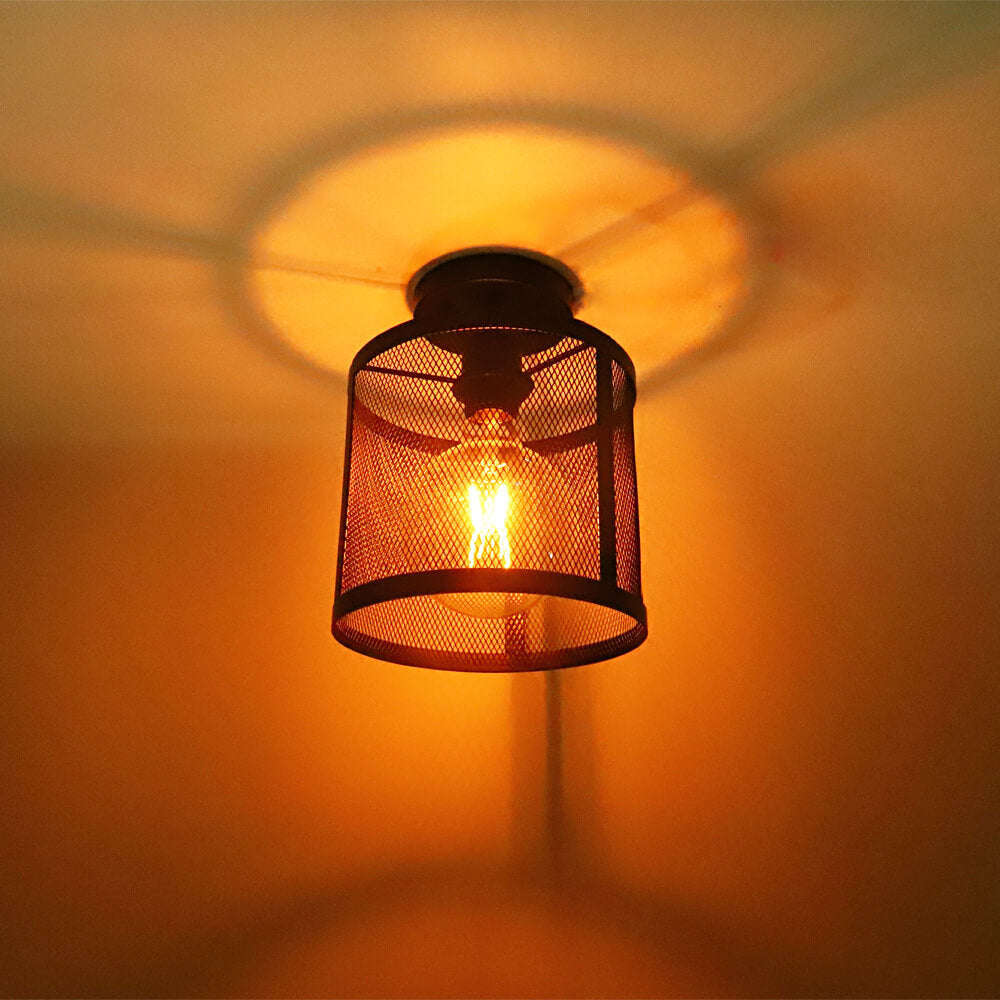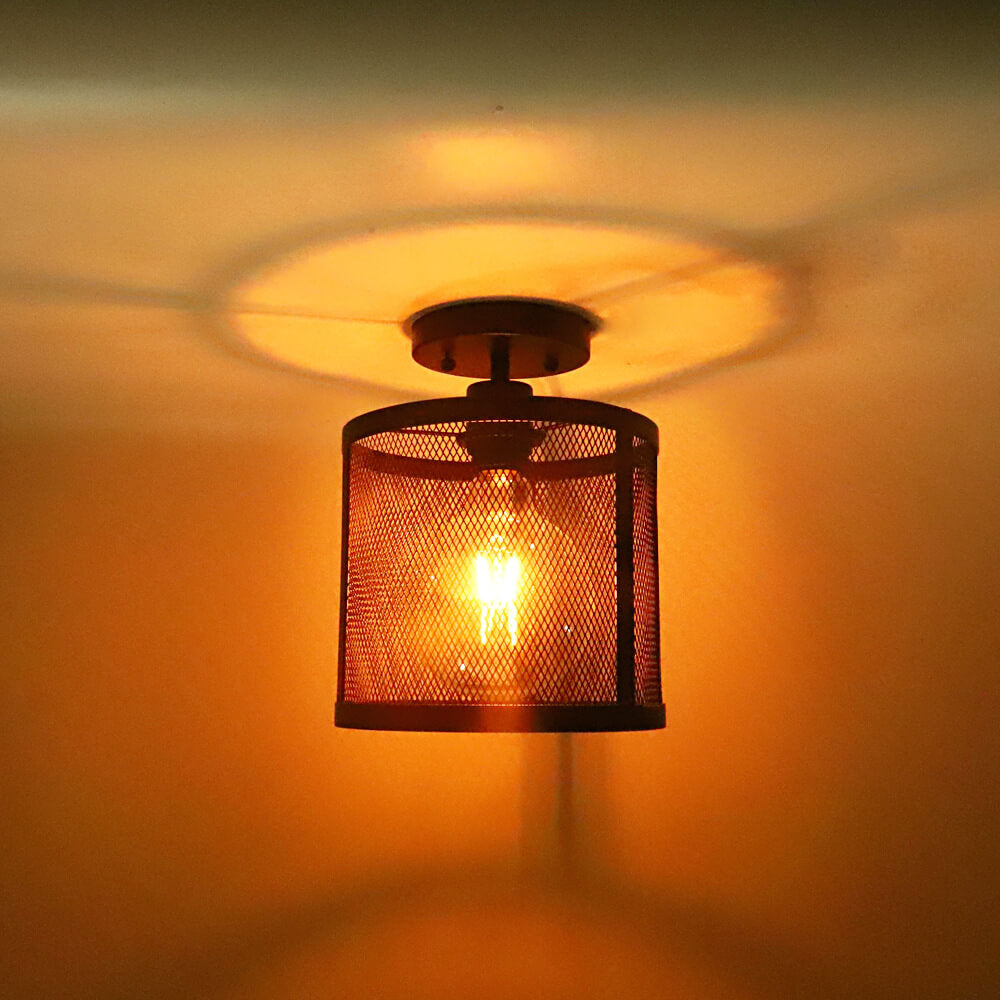 Industrial Vintage Iron Mesh Cylinder 1-Light Semi-Flush Mount Ceiling Light