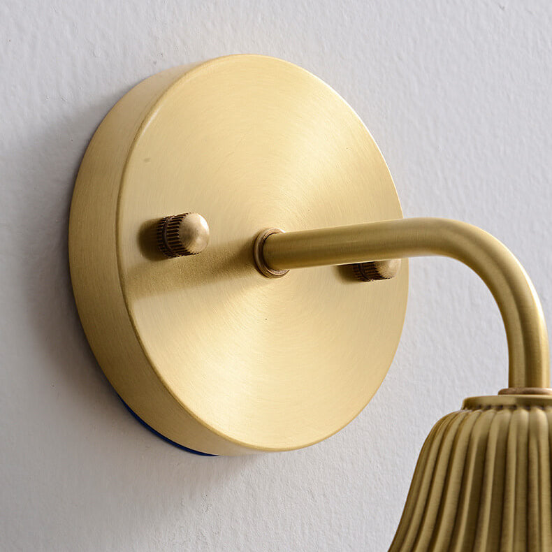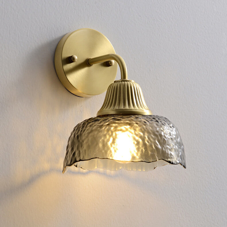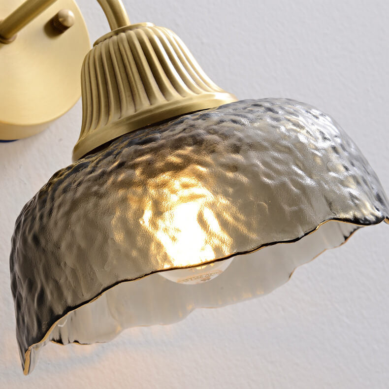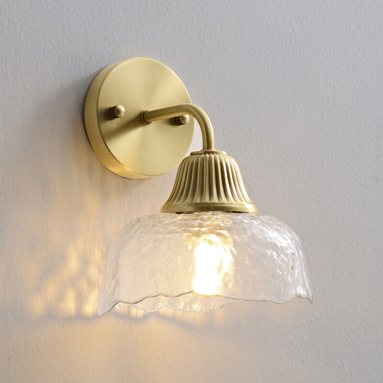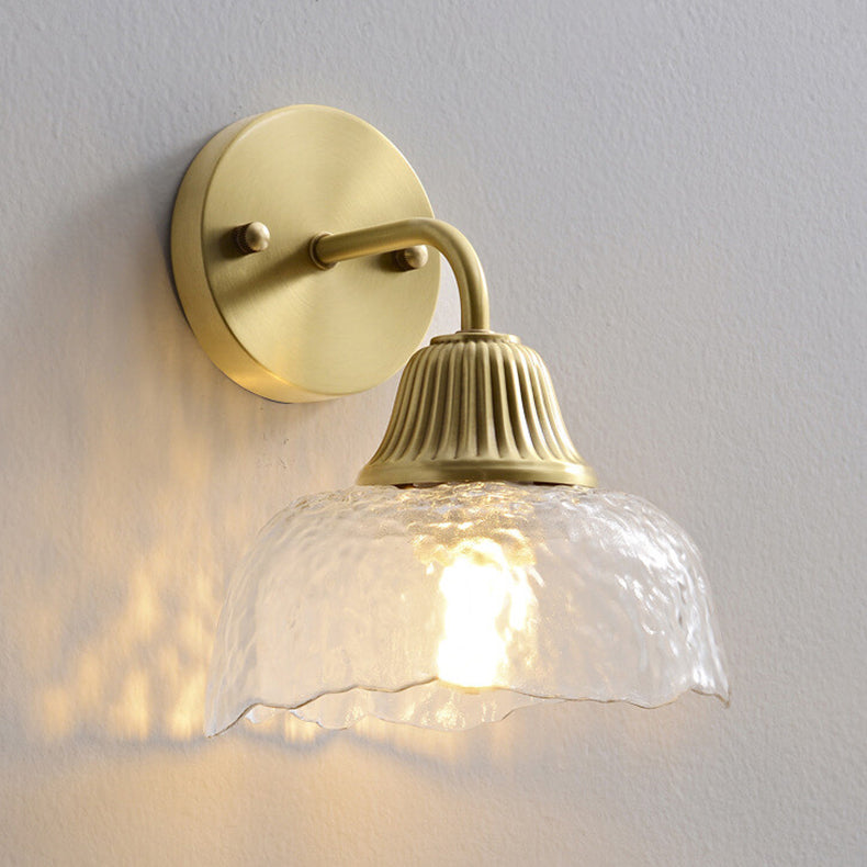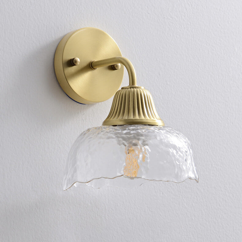 Italian Light Luxury Brass Glass Flower Bud Shade 1-Light Wall Sconce Lamp