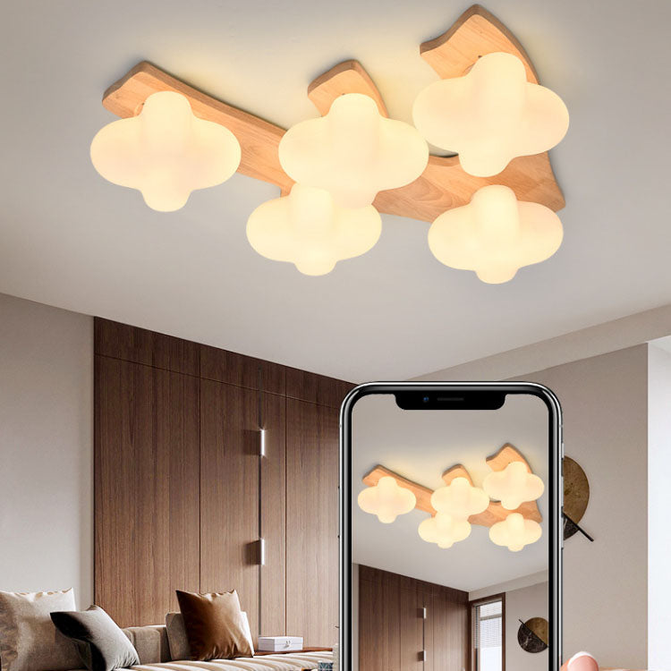 Japanese Cream Logs Cloudy Plum 3/5 Light Flush Mount Ceiling Light