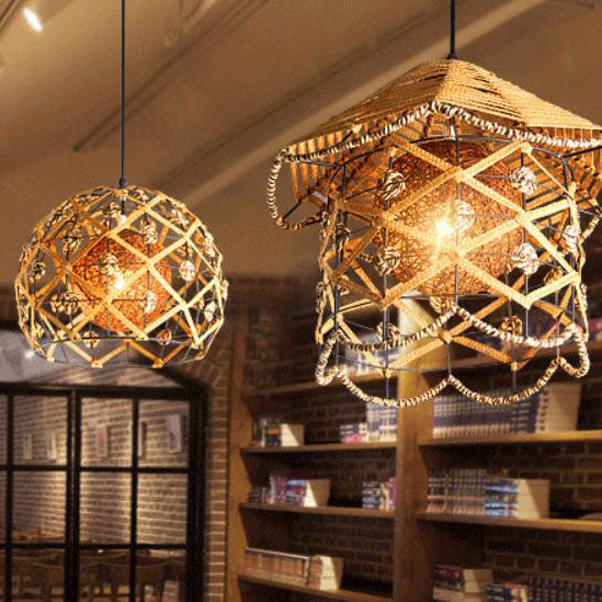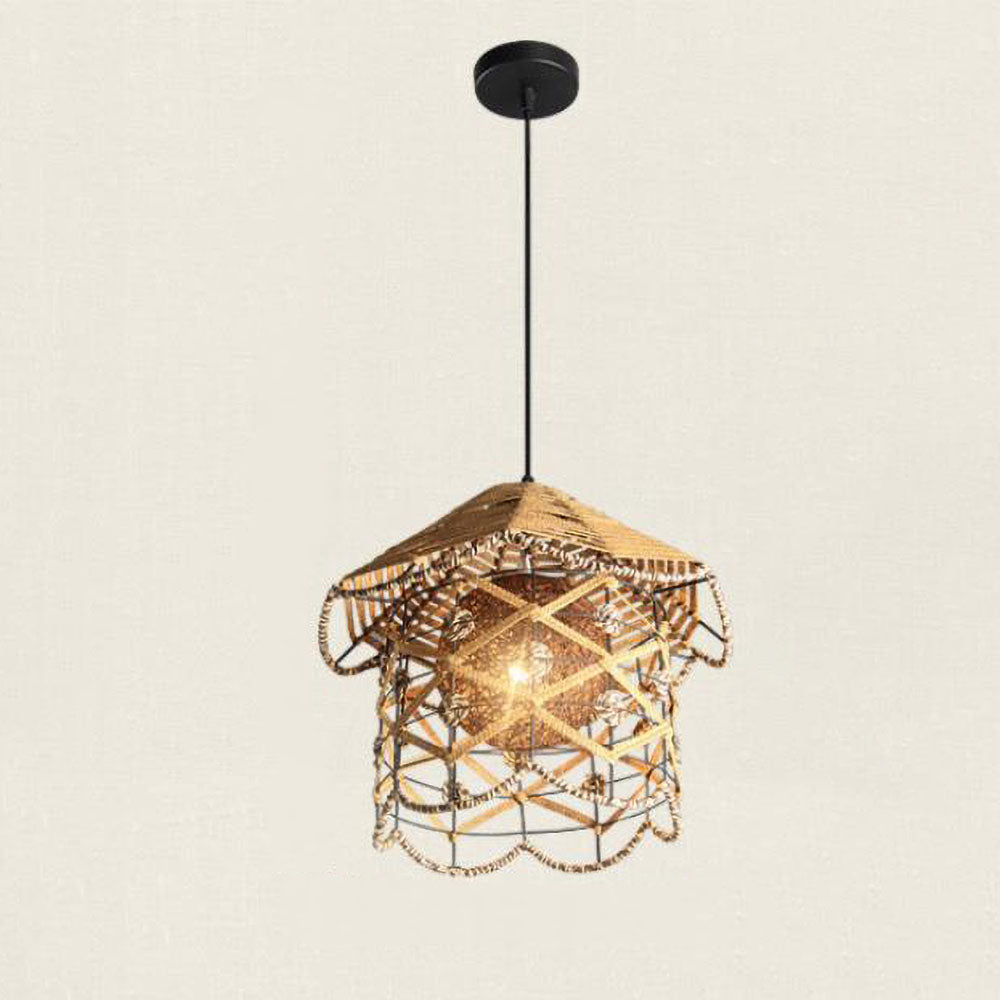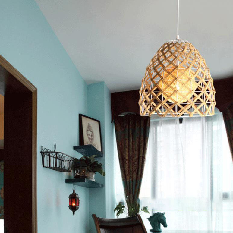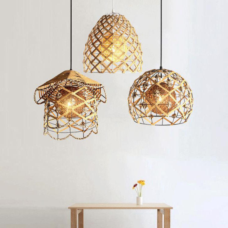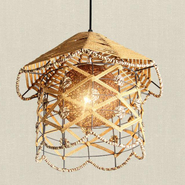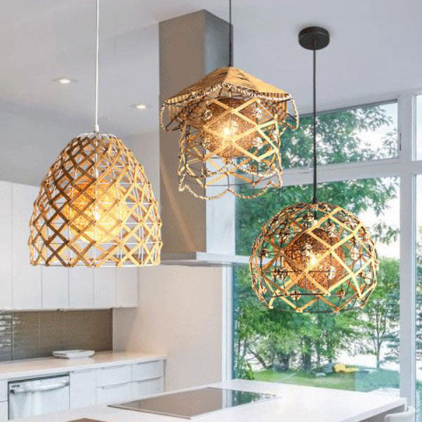 Japanese Creative Rattan Weaving Bird Nest 1-Light Pendant Light
