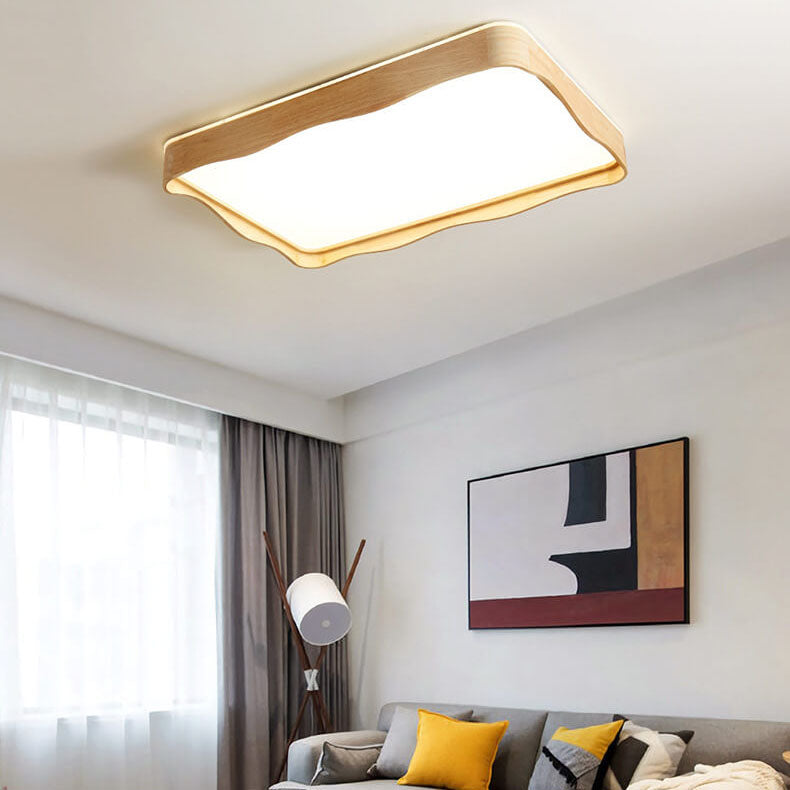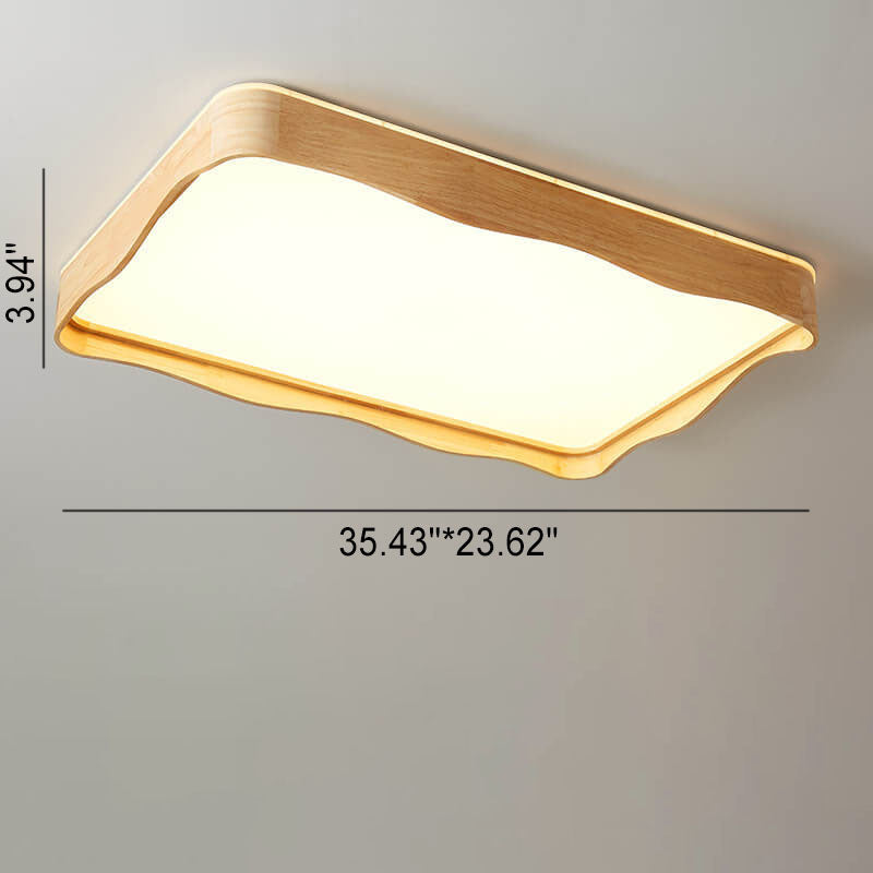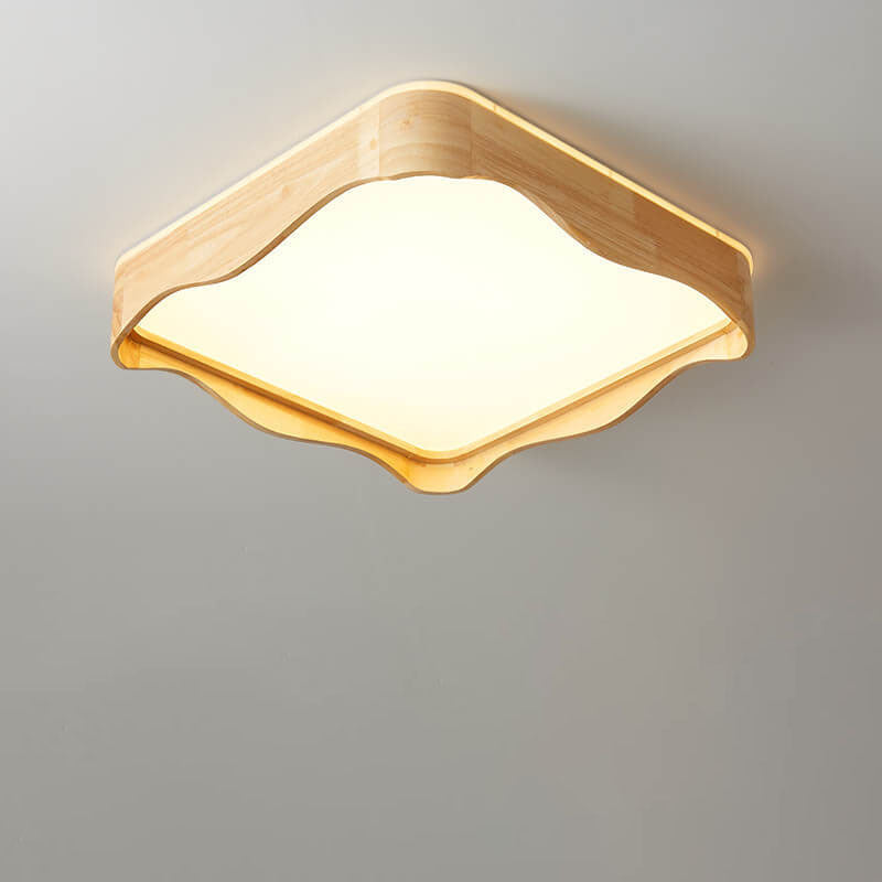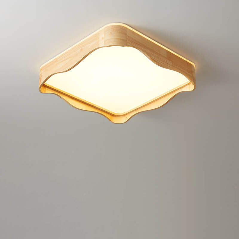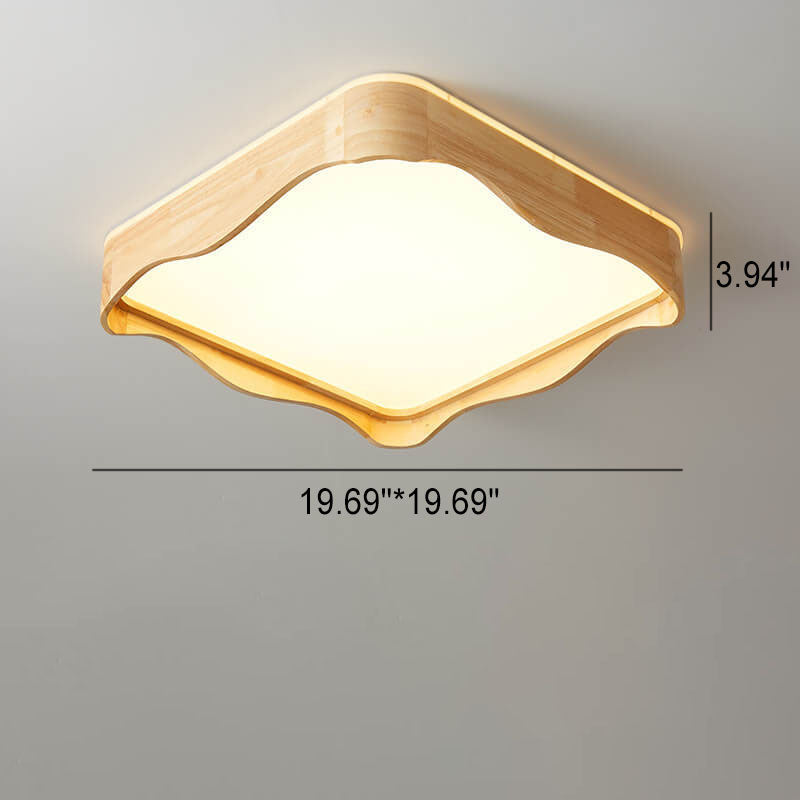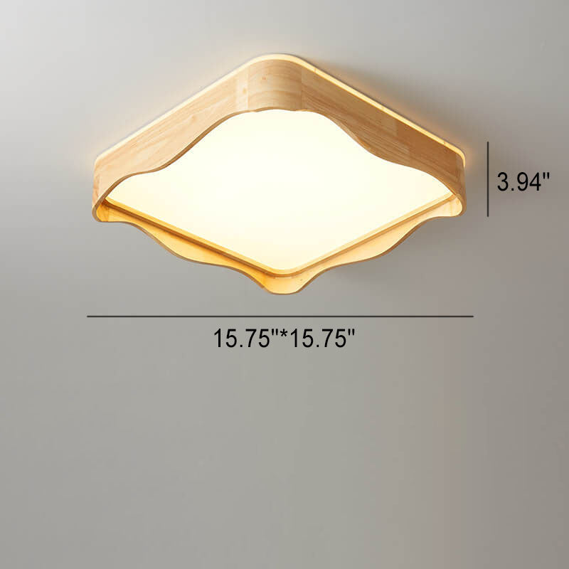 Japanese Original Wood Square Ripple Design LED Flush Mount Ceiling Light