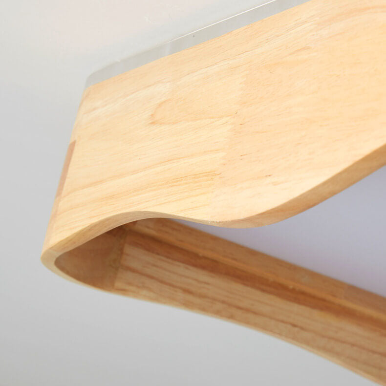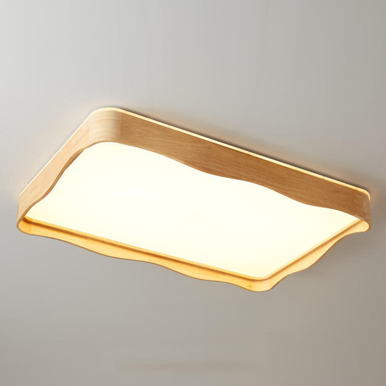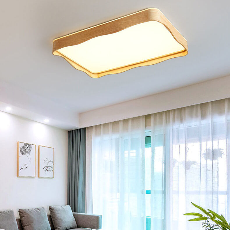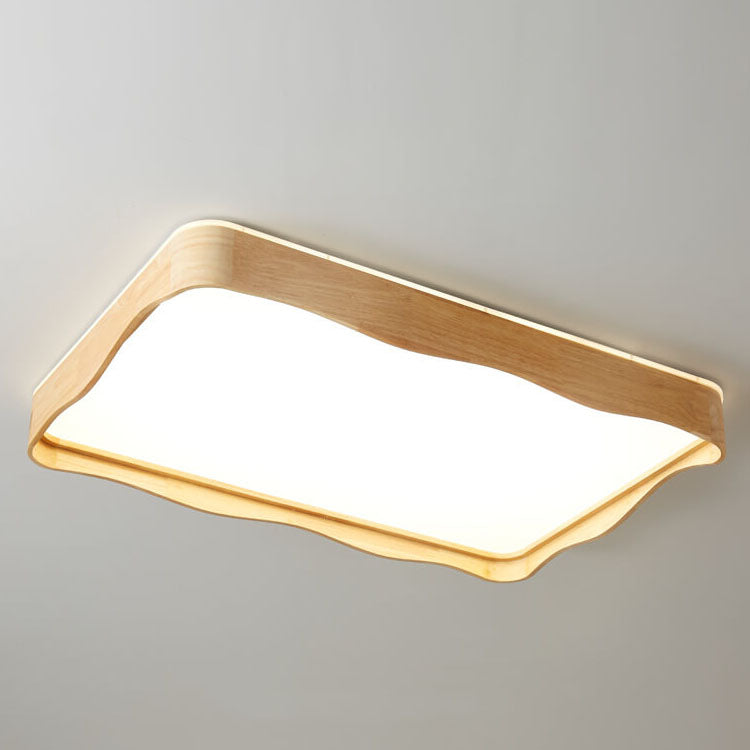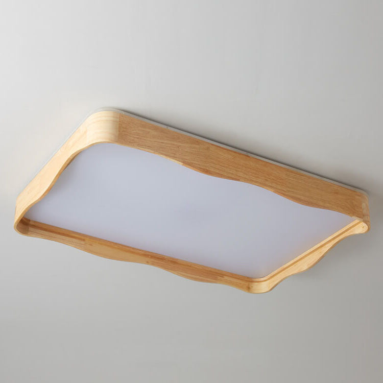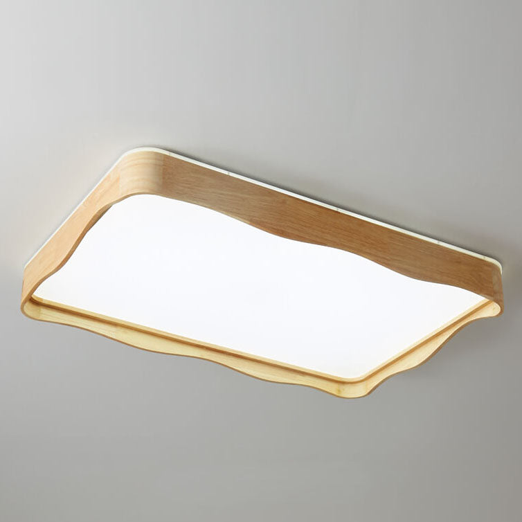 Japanese Original Wood Square Ripple Design LED Flush Mount Ceiling Light