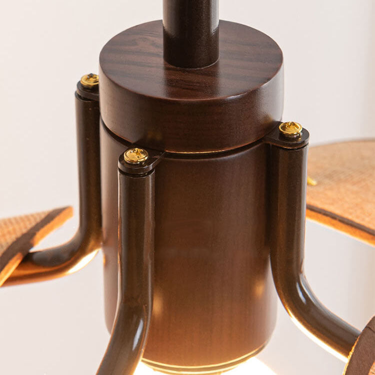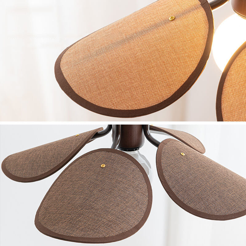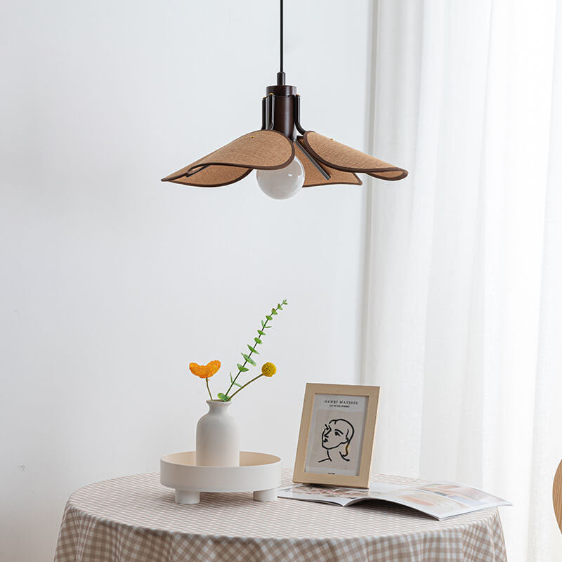 Japanese Solid Wood Fabric Leaf 1-Light Pendant Light