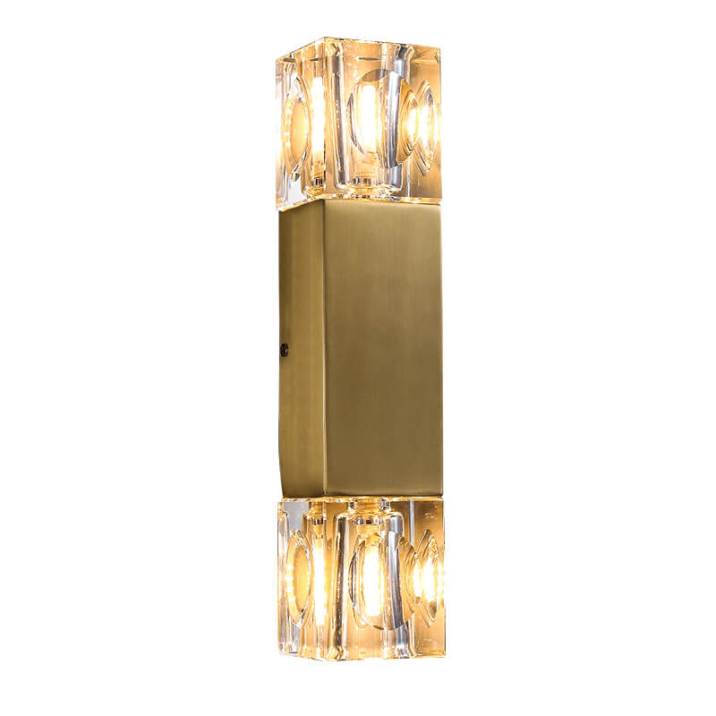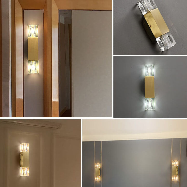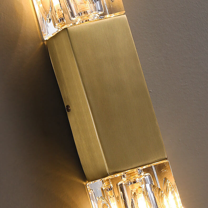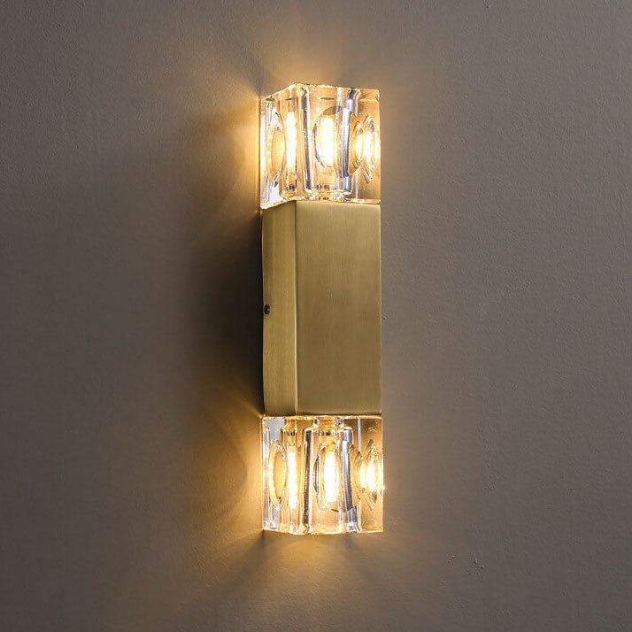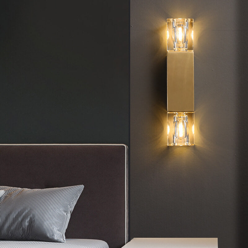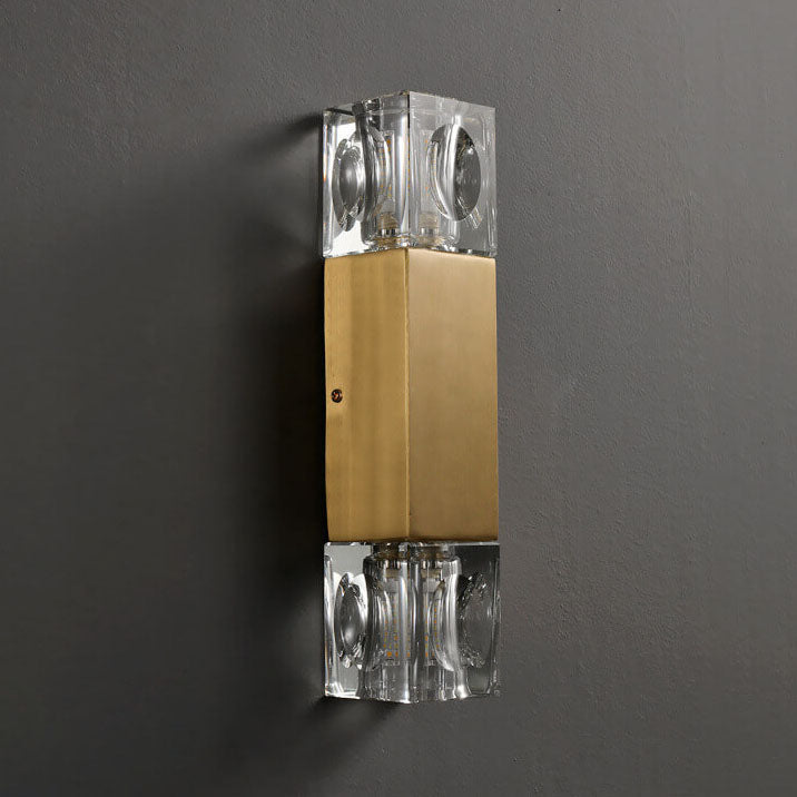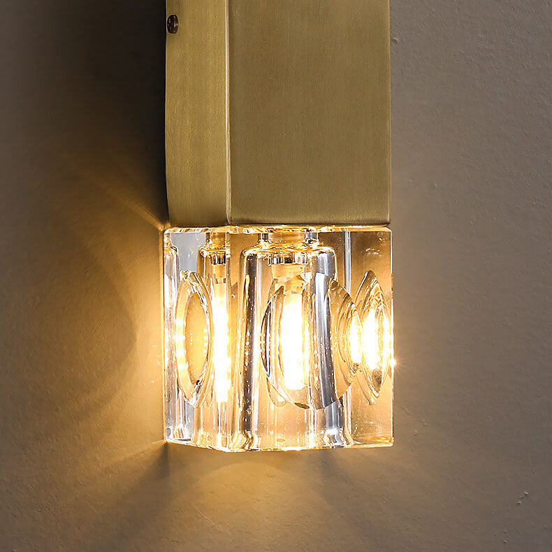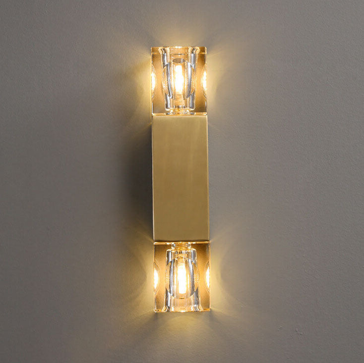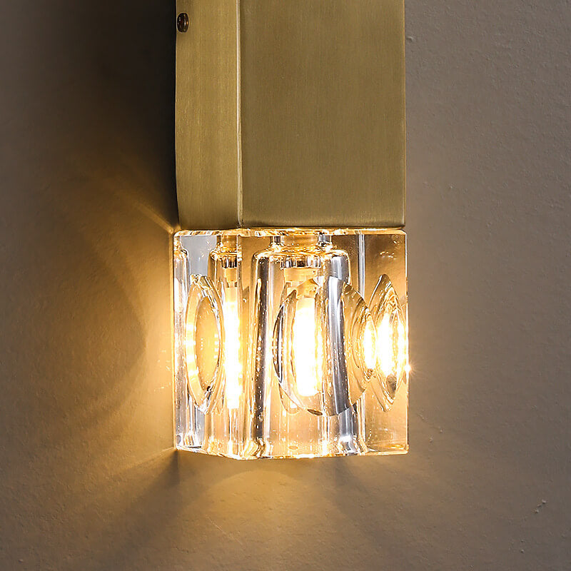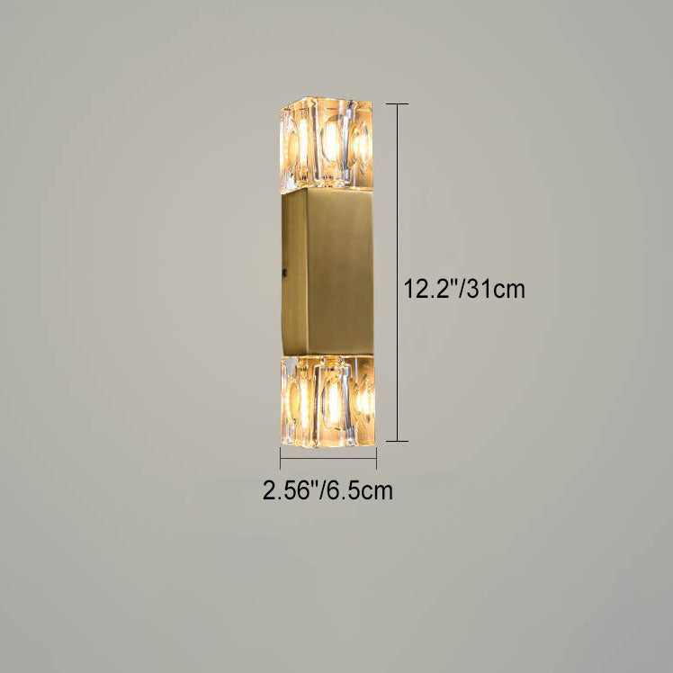 Minimalist Light Crystal Square Column Brass 2-Light Wall Sconce Lamp
