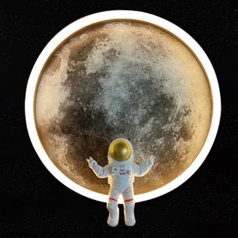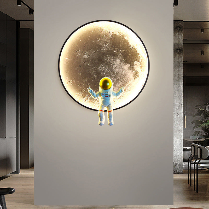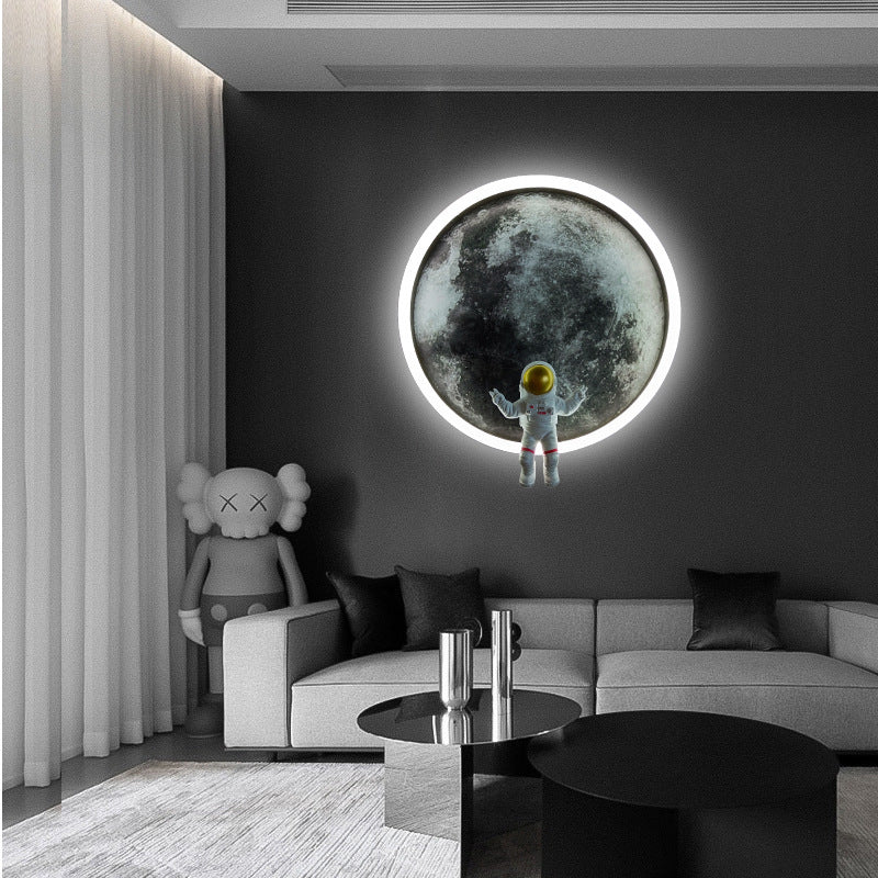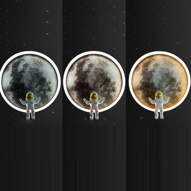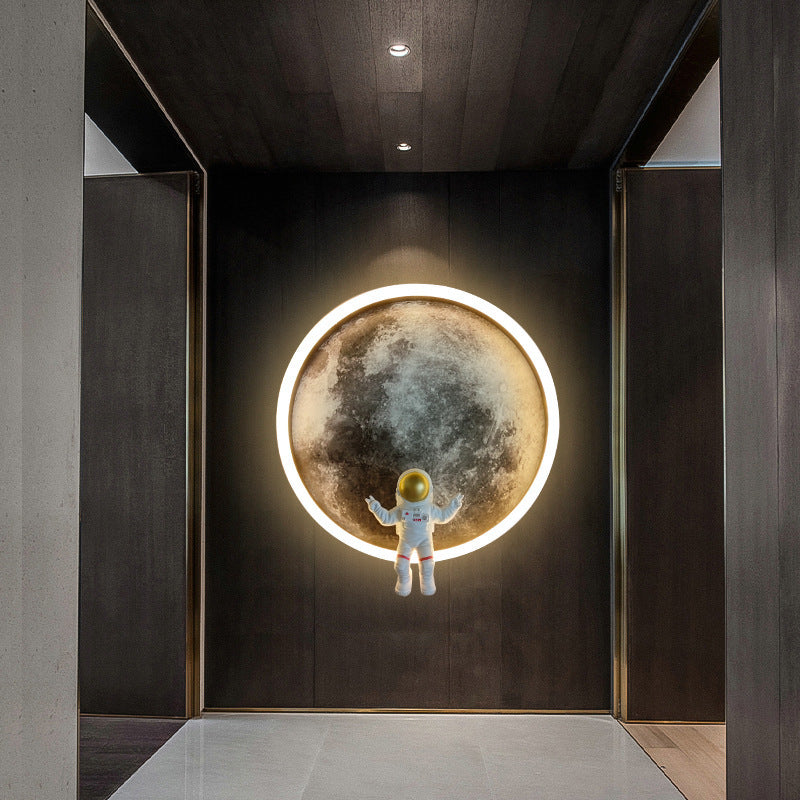 Modern Art Deco Astronaut Starry Night Round PC Aluminum Wall Sconce Lamp For Living Room