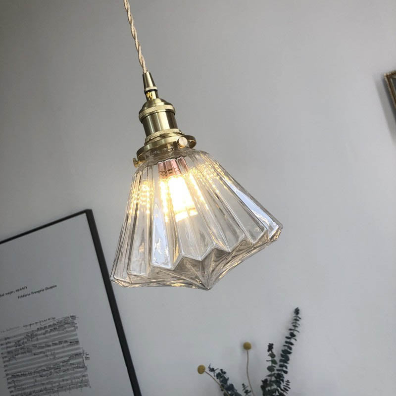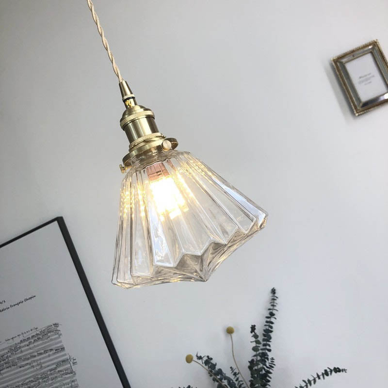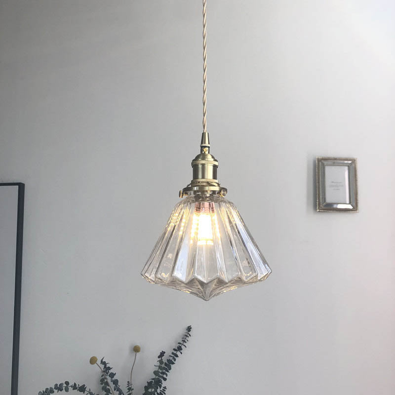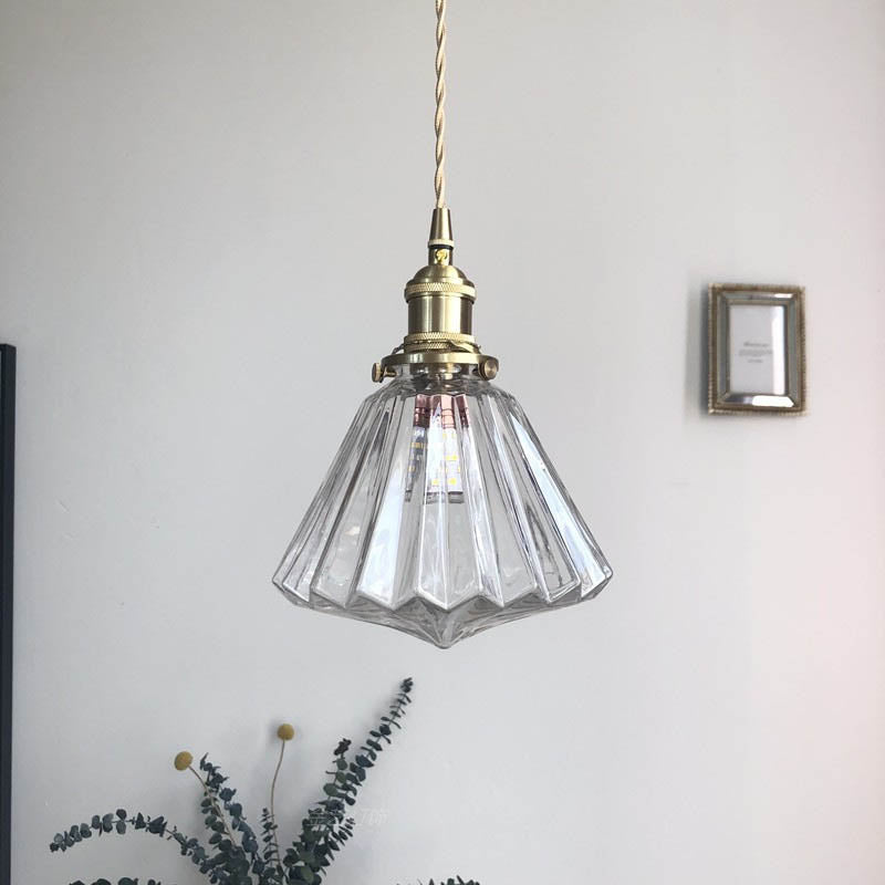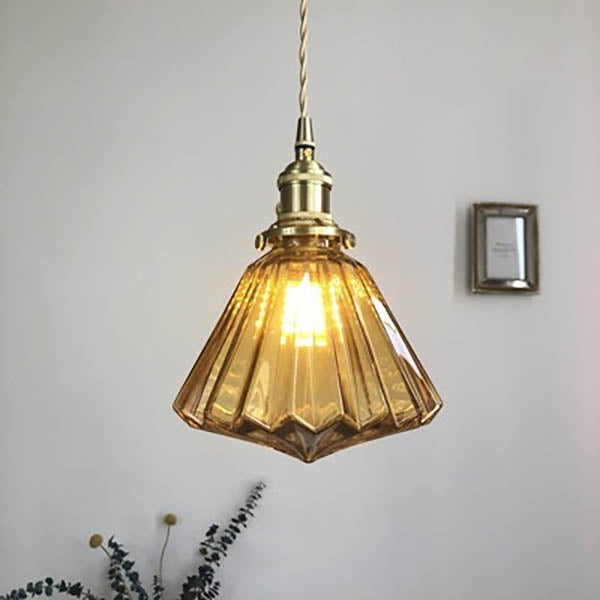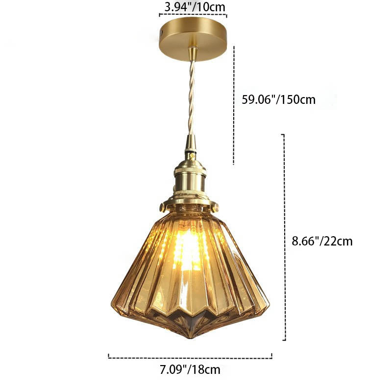 Modern Art Deco Brass Glass Diamond Shape 1-Light Pendant Light for Living Room