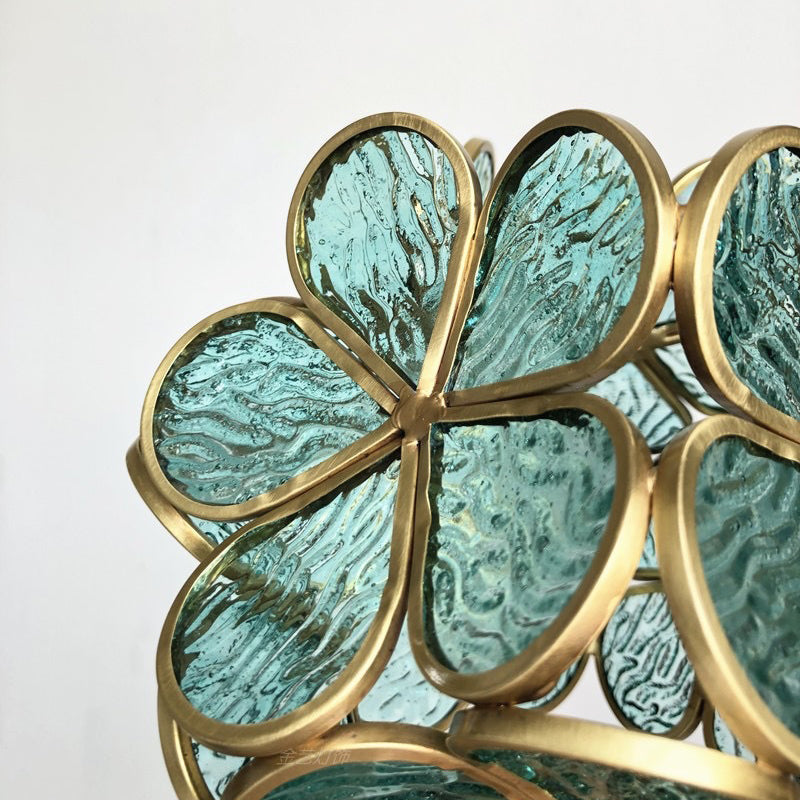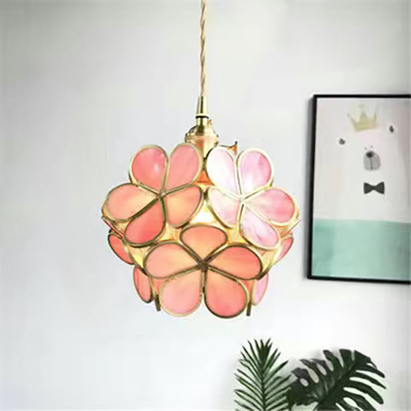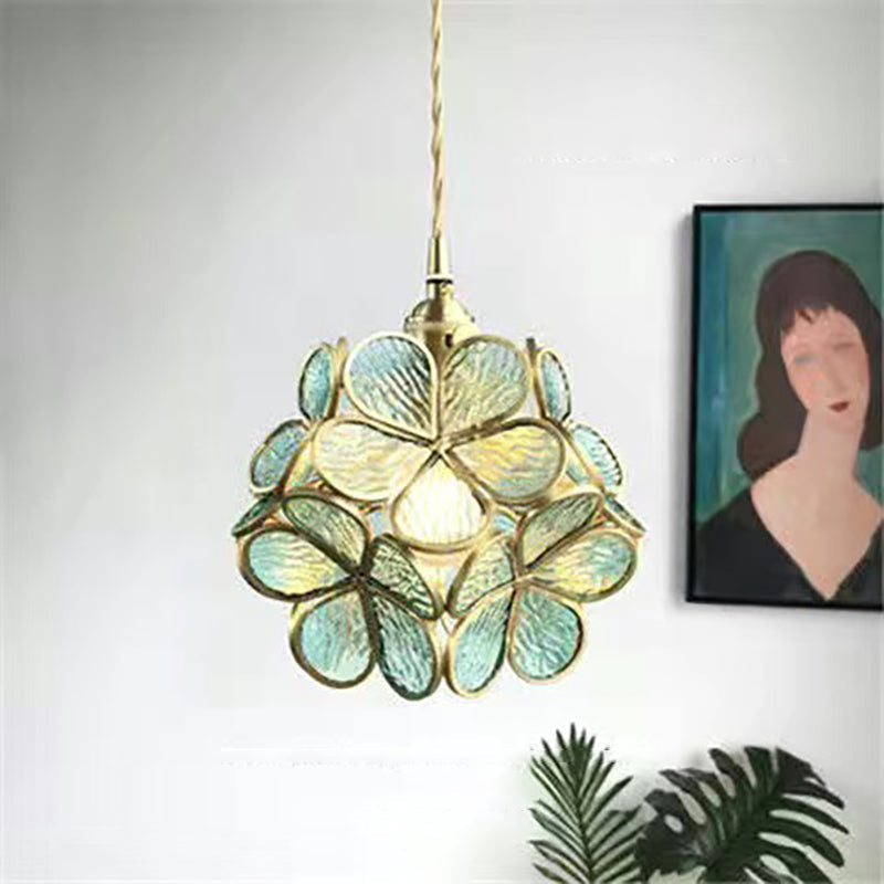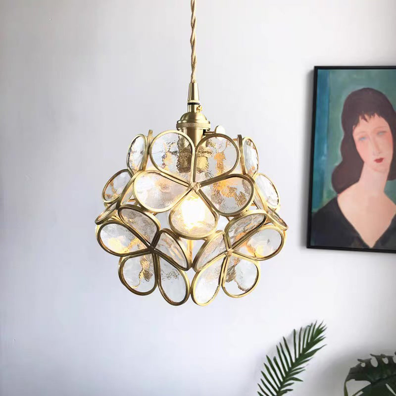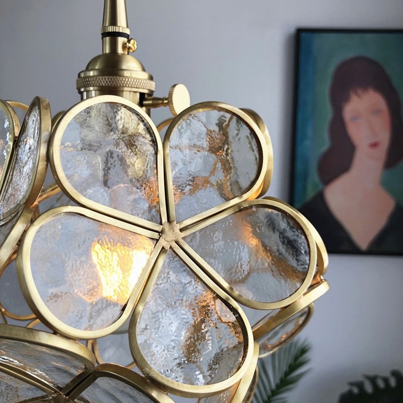 Modern Art Deco Brass Petal Glass Shade 1-Light Pendant Light For Living Room