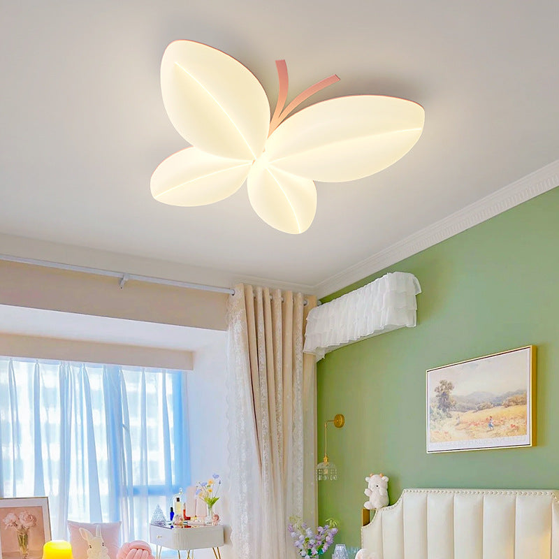 Modern Art Deco Butterfly Design Iron PE LED Flush Mount Ceiling Light For Bedroom