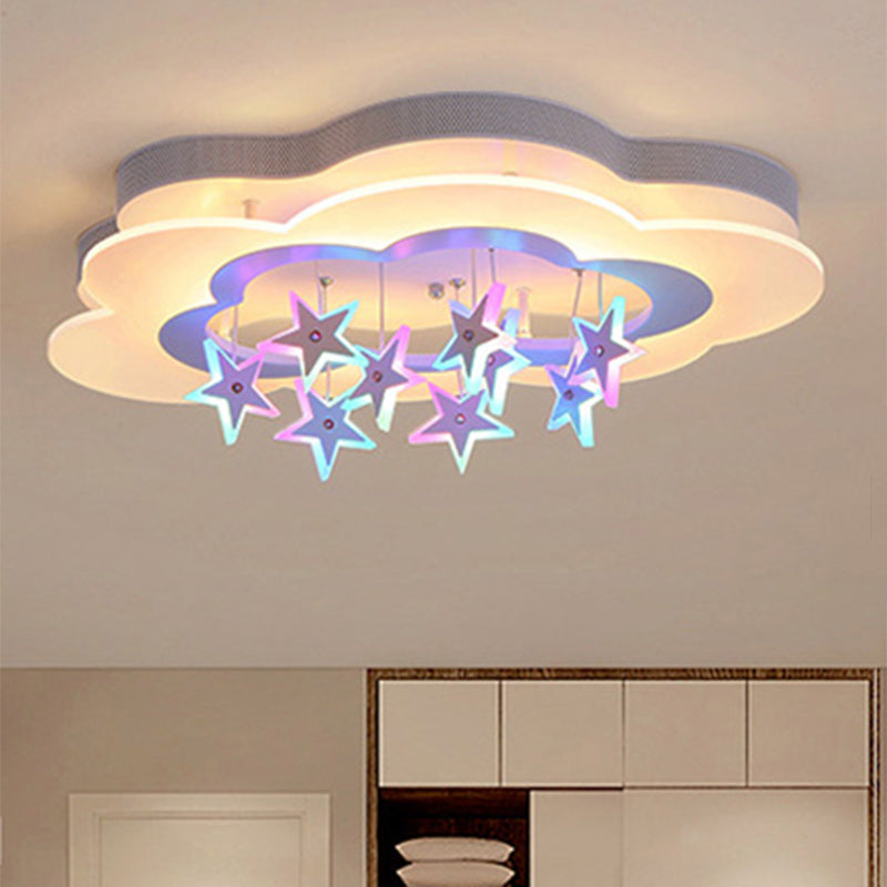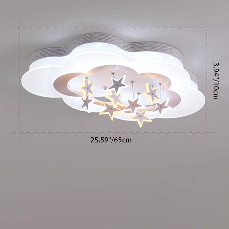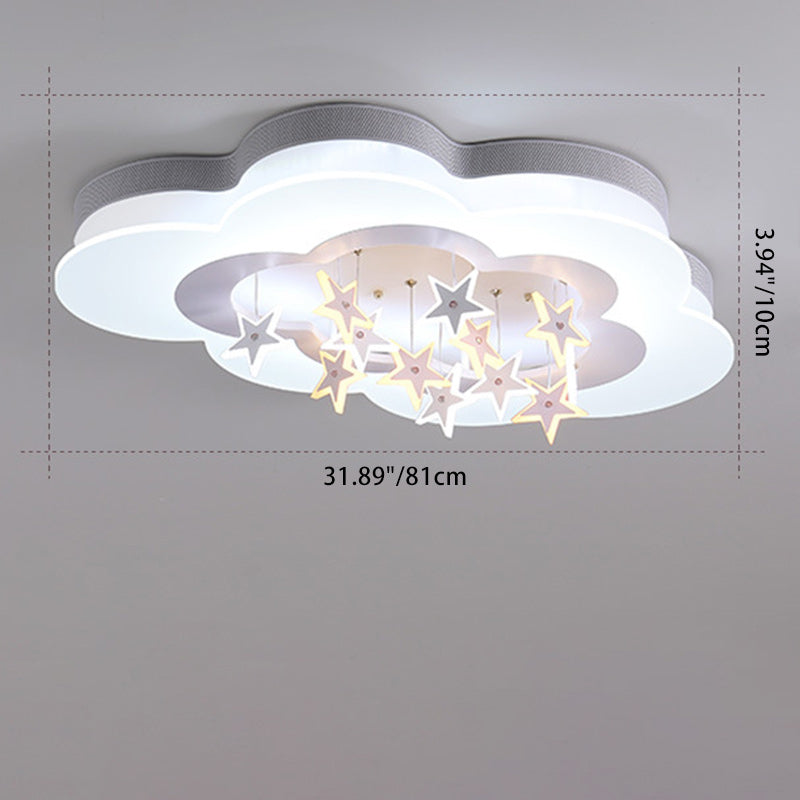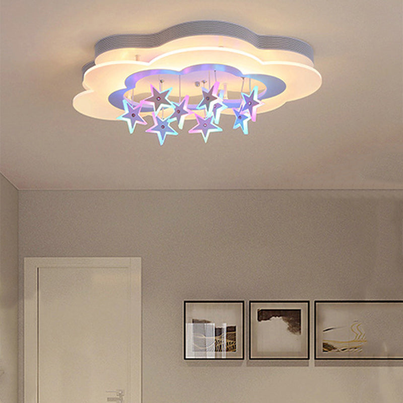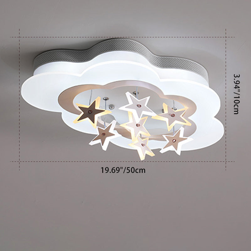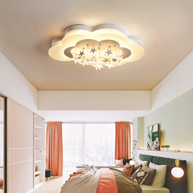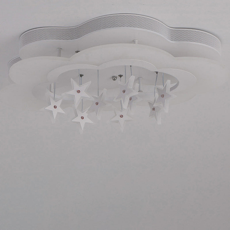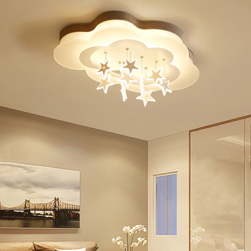 Modern Art Deco Cloud Shape Star Iron Acrylic LED Flush Mount Ceiling Light For Bedroom