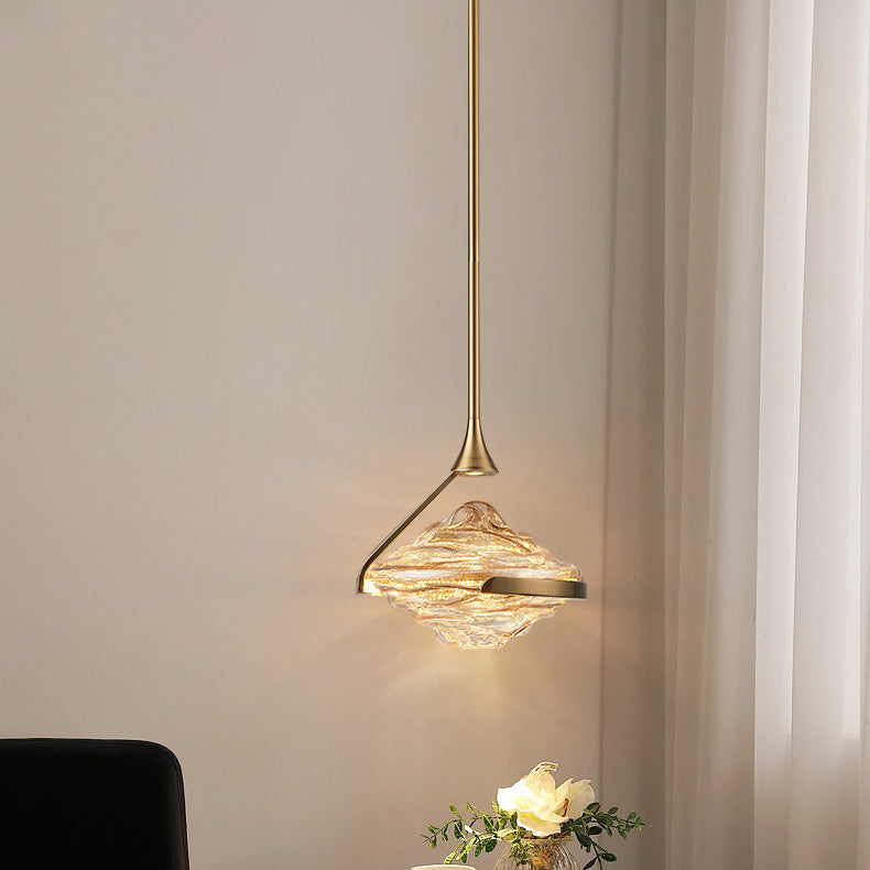 Modern Art Deco Diamond-Shaped Glass Iron LED Pendant Light For Bedroom