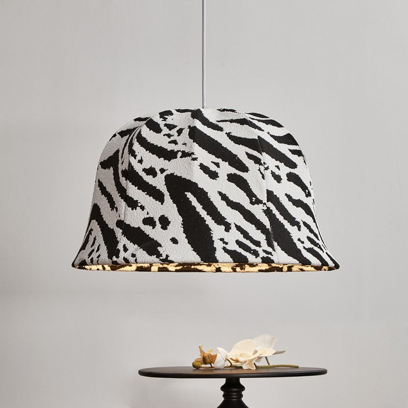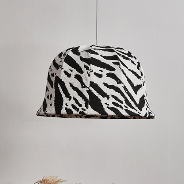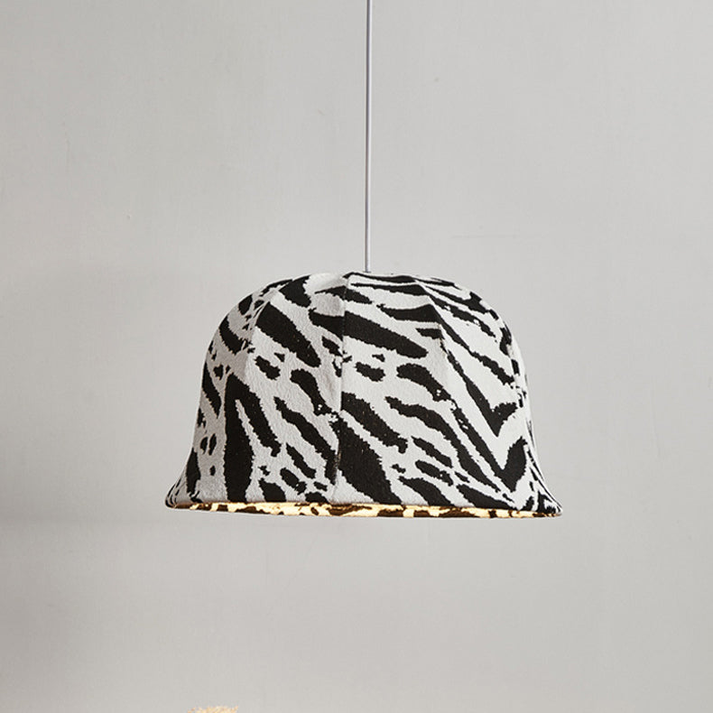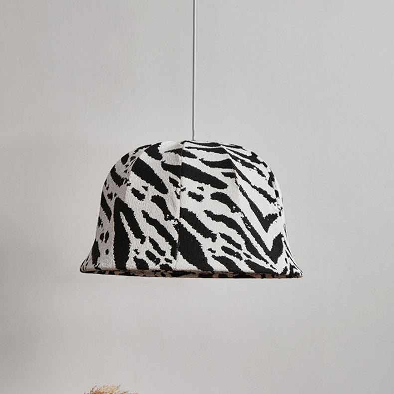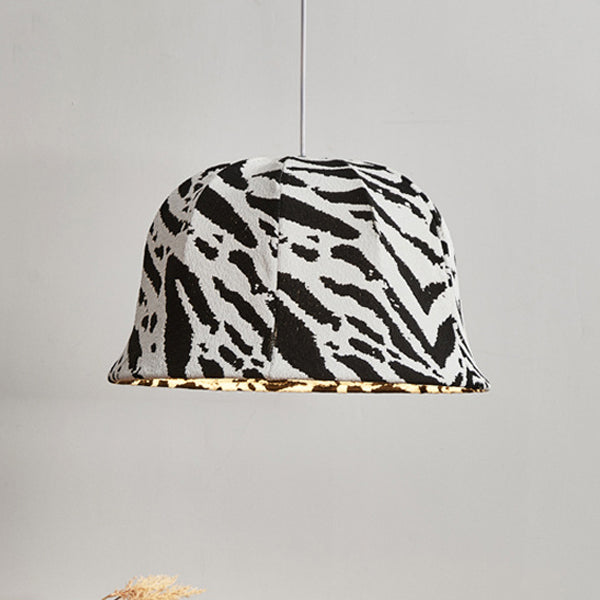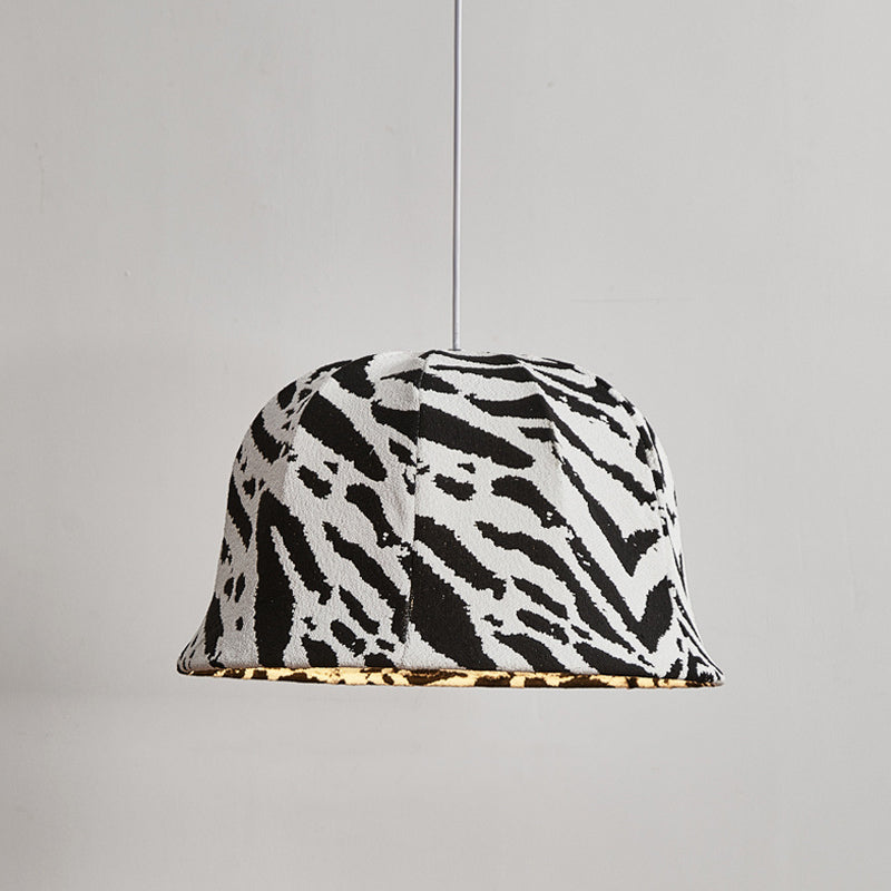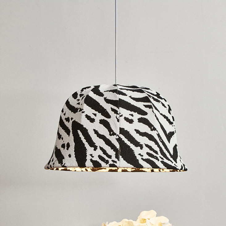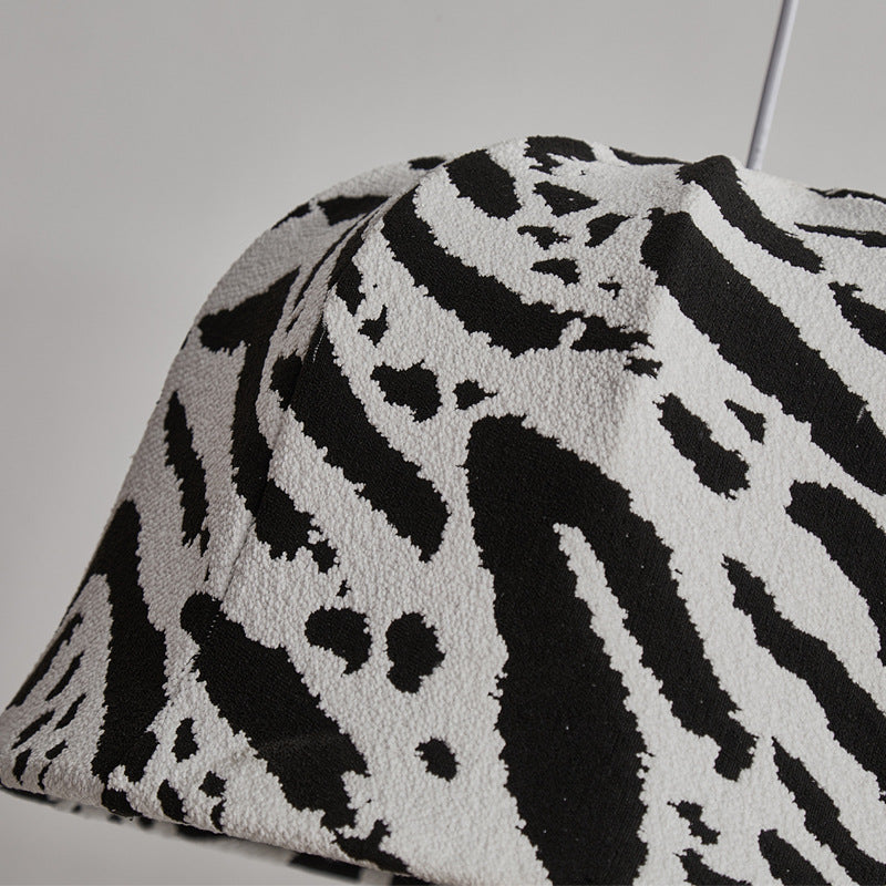 This modern decorative pendant light features a bold black-and-white zebra dome design, handcrafted with fabric and iron. The adjustable hanging cord makes it perfect for bedrooms or living rooms seeking a touch of artistic flair and originality.