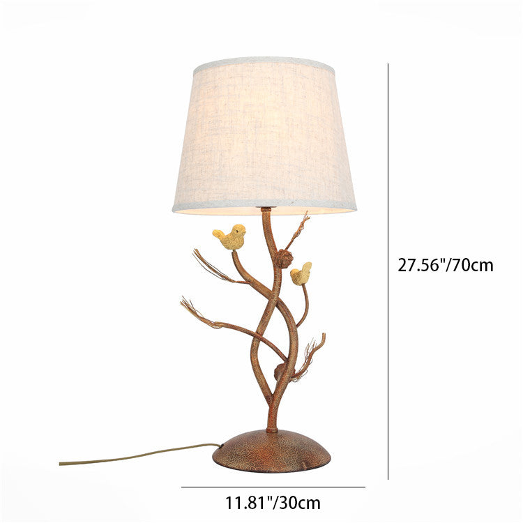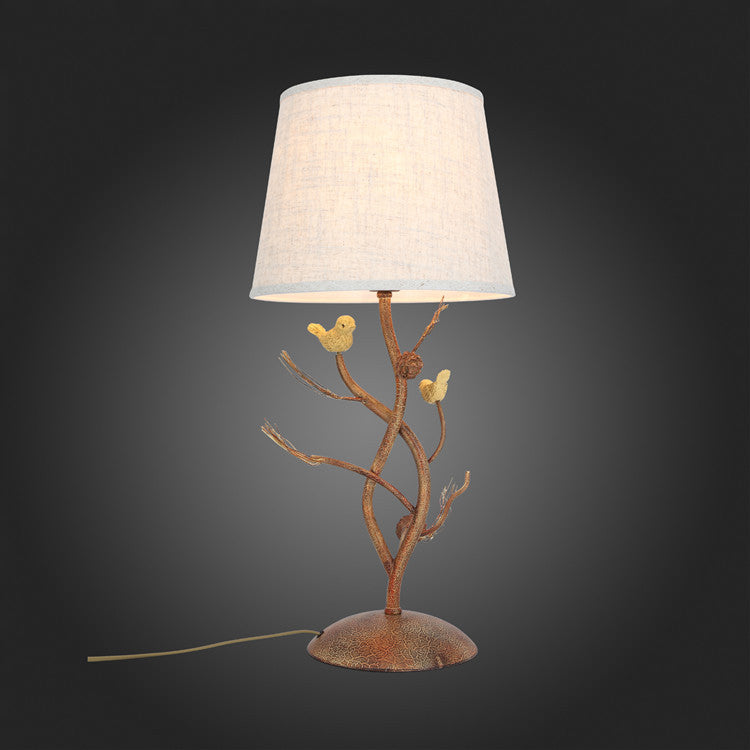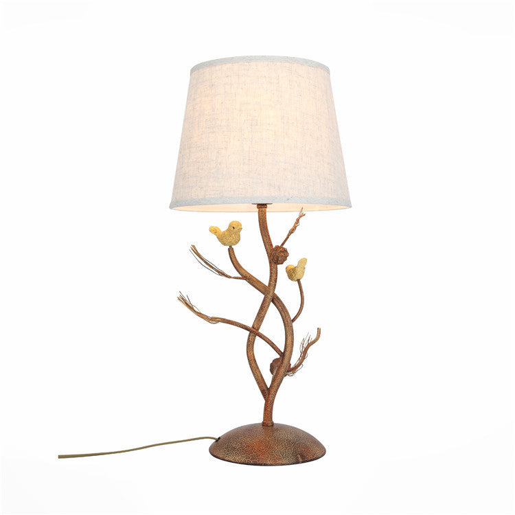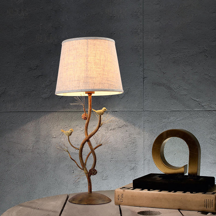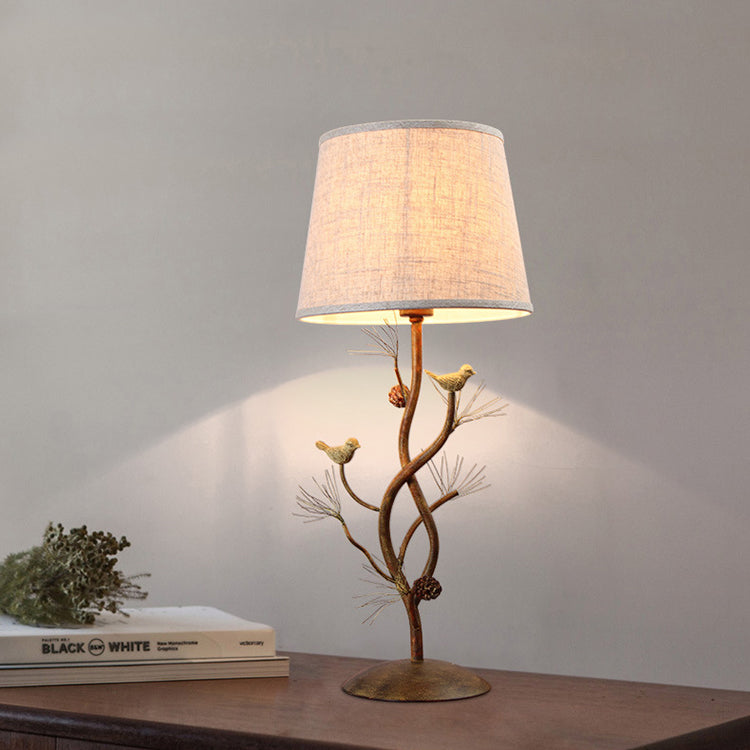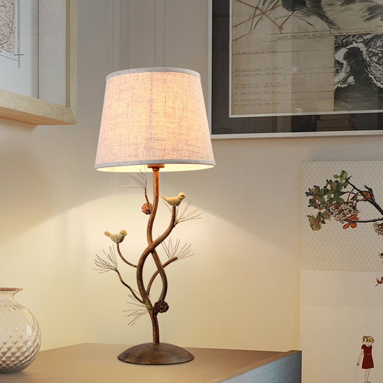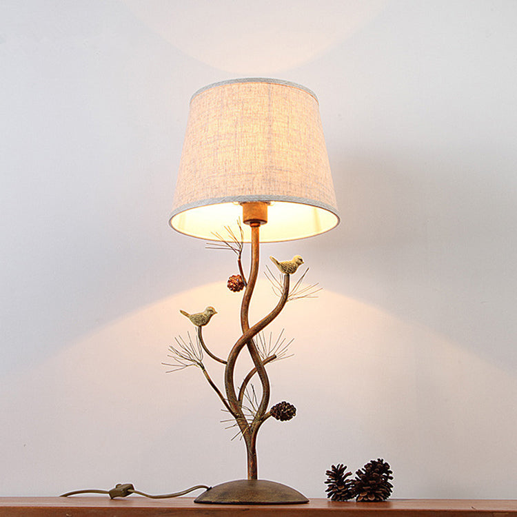 Modern Art Deco Fabric Shade Pinecone Bird Iron Base 1-Light Table Lamp For Bedroom