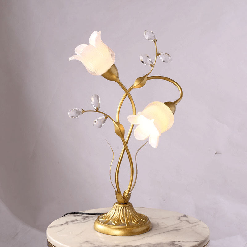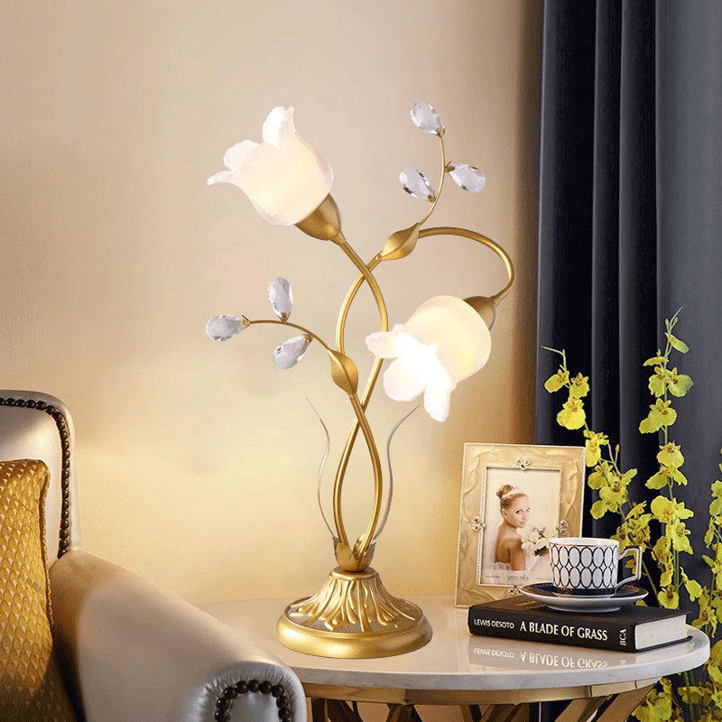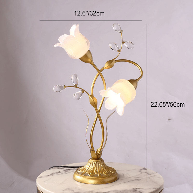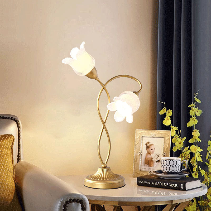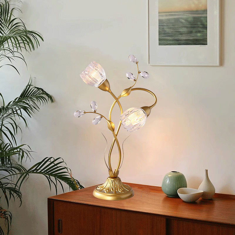 Modern Art Deco Floral Iron Glass 2-Light Table Lamp For Living Room