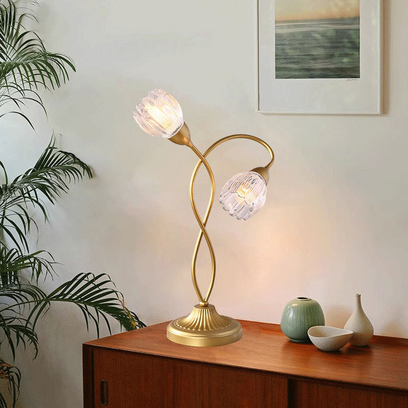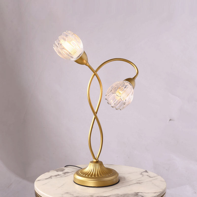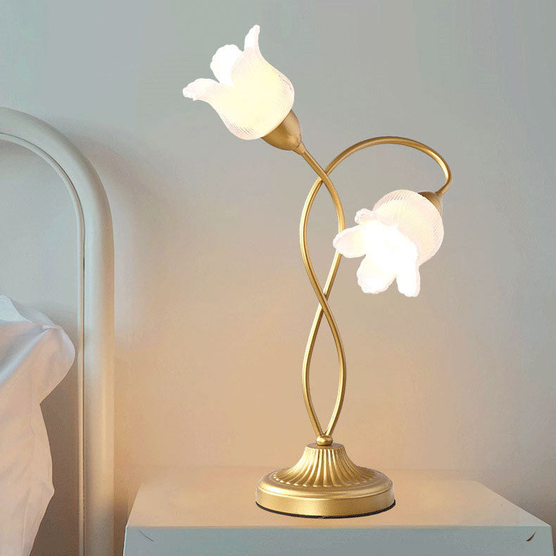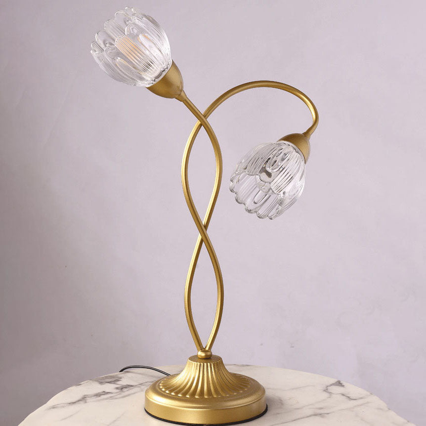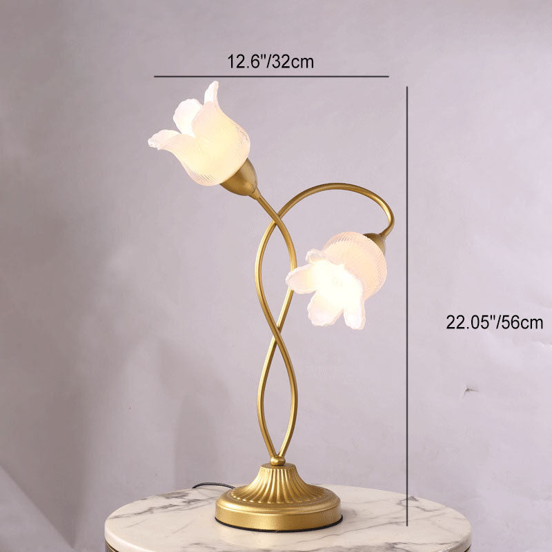 Modern Art Deco Floral Iron Glass 2-Light Table Lamp For Living Room