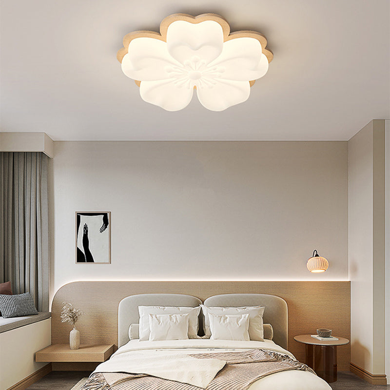 Modern Art Deco Floral Shape PE Solid Wood LED Flush Mount Ceiling Light For Living Room