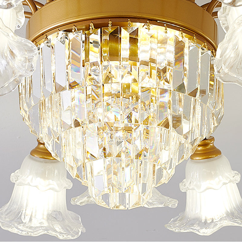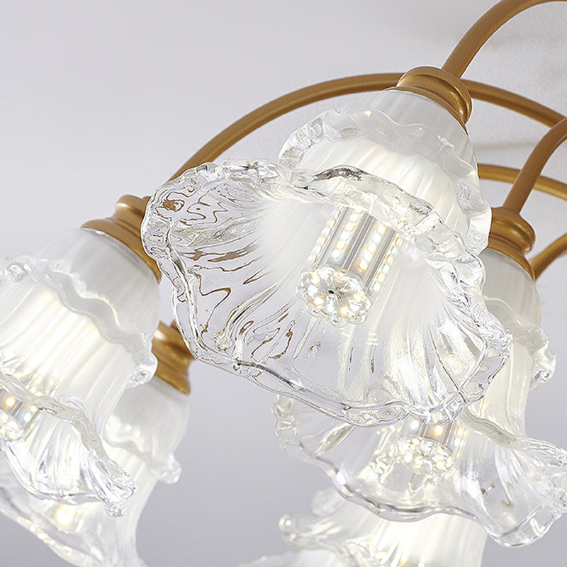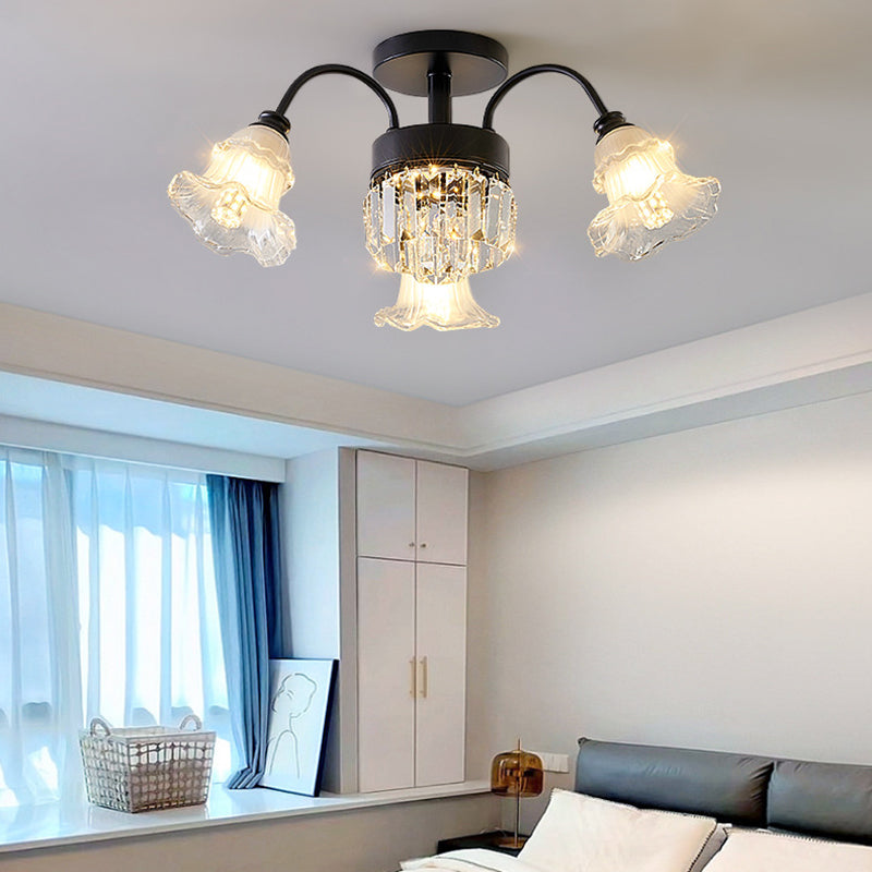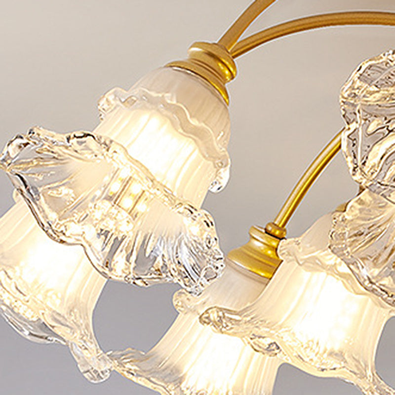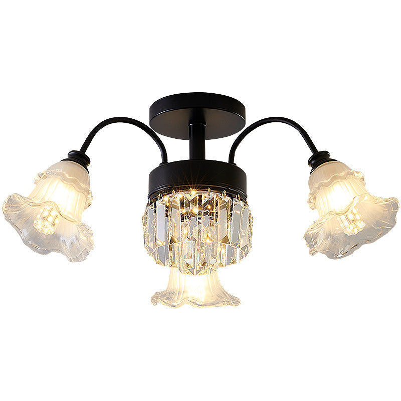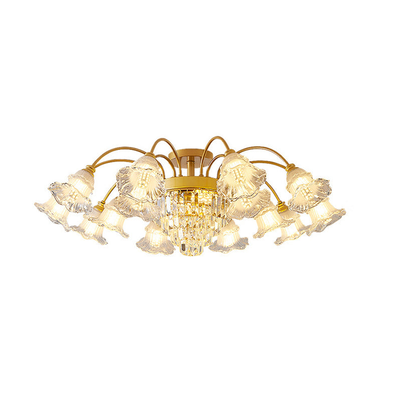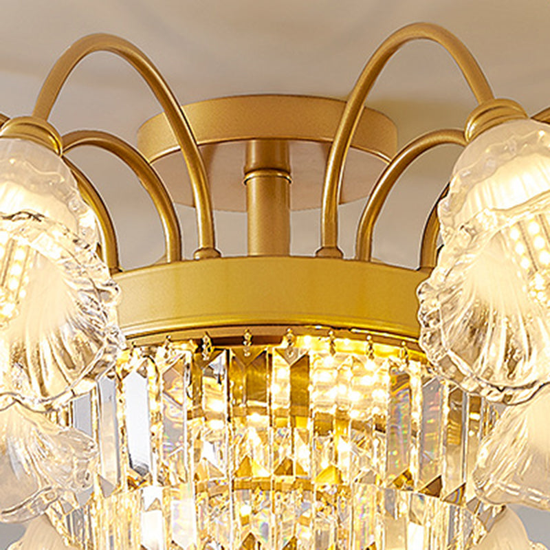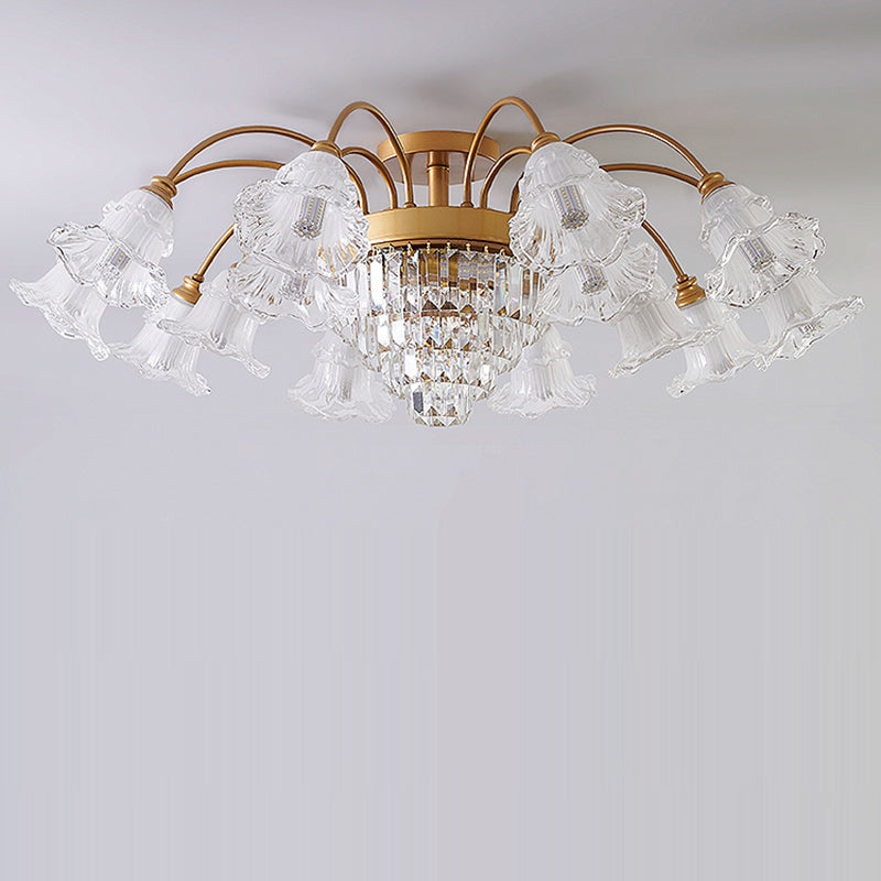 Modern Art Deco Flower Round Branch Crystal Glass Iron 3/6/8/10/12/15 Light Semi-Flush Mount Ceiling Light For Living Room