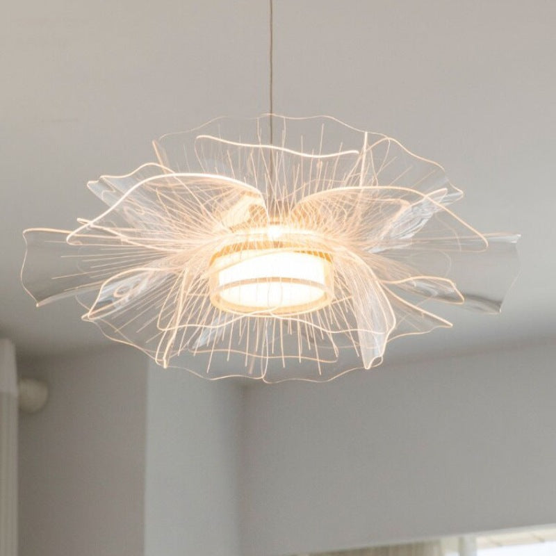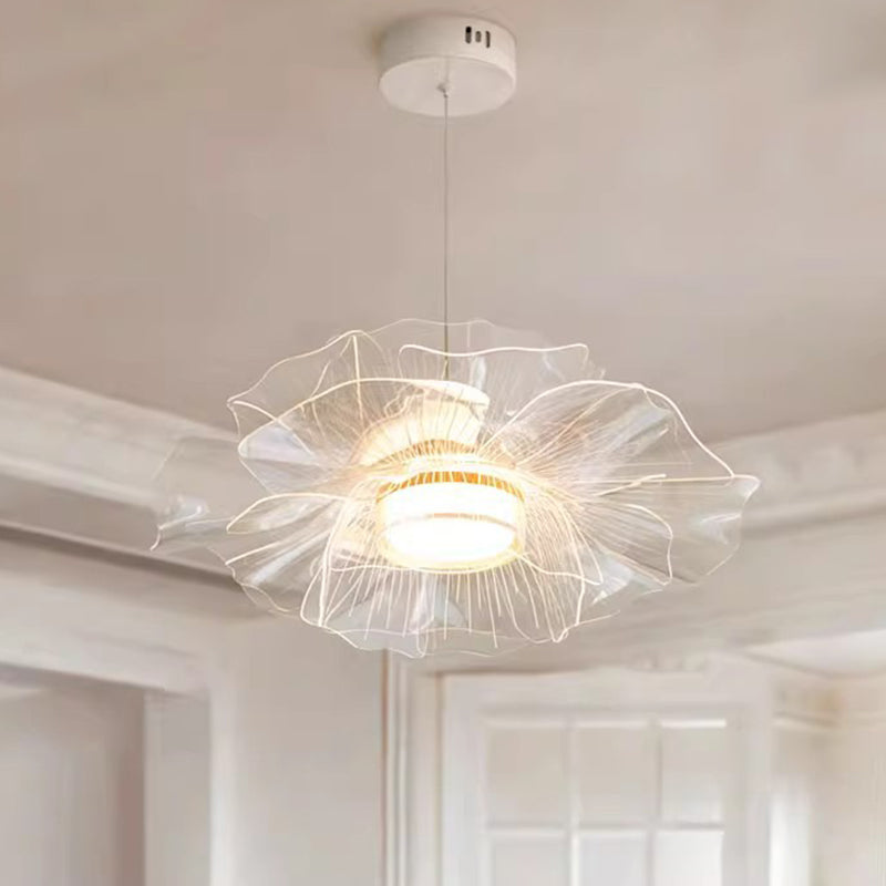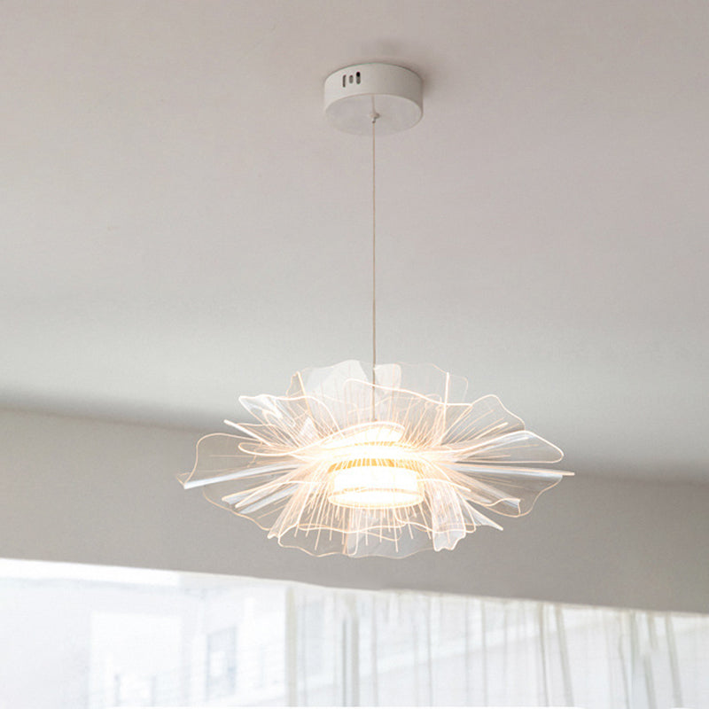 Modern Art Deco Flower Shape Carbon Steel Acrylic LED Pendant Light For Living Room