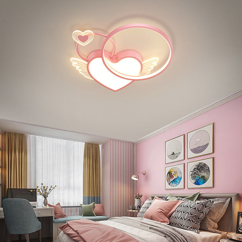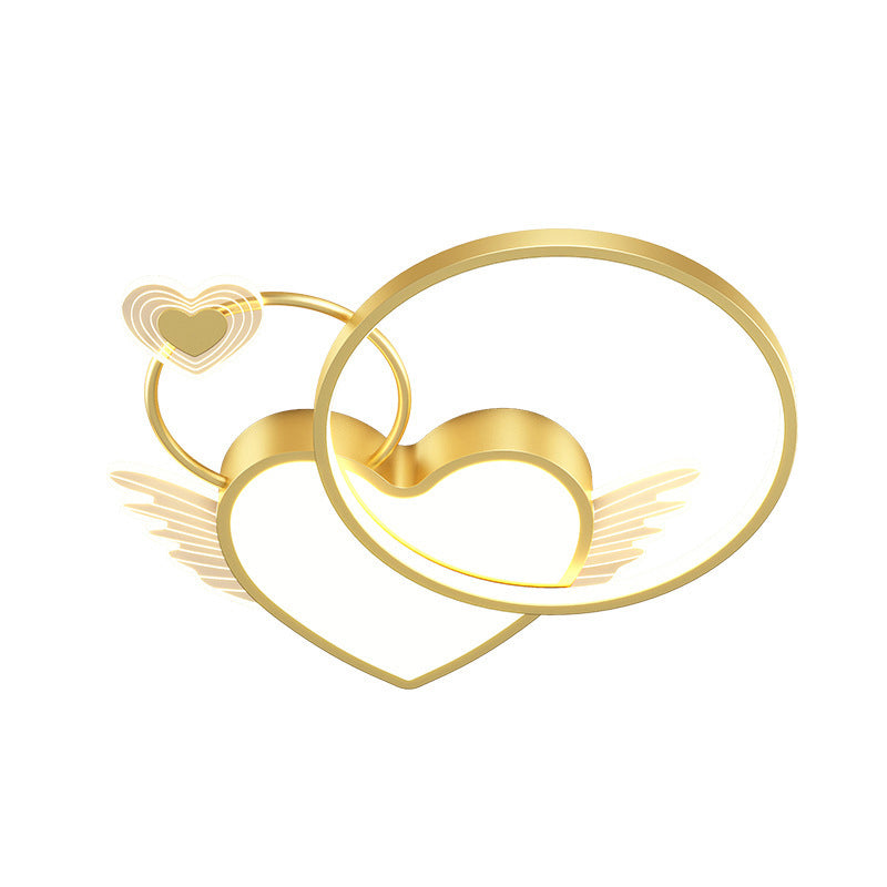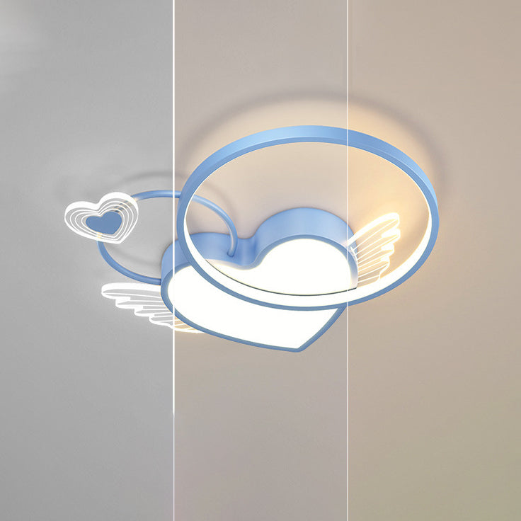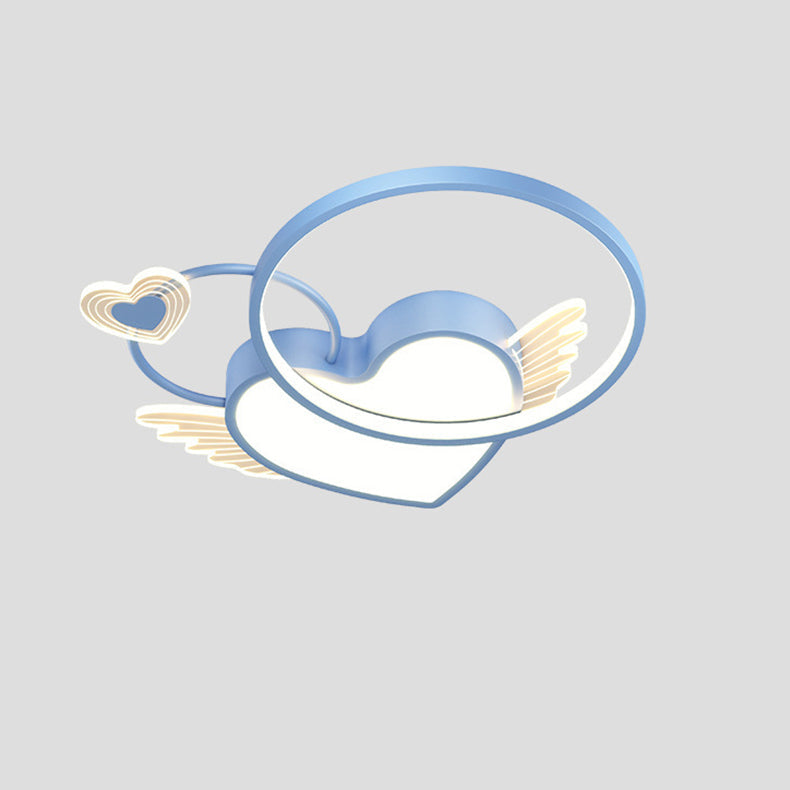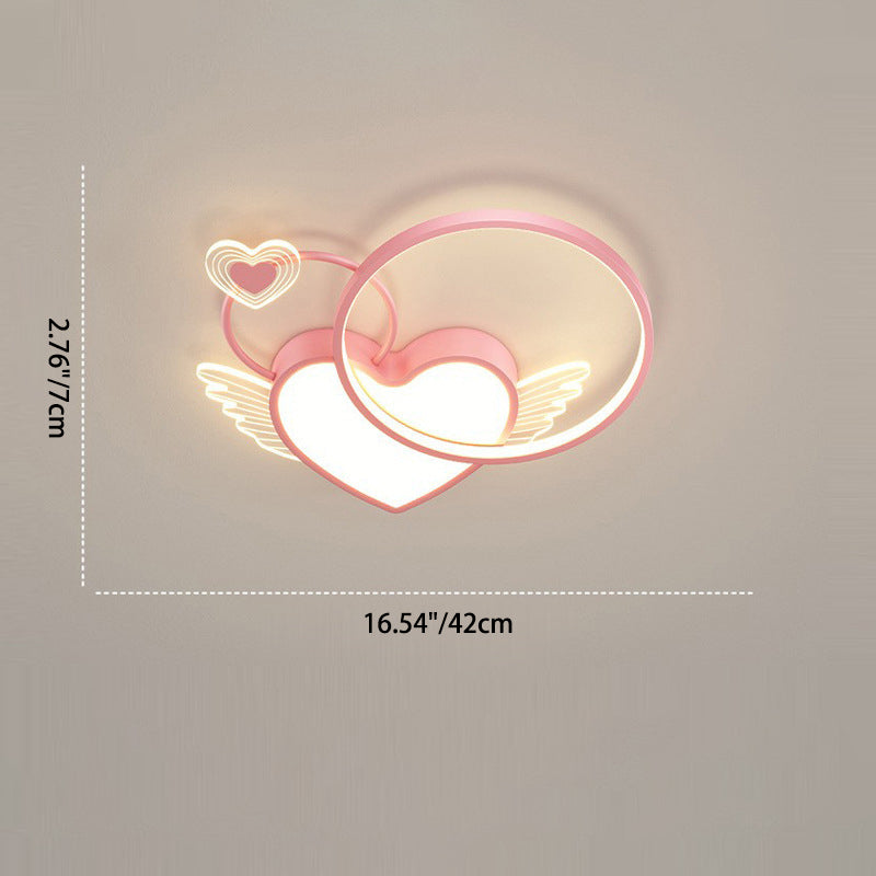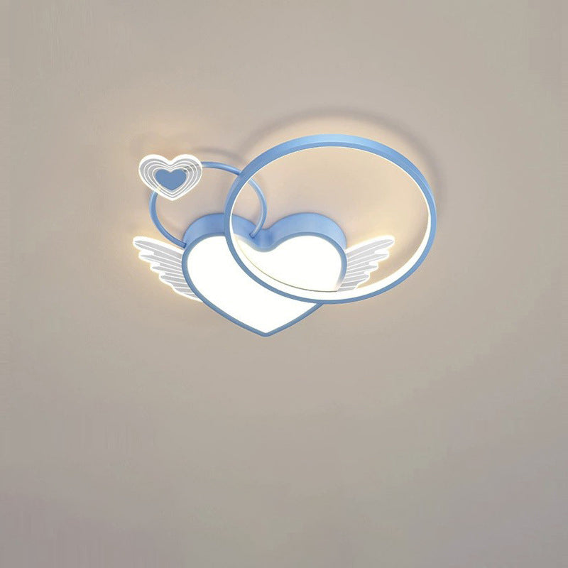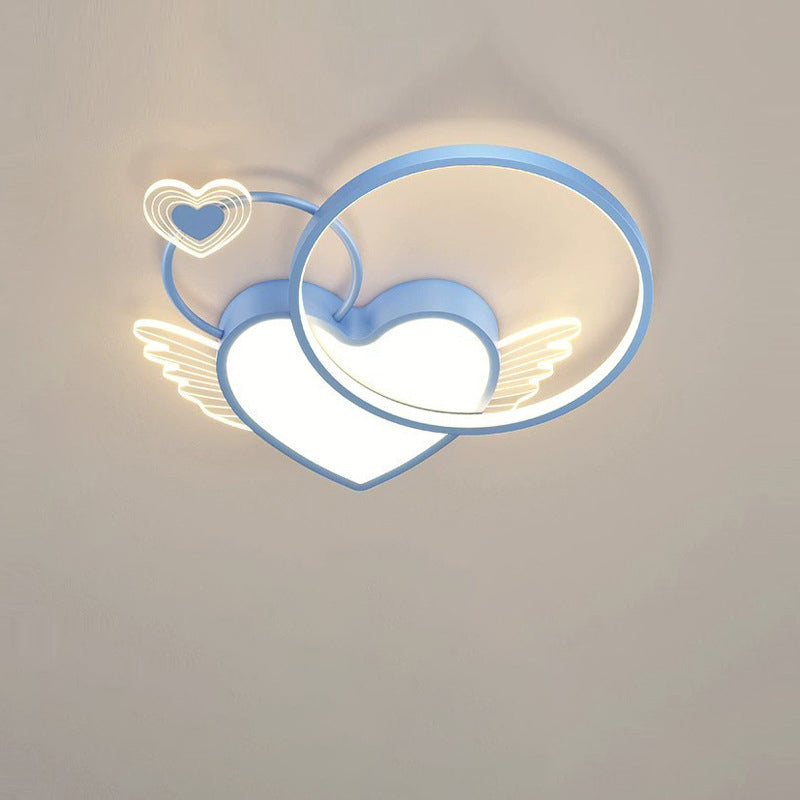 Modern Art Deco Heart Wings Round Acrylic Iron LED Flush Mount Ceiling Light For Bedroom