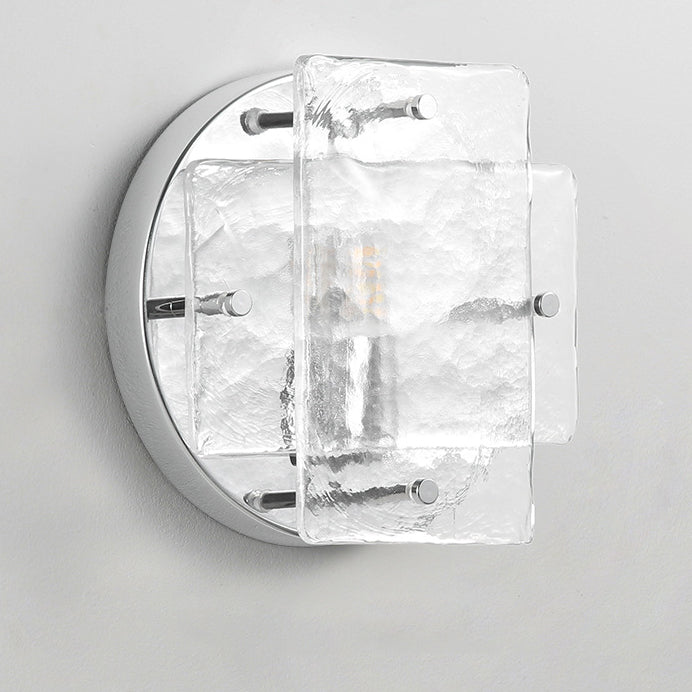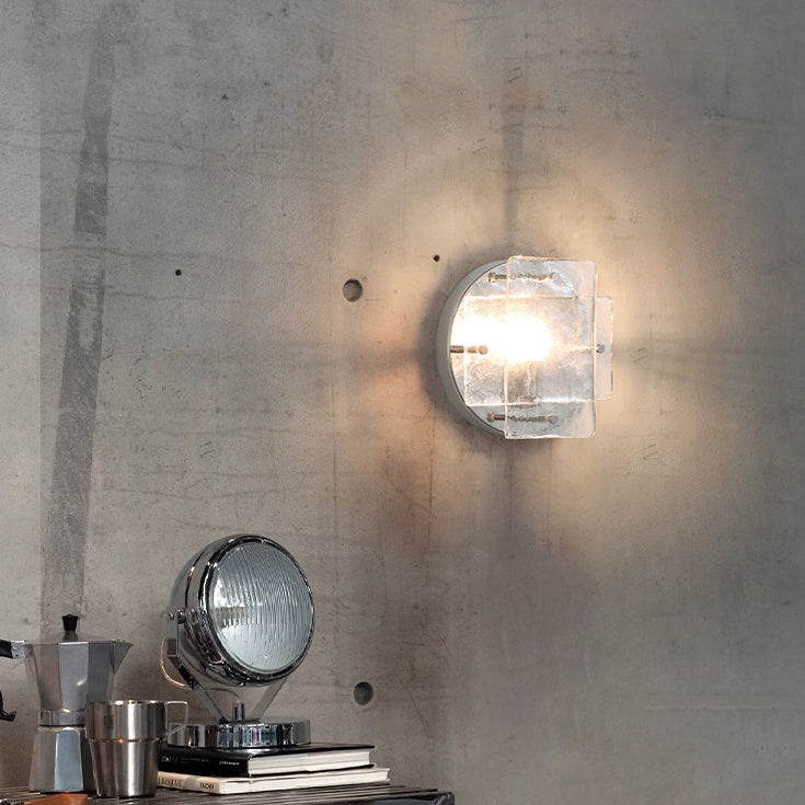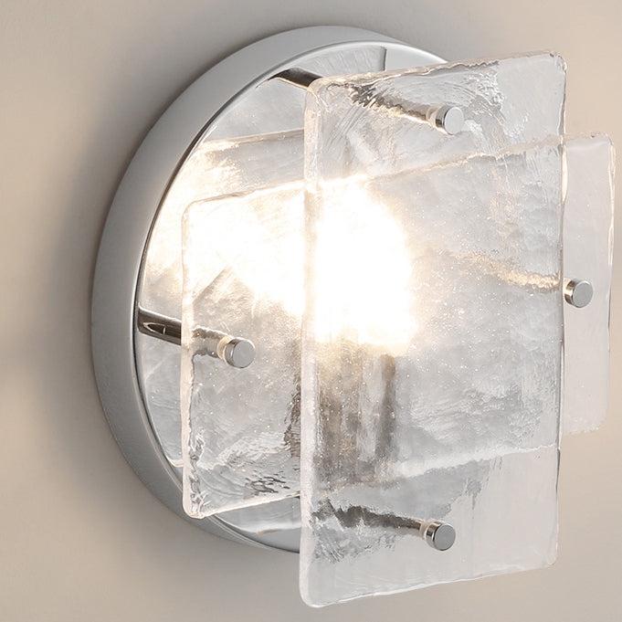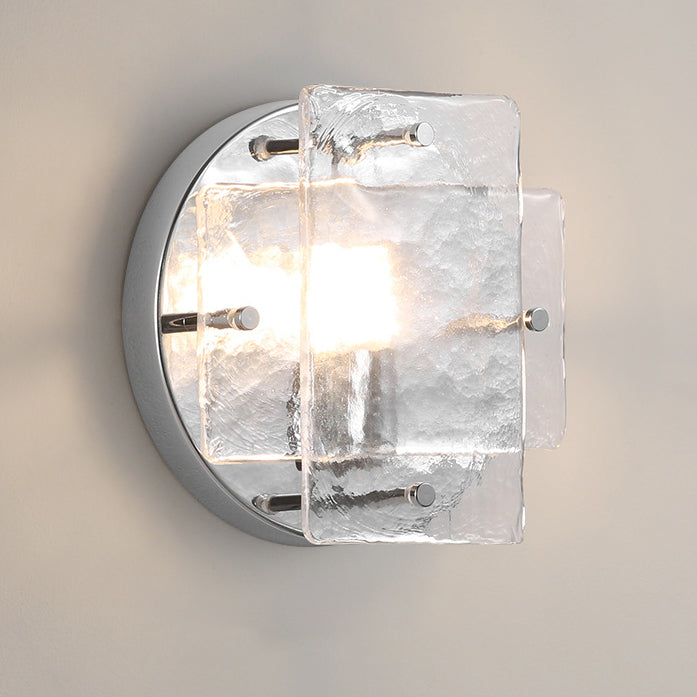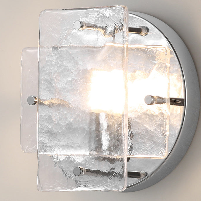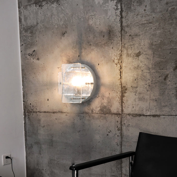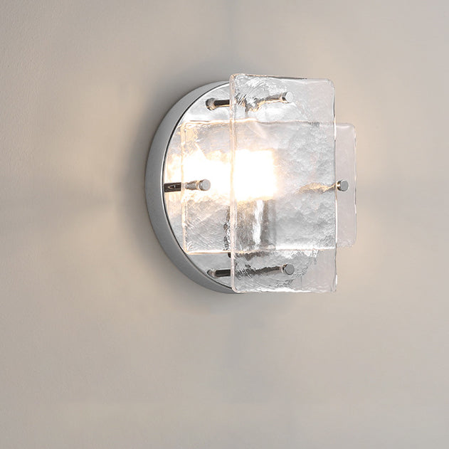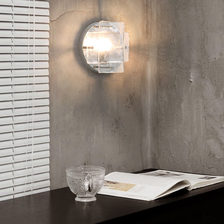 Modern Art Deco Ice Round Metal Glass 1-Light Wall Sconce Lamp For Bedroom