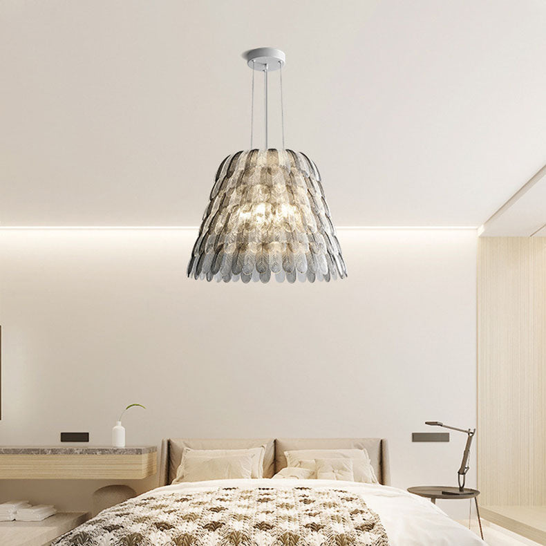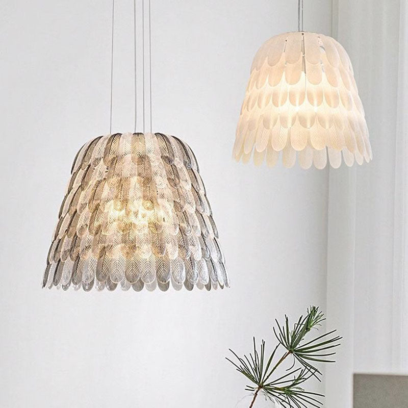 Modern Art Deco Imitation Feather Tiered Acrylic Shade 1/5-Light Pendant Light For Bedroom