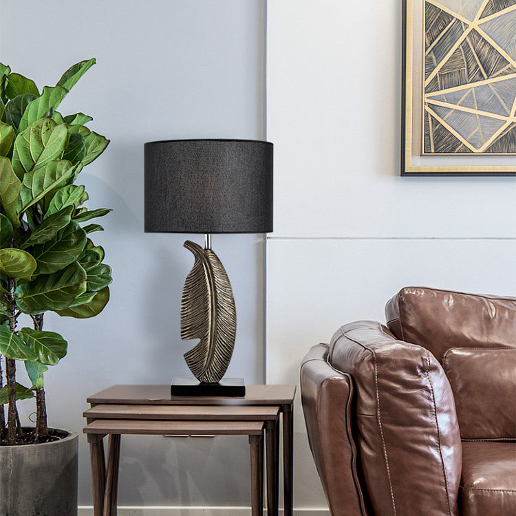 Modern Art Deco Leaf Resin Fabric Iron 1-Light Table Lamp For Living Room