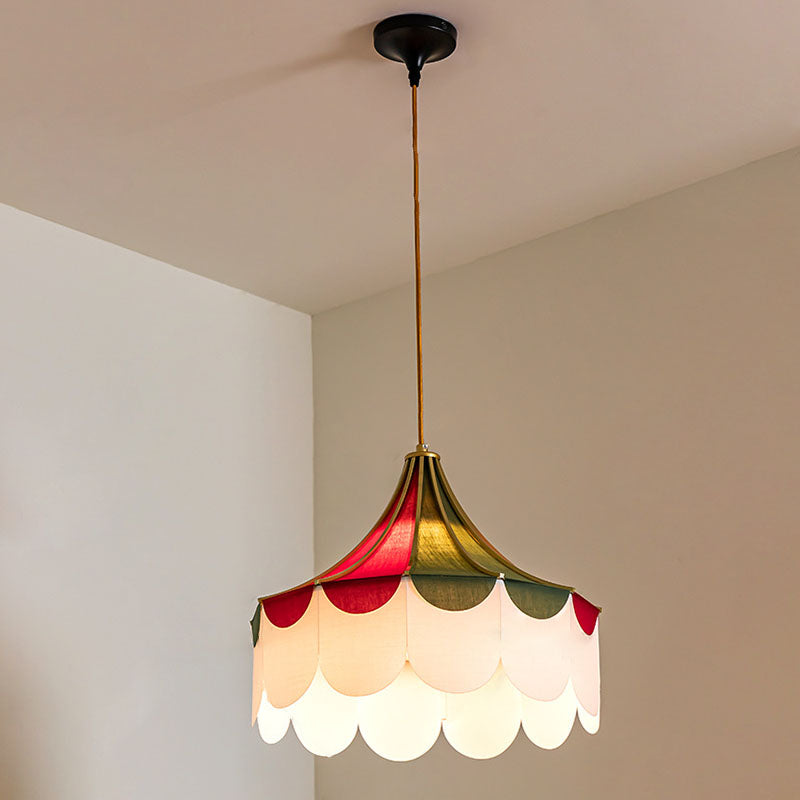 Modern Art Deco Metal Fabric Round 1-Light Pendant Light For Bedroom
