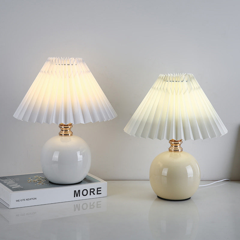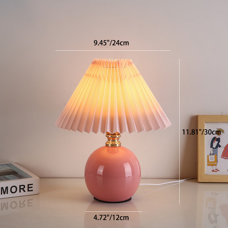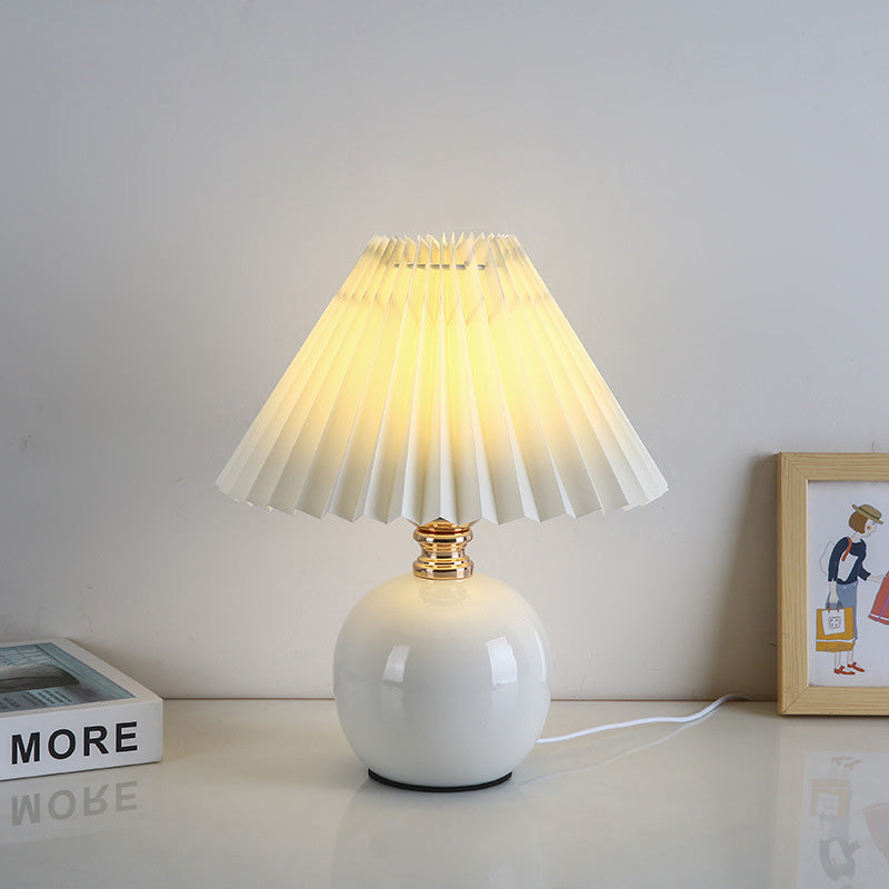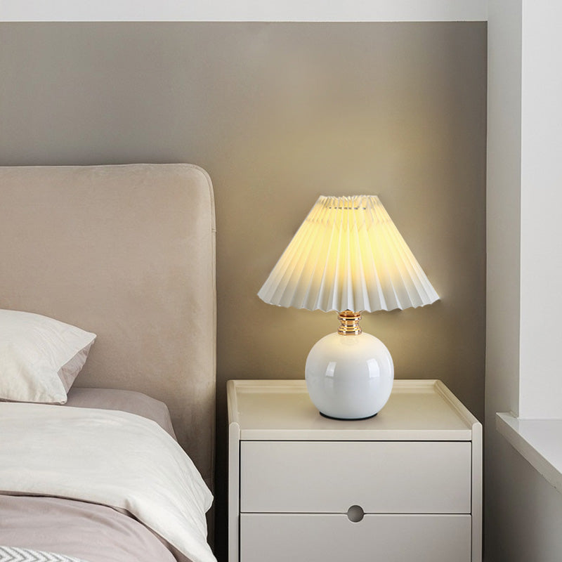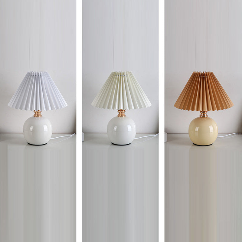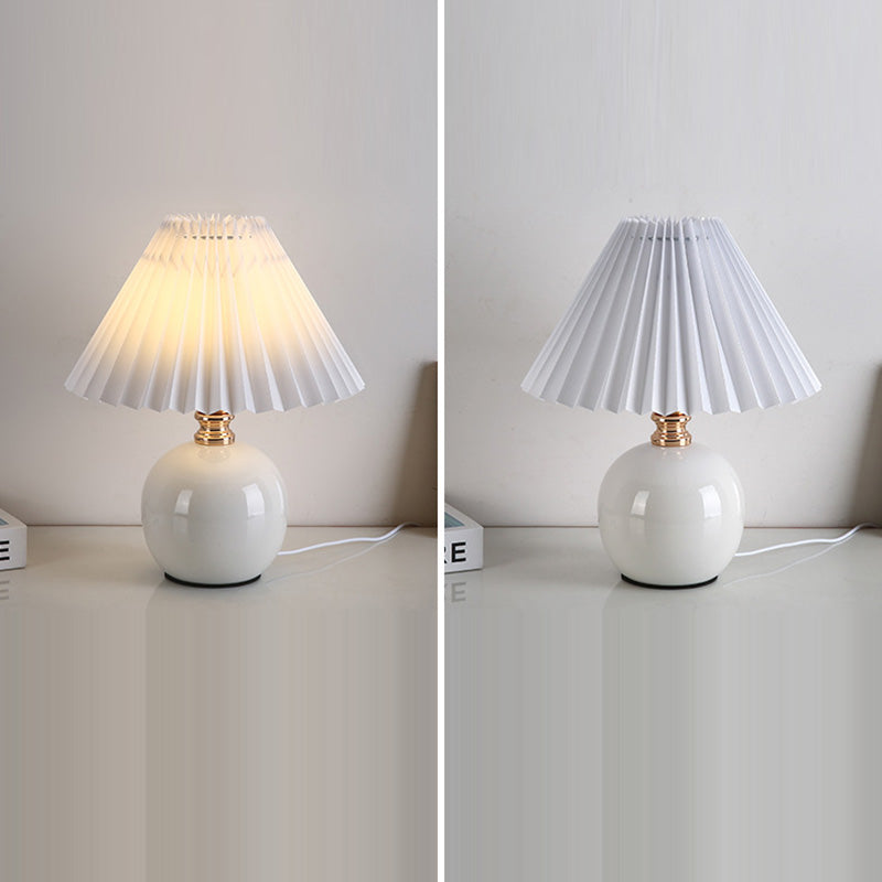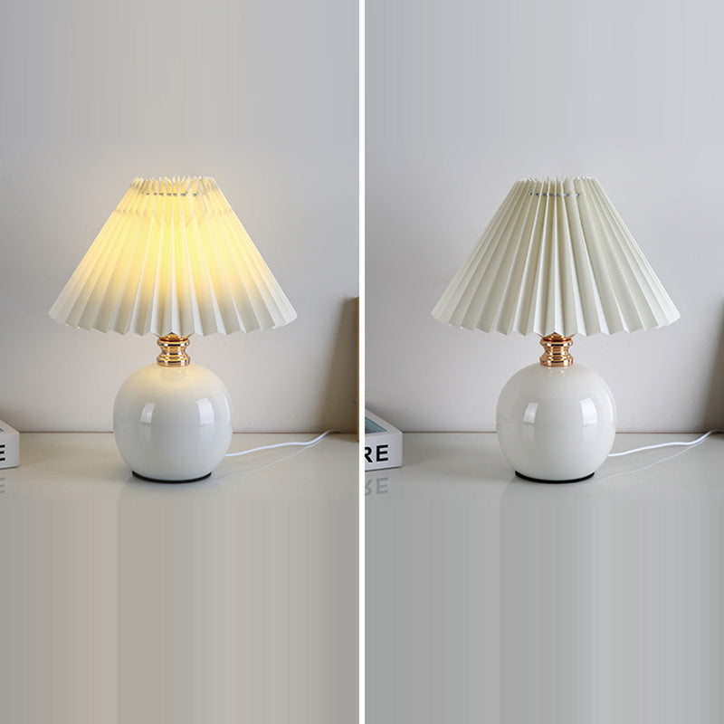 Modern Art Deco Orb Base Pleated Fabric Ceramic 1-Light Table Lamp For Bedroom