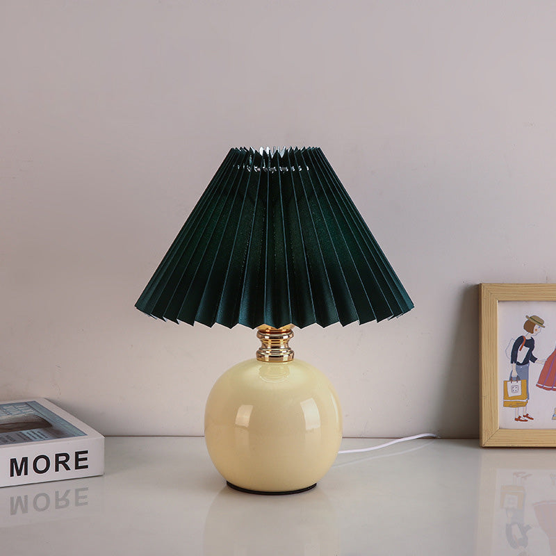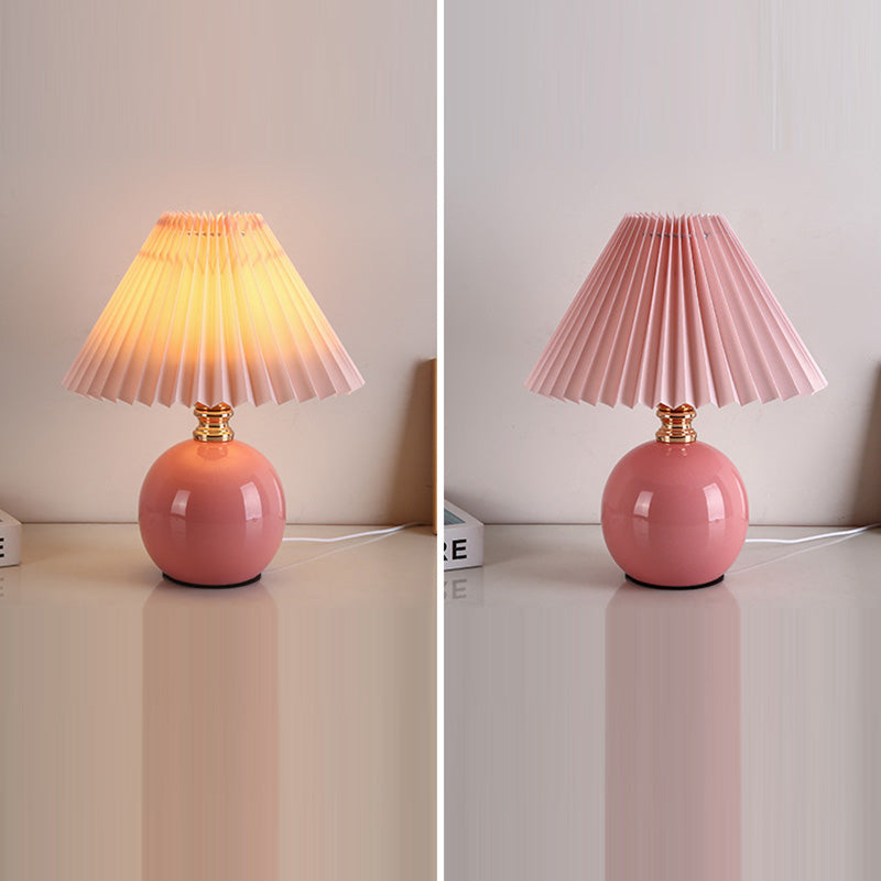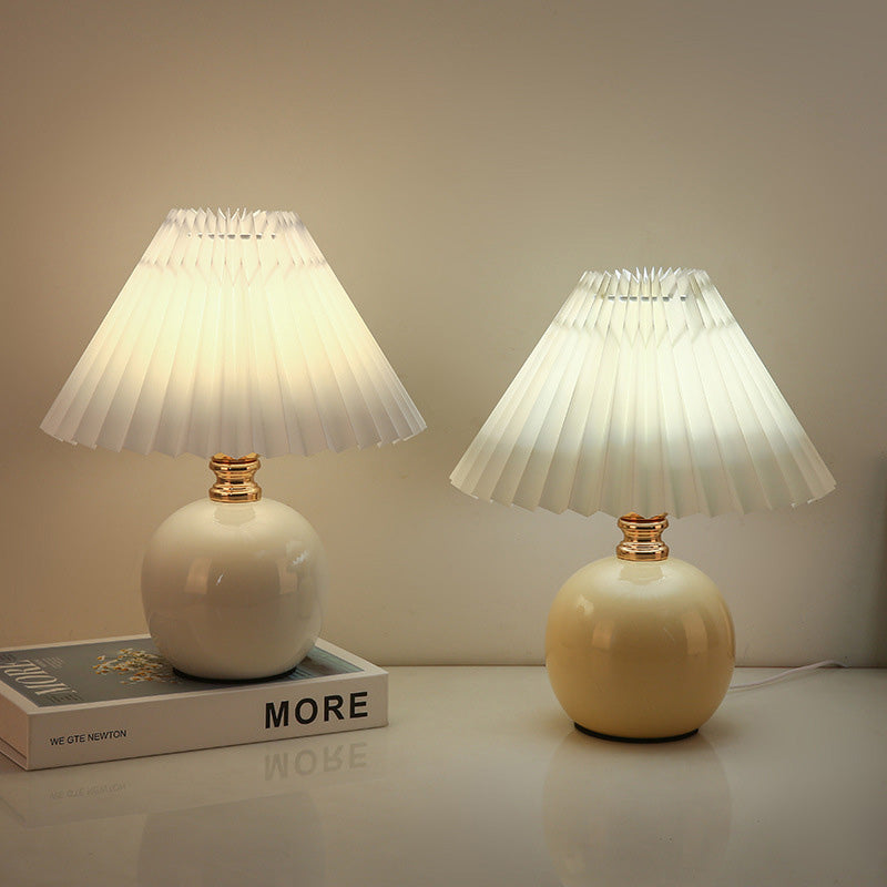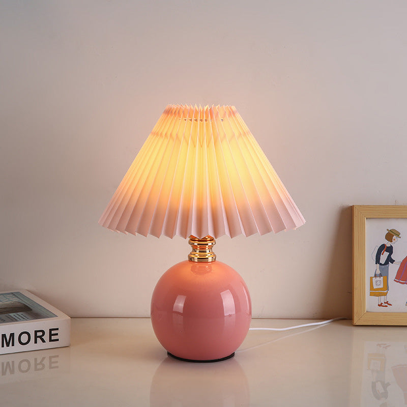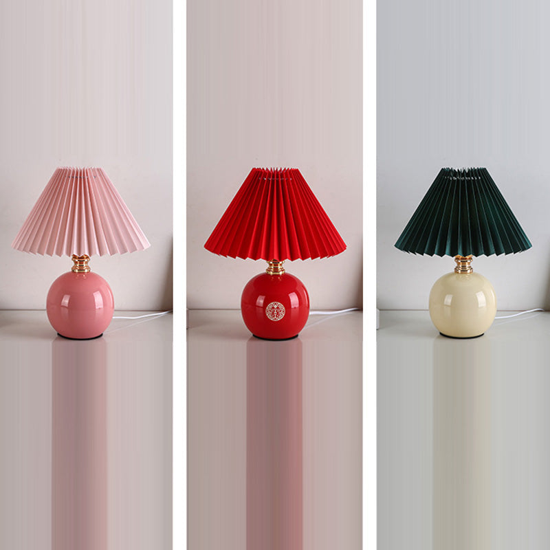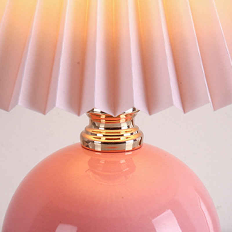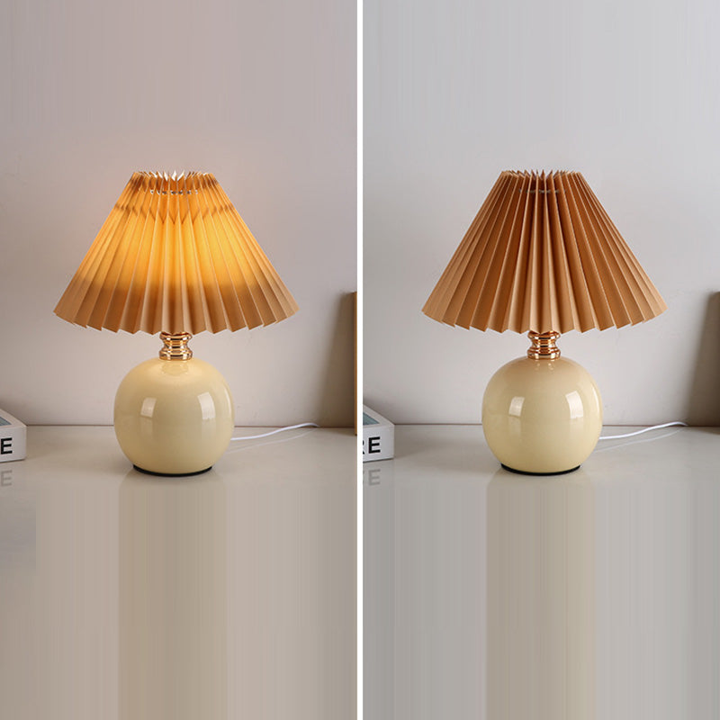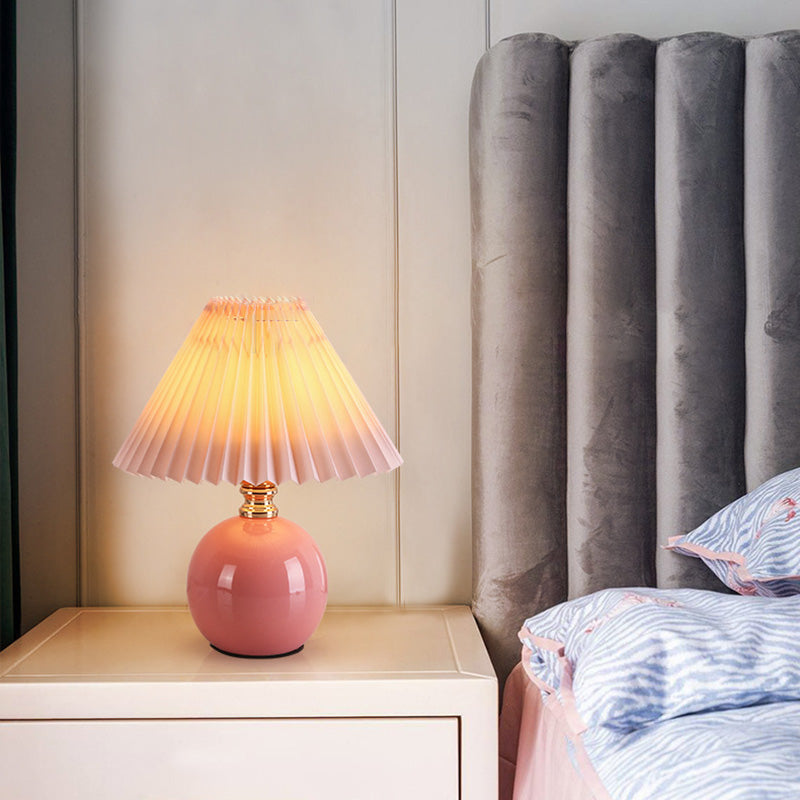 Modern Art Deco Orb Base Pleated Fabric Ceramic 1-Light Table Lamp For Bedroom