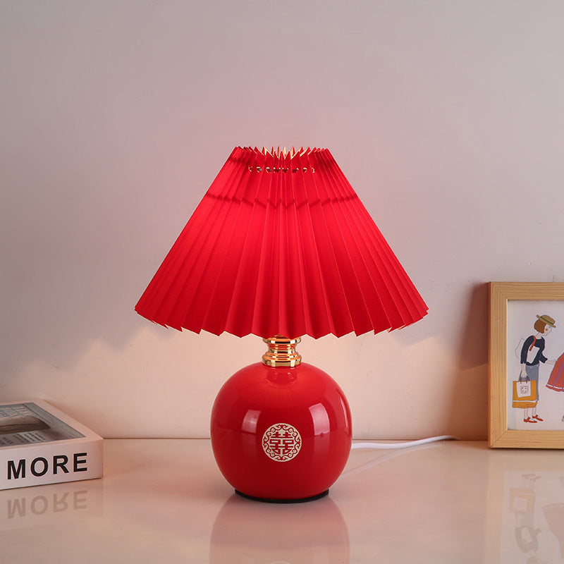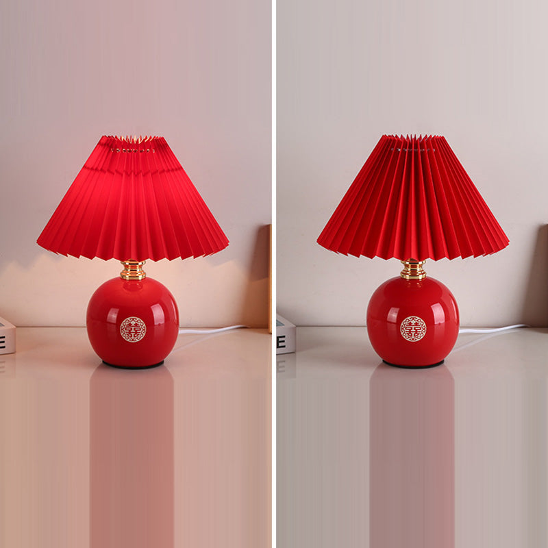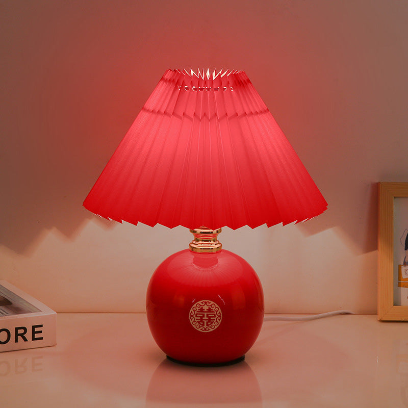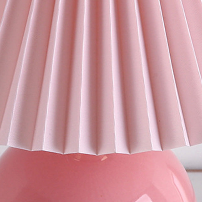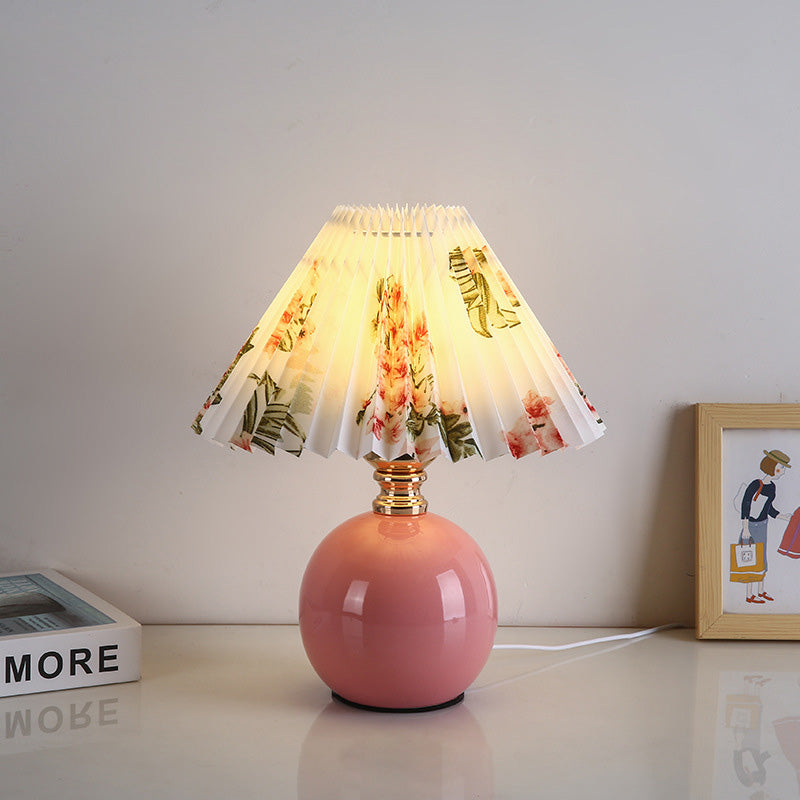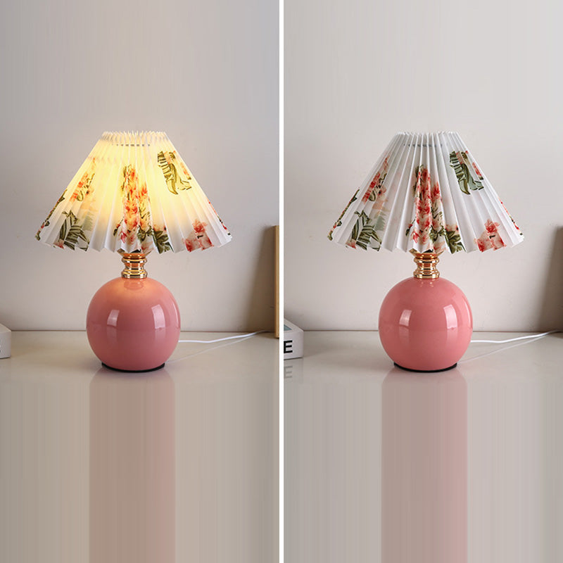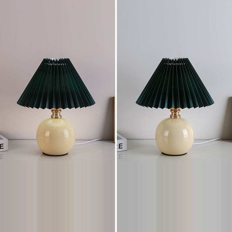 Modern Art Deco Orb Base Pleated Fabric Ceramic 1-Light Table Lamp For Bedroom