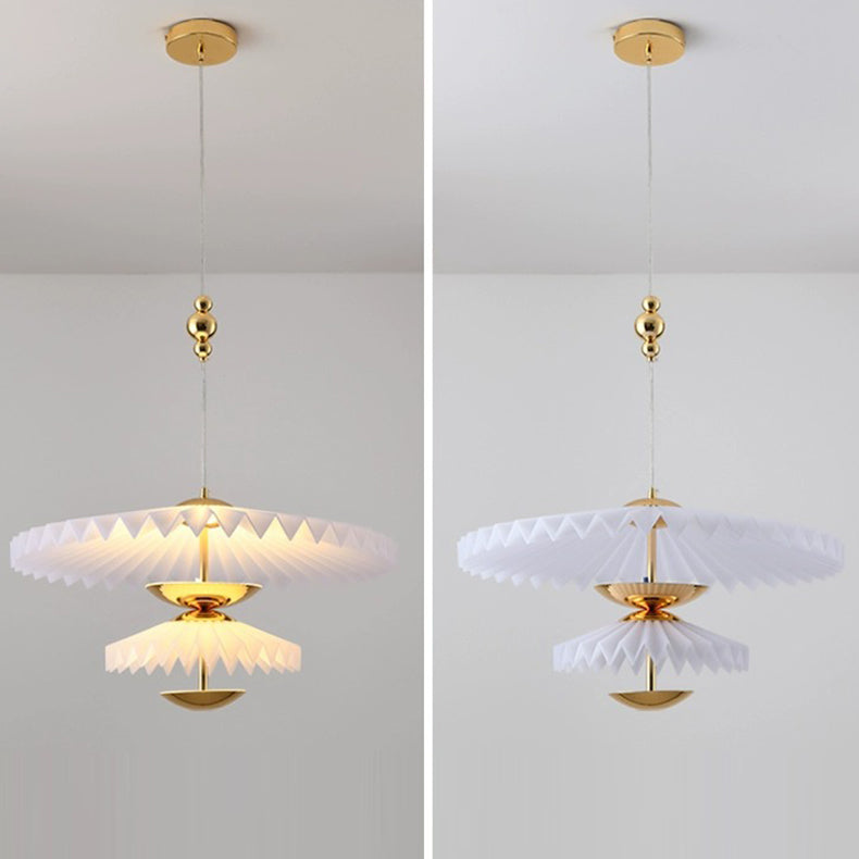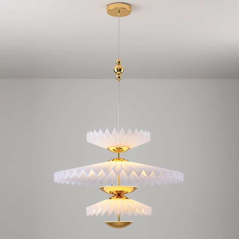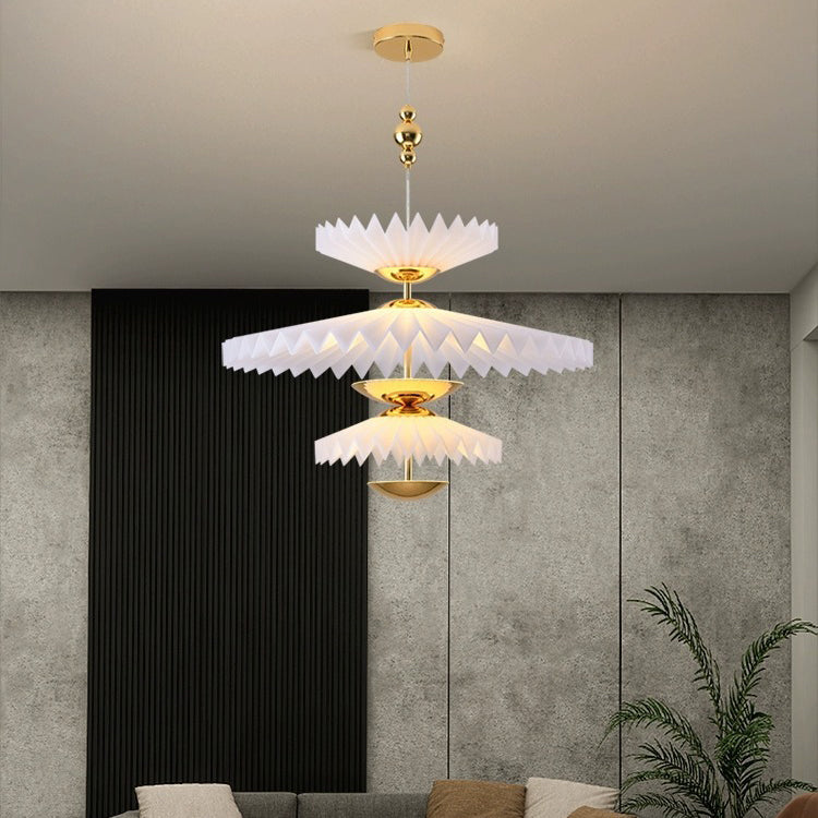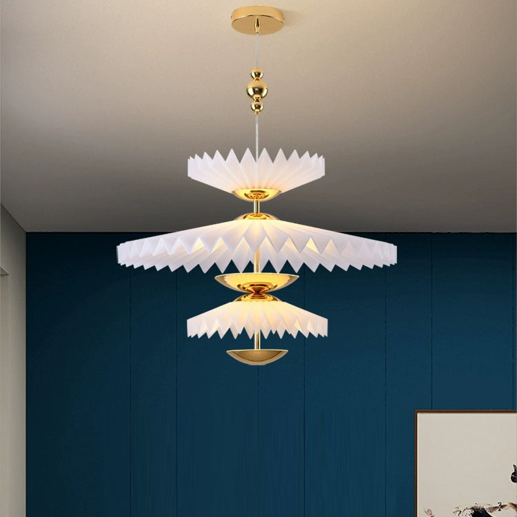 Modern Art Deco Pleated Round Acrylic Iron LED Chandelier For Living Room