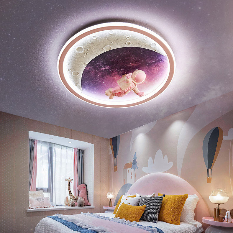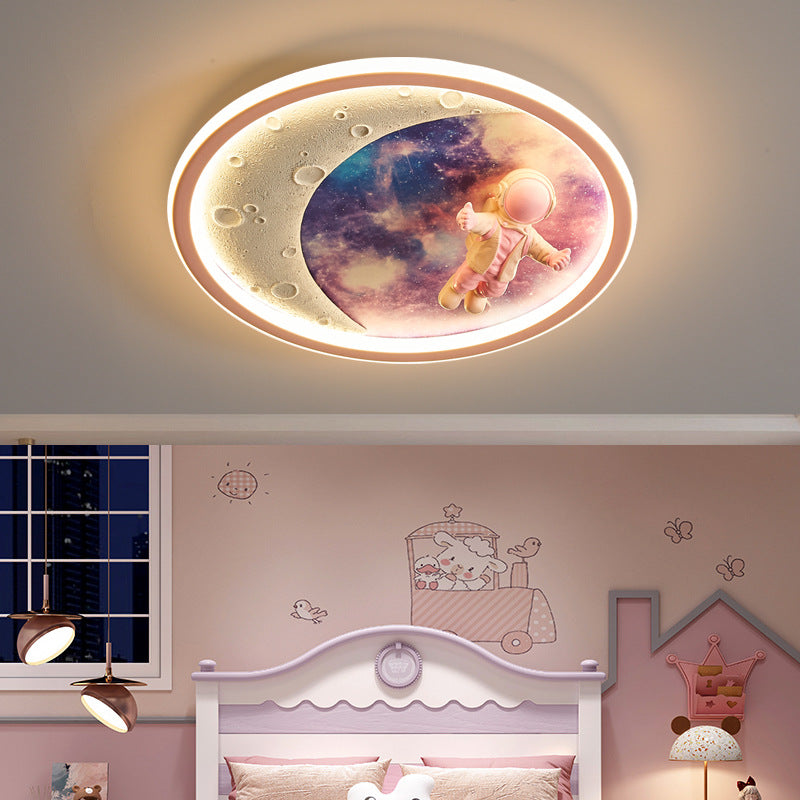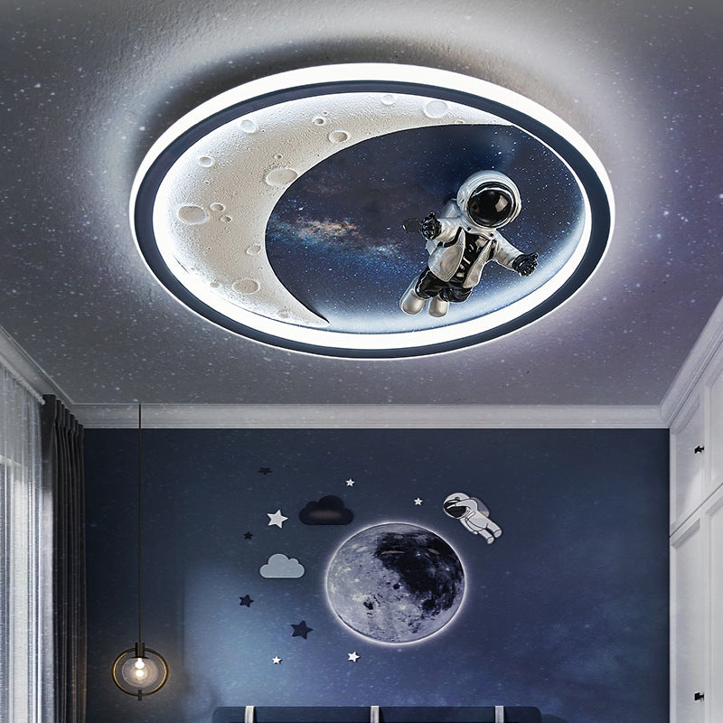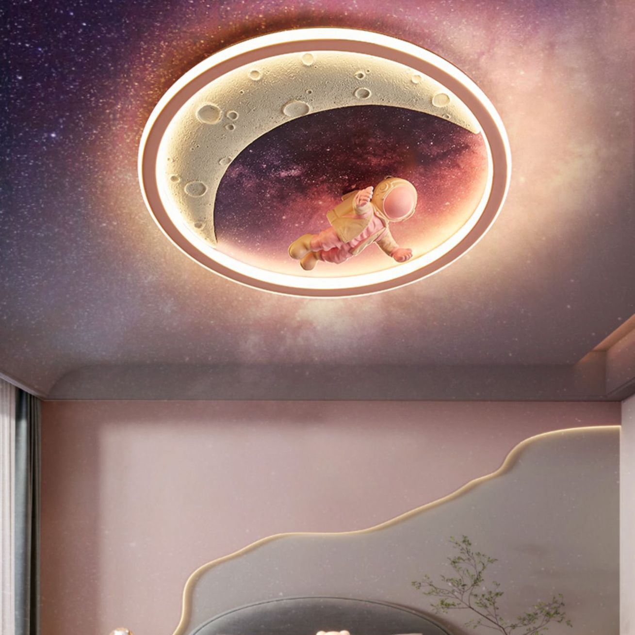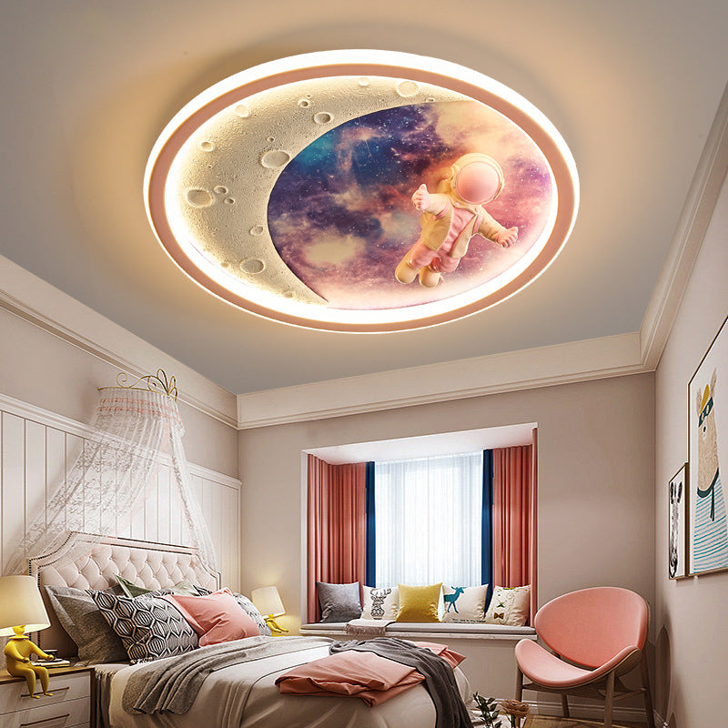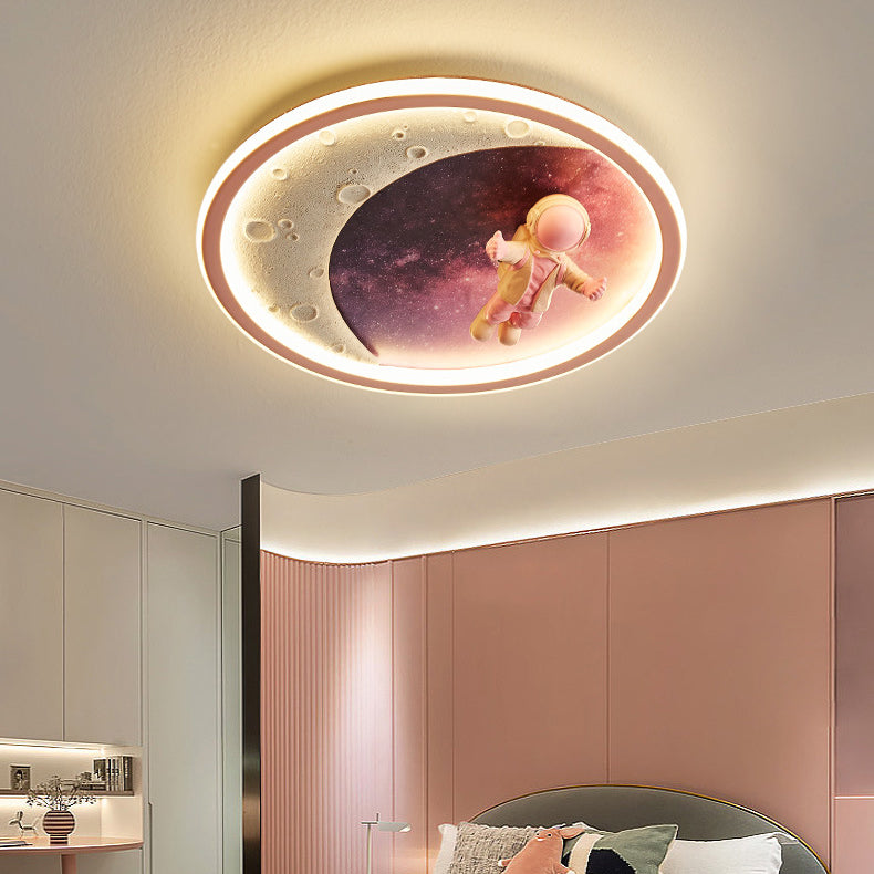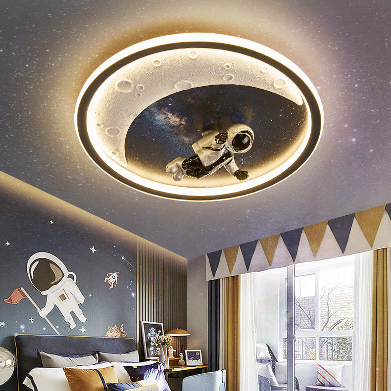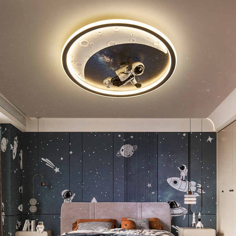 Modern Art Deco Round Astronaut Planet Acrylic Resin Iron LED Flush Mount Ceiling Light For Bedroom