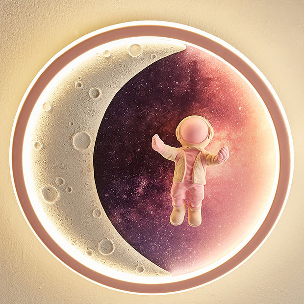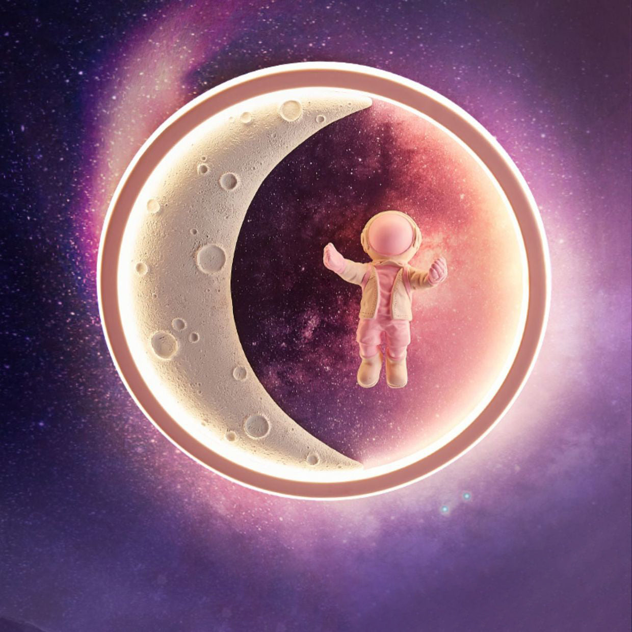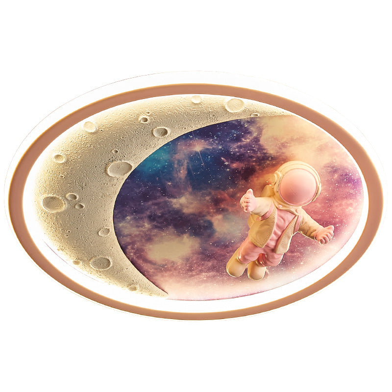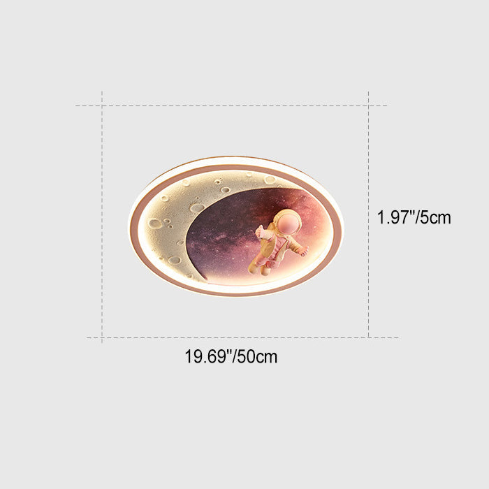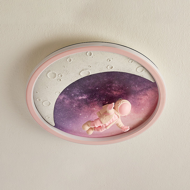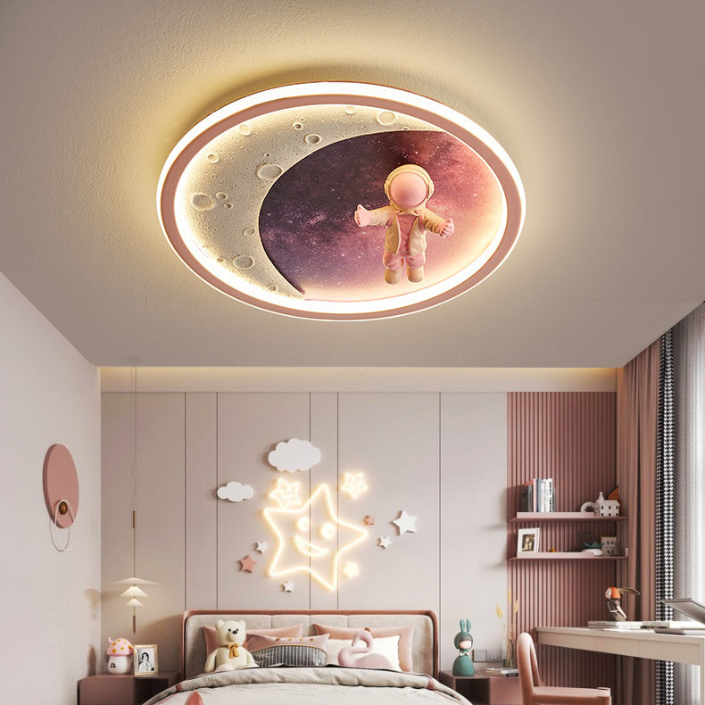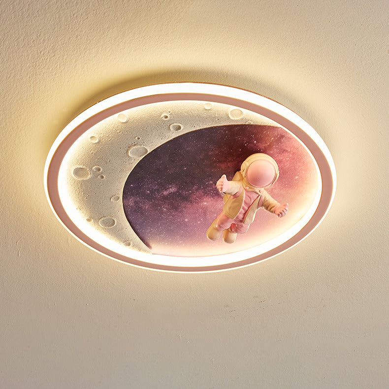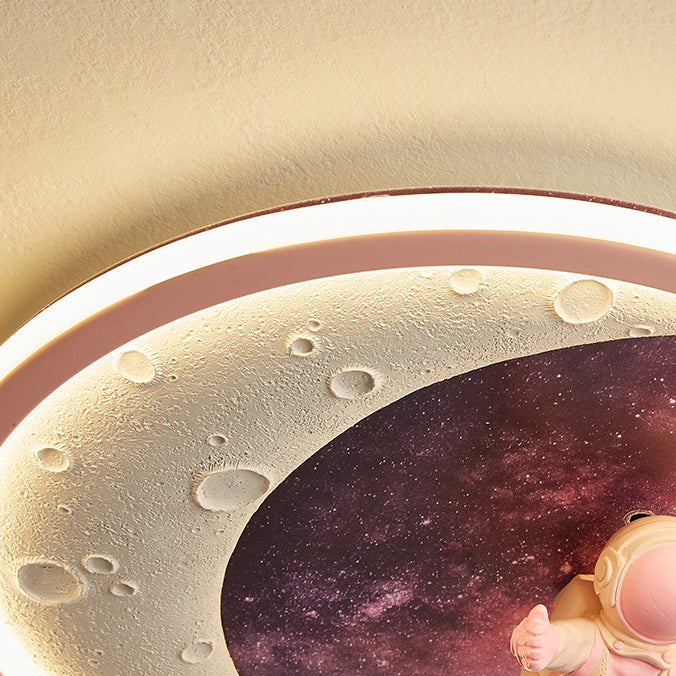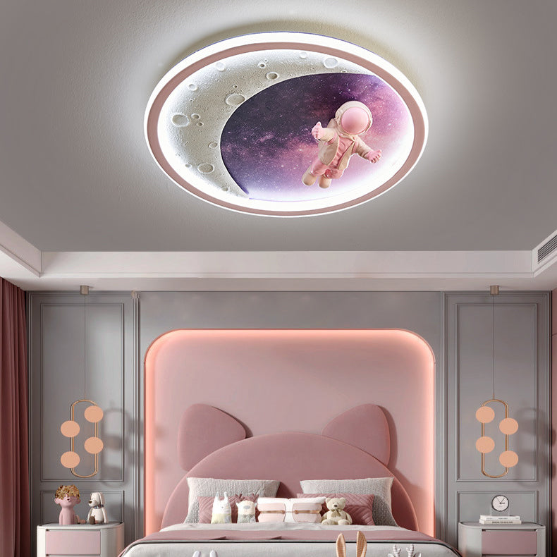 Modern Art Deco Round Astronaut Planet Acrylic Resin Iron LED Flush Mount Ceiling Light For Bedroom