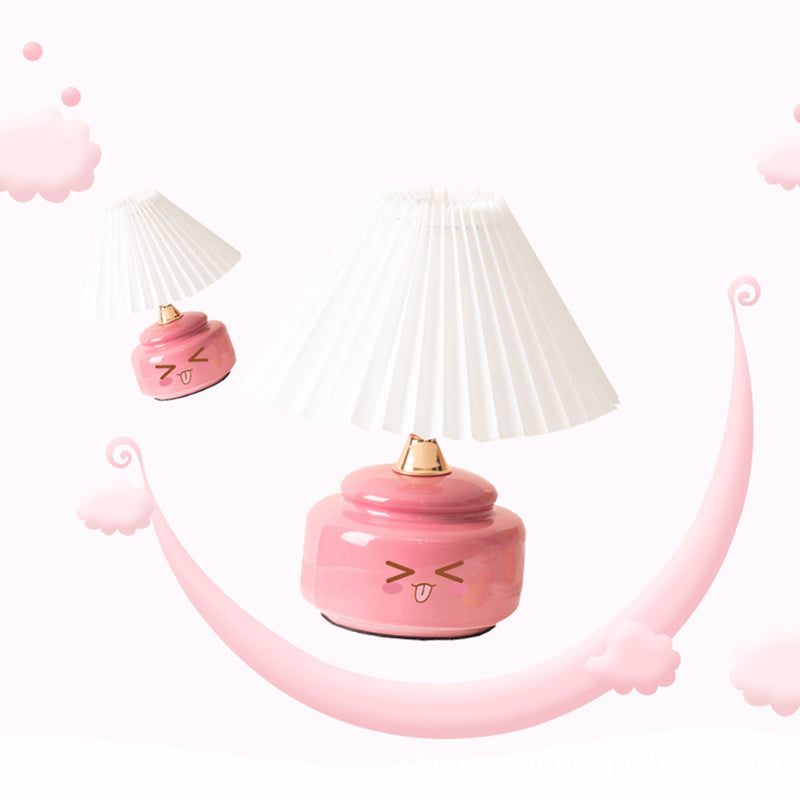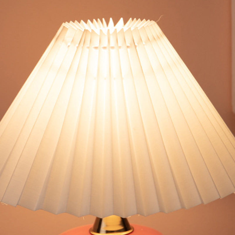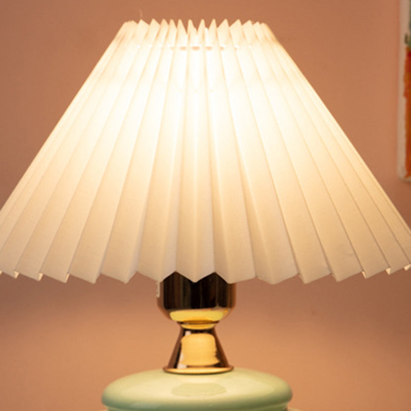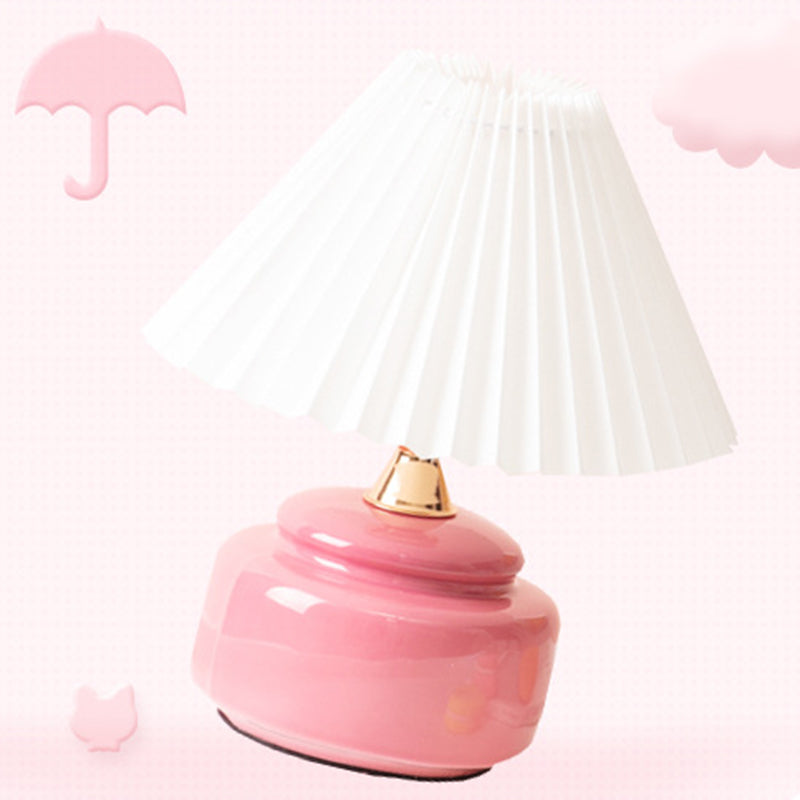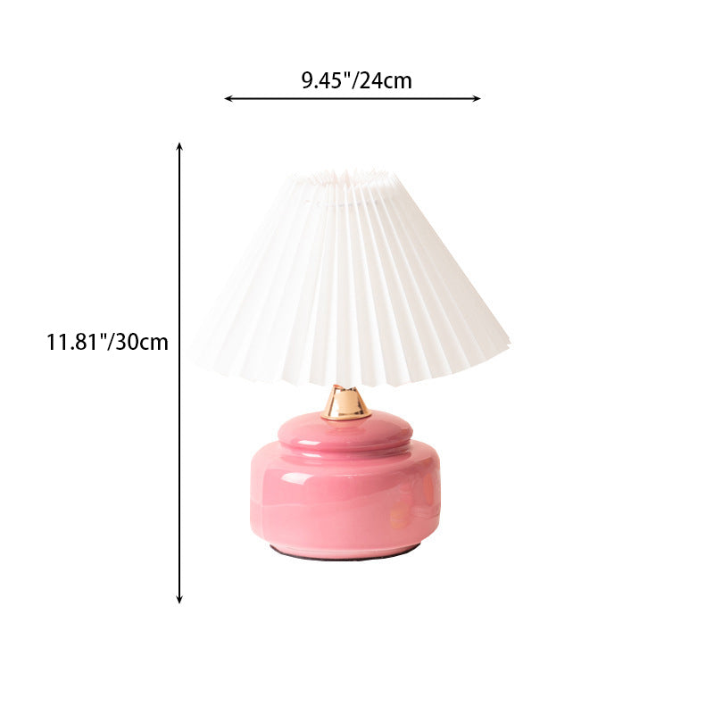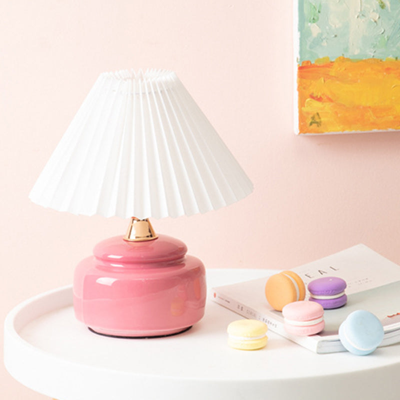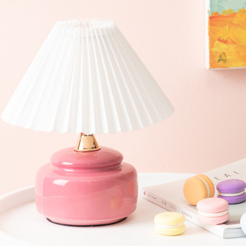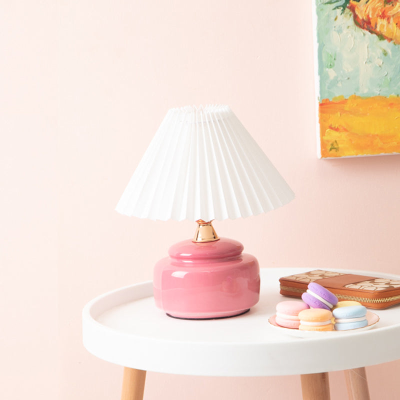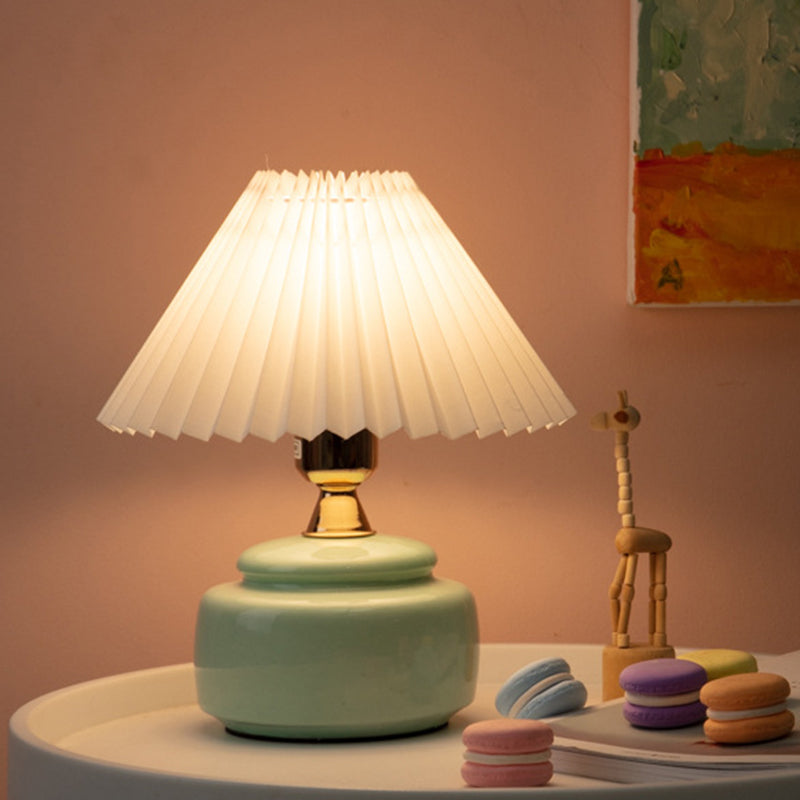 Modern Art Deco Round Ceramic Base Pleated Fabric Shade 1-Light Table Lamp For Bedroom