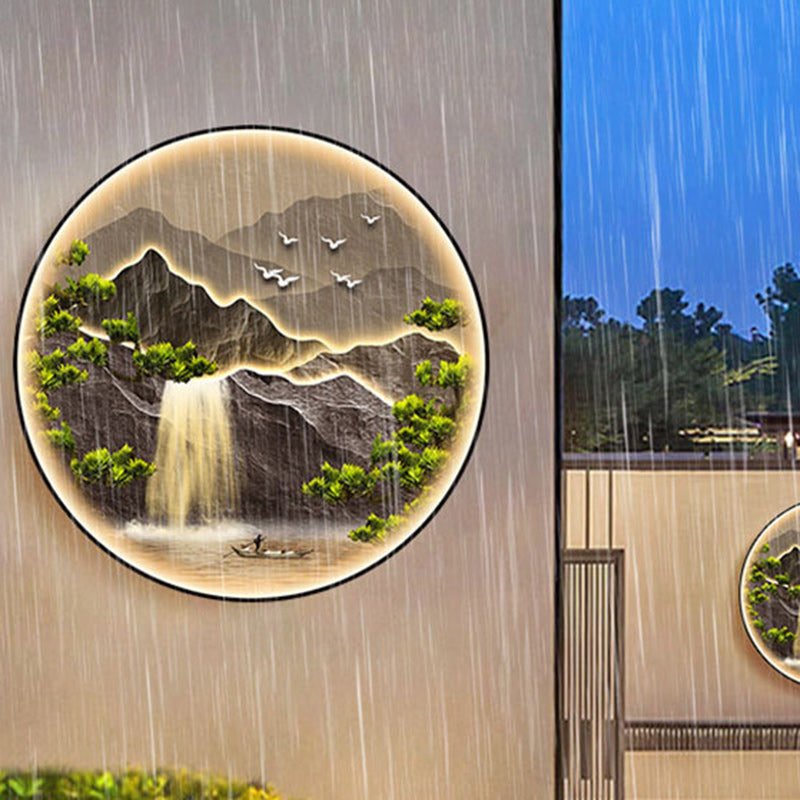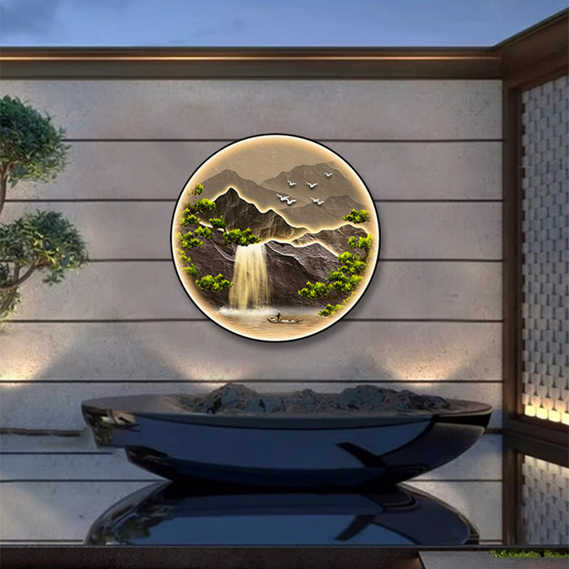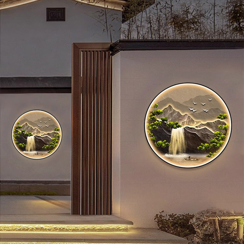 Modern Art Deco Solar Waterproof Aluminum Alloy Crystalline Round Landscape LED Wall Sconce Lamp For Outdoor Patio